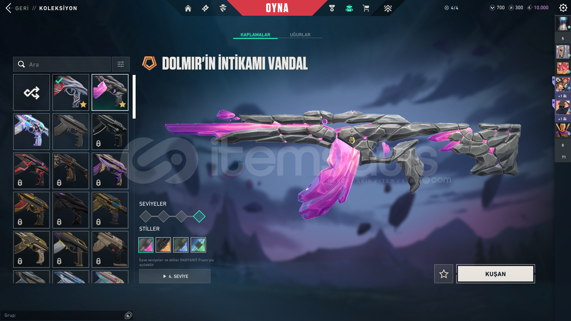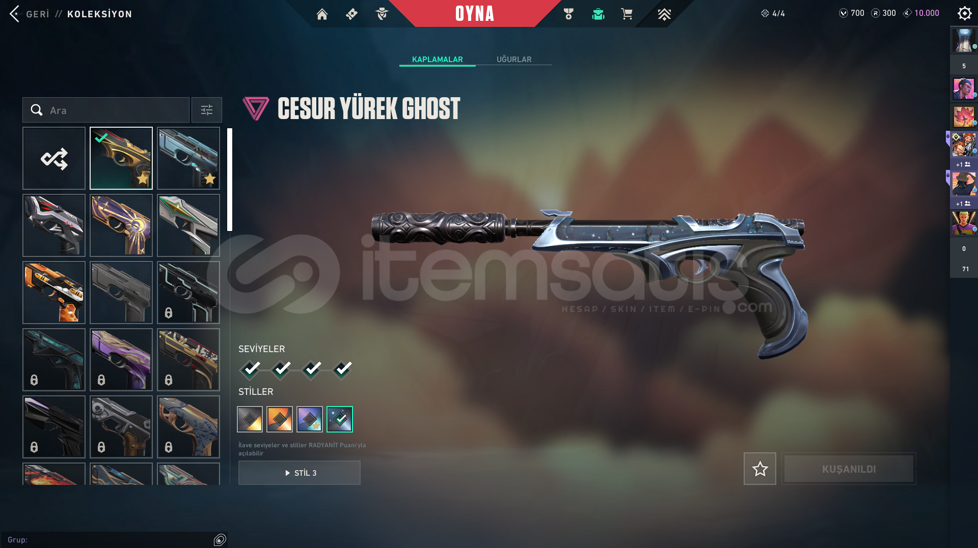 hesap bronz 2 dir gaia vandal polmirin intikamı vandal popstar vandal cesur yürek ghost vardır bıçak olaraksa yıldız belası bıçak ve popstar bıçak vardır silahlarda battlepass olmasına rağmen dolu dolu skinler vardır 11000 küsüratlı vp yatırılmışdır ilk yani kurulduğu mailliyle verilecekdir hoşgeldini mesajı vardır