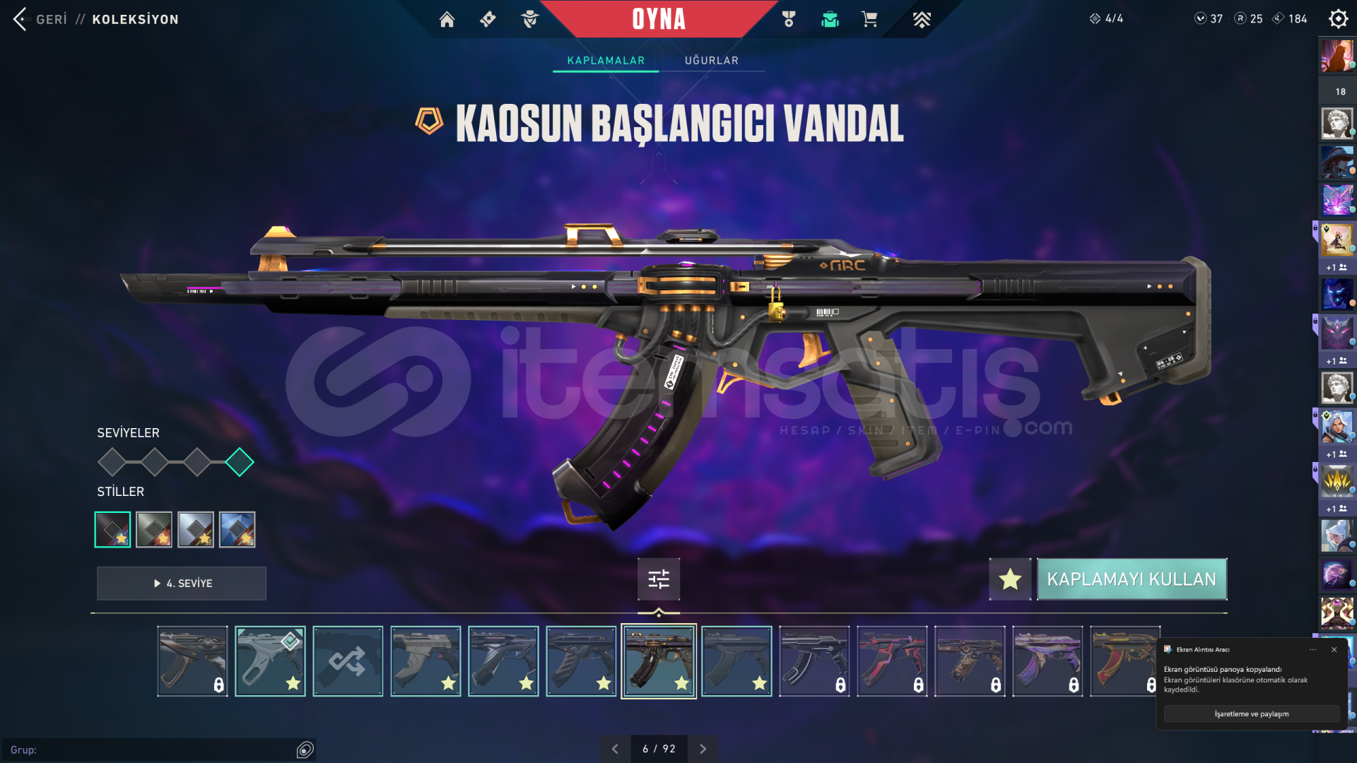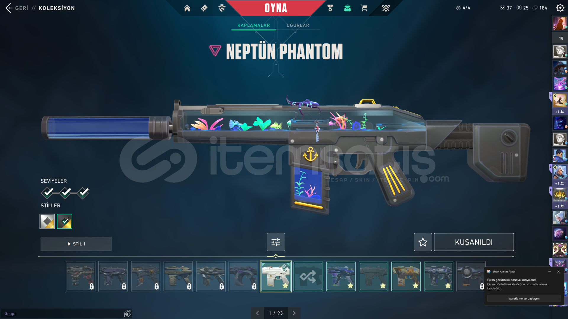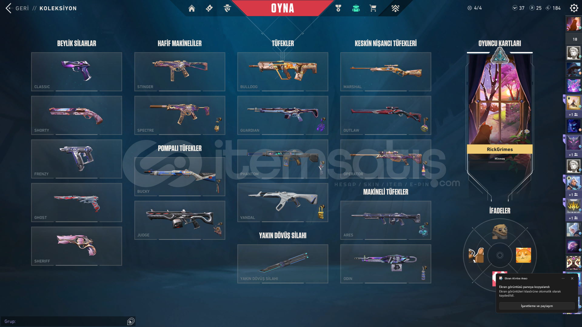 Hesap TR sunucusudurPremier no bağlı ancak kaldırabilirim numara bana aitHesapta elit skinler bulunurHesaptaki skinler şunlardır:RadyantKrizi011ClassicGaia'nın İntikamı GhostSırçiçeği SheriffNeptün Phantomİyon VandalFaz Koruyucu VandalKaos VandalRGX 11Z PRO KELEBEK3 adet savaş biletiÖnemli Not:Satın almadan önce iletişime geçiniz site dışı iletişim yoktur ve satın al...