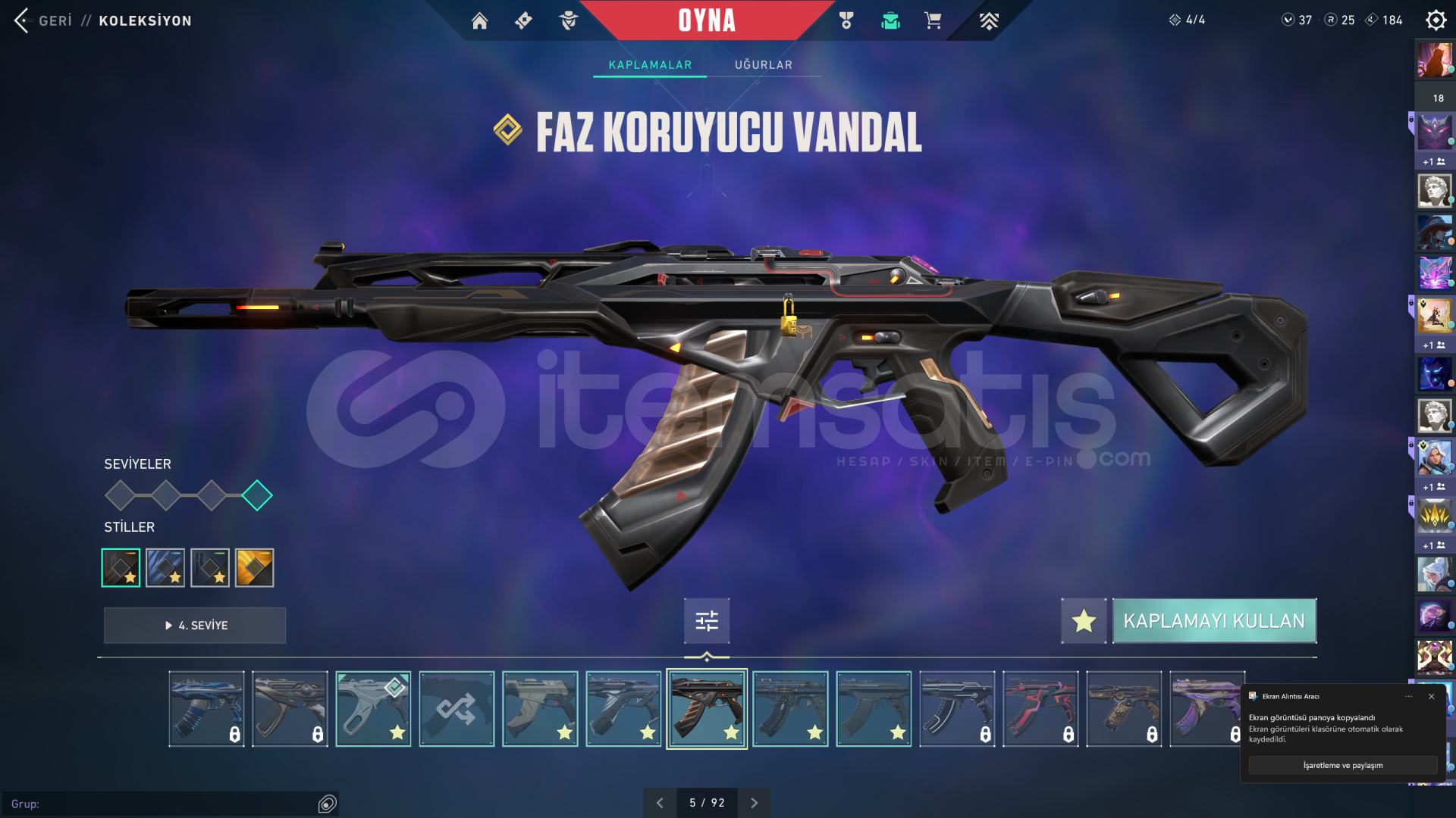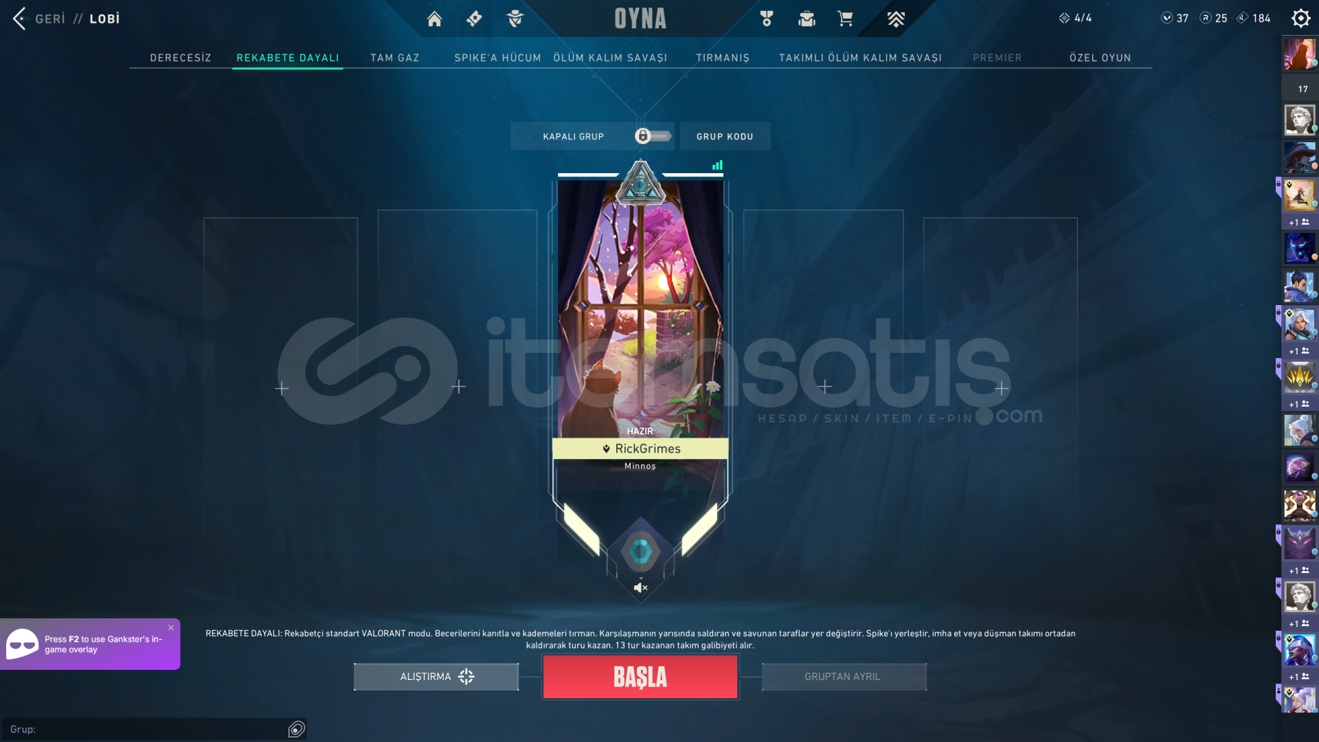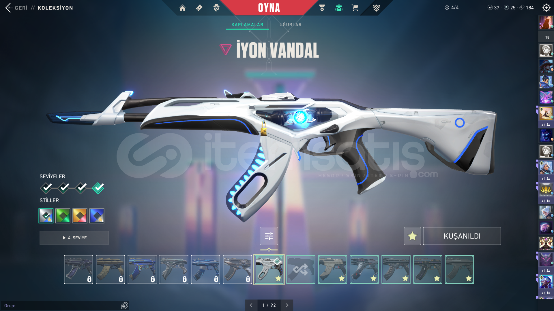 Hesap TR sunucusudurPremier no bağlı ancak kaldırabilirim numara bana aitHesapta elit skinler bulunurHesaptaki skinler şunlardır:RadyantKrizi011ClassicGaia'nın İntikamı GhostSırçiçeği SheriffNeptün Phantomİyon VandalFaz Koruyucu VandalKaos VandalRGX 11Z PRO KELEBEK3 adet savaş biletiÖnemli Not:Satın almadan önce iletişime geçiniz site dışı iletişim yoktur ve satın al...