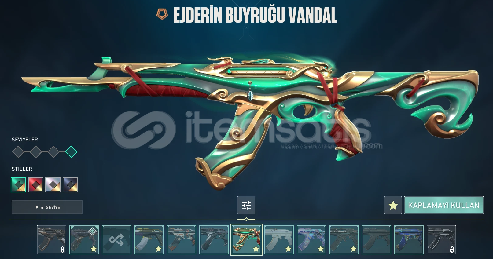 VANDAL SKİNLERİNDE: EJDER VANDAL,SOĞUK ÇELİK VANDAL,ASİL VANDAL,EJDERİN BUYRUĞU VANDAL VE NEPTÜN VANDAL VARDIR GERİ KALANLAR BATTLE PASS'TİR