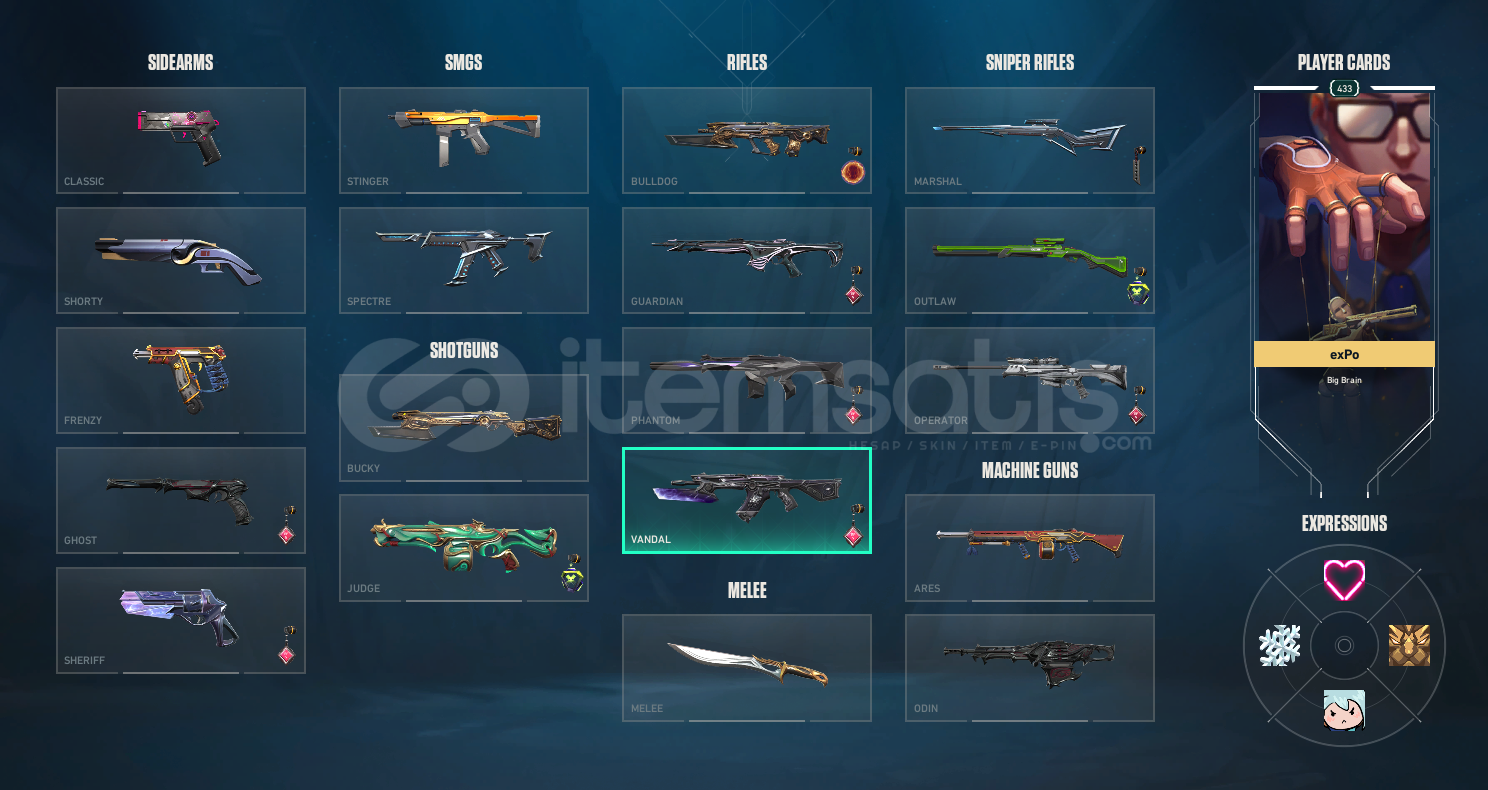 oyunu bıraktığım için satıyorum hesaba eski fiyatlarla 17 bin tl yatırılmıştır geri gelmeyen baya koleksiyon vardır 12 adet yükseltilebilir bıçak 10 adet yükseltilebilir vandal 4 adet yükseltilebilir phantom 5 adet yükseltilebilir sheriff 2 adet yükseltilebilir ghost 3 adet yükseltilebilir spectre 2 adet yükseltilebilir operator 2 ader yükseltilebilir marshall stinger outlaw ve shorty dışı diğer tüm silahlarla yükseltilebilir skinler vardır kuronomi set champions 2022 set vct lock in vct karambit alaz yelpaze bidaha gelmeyecek koleksiyonlar vardır oni seti anomali seti aemondir seti vardır