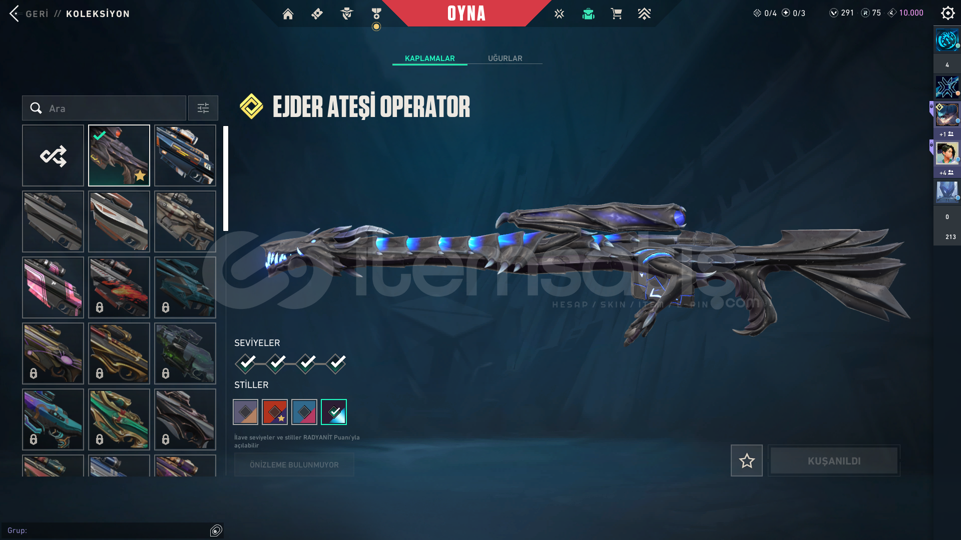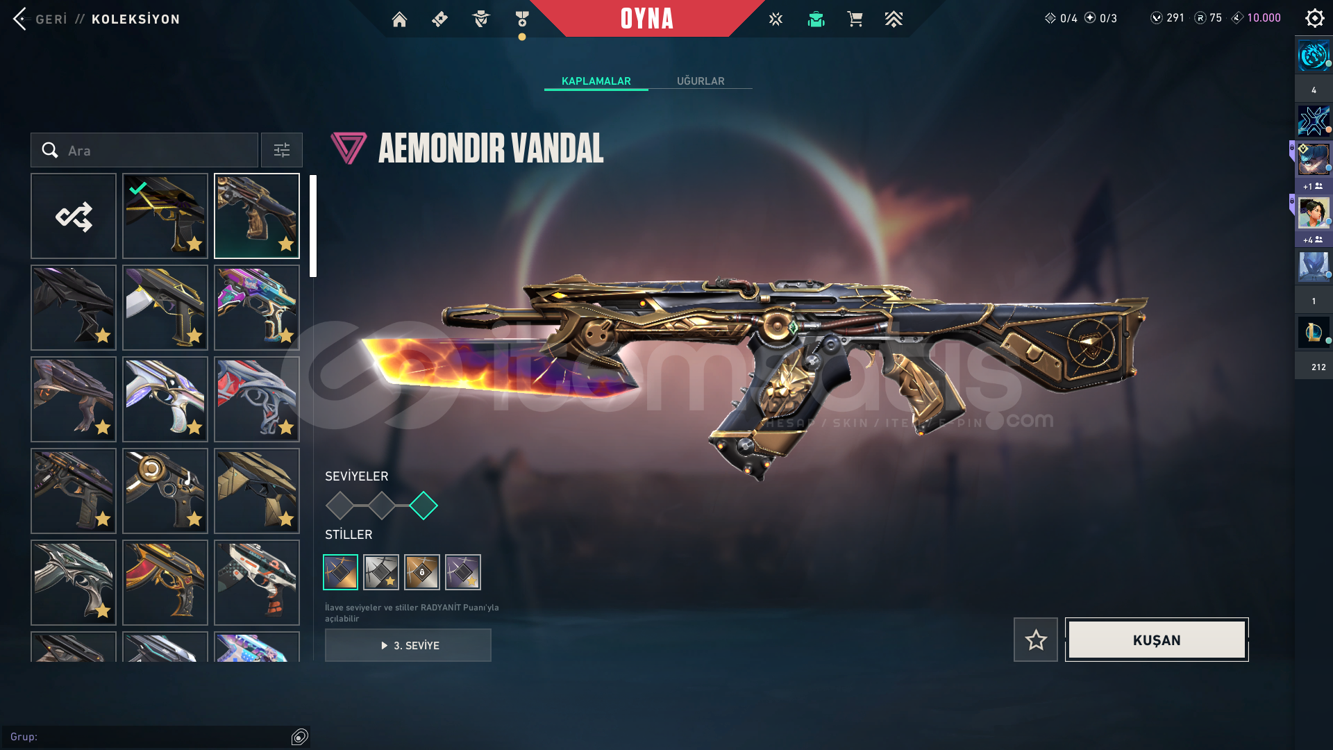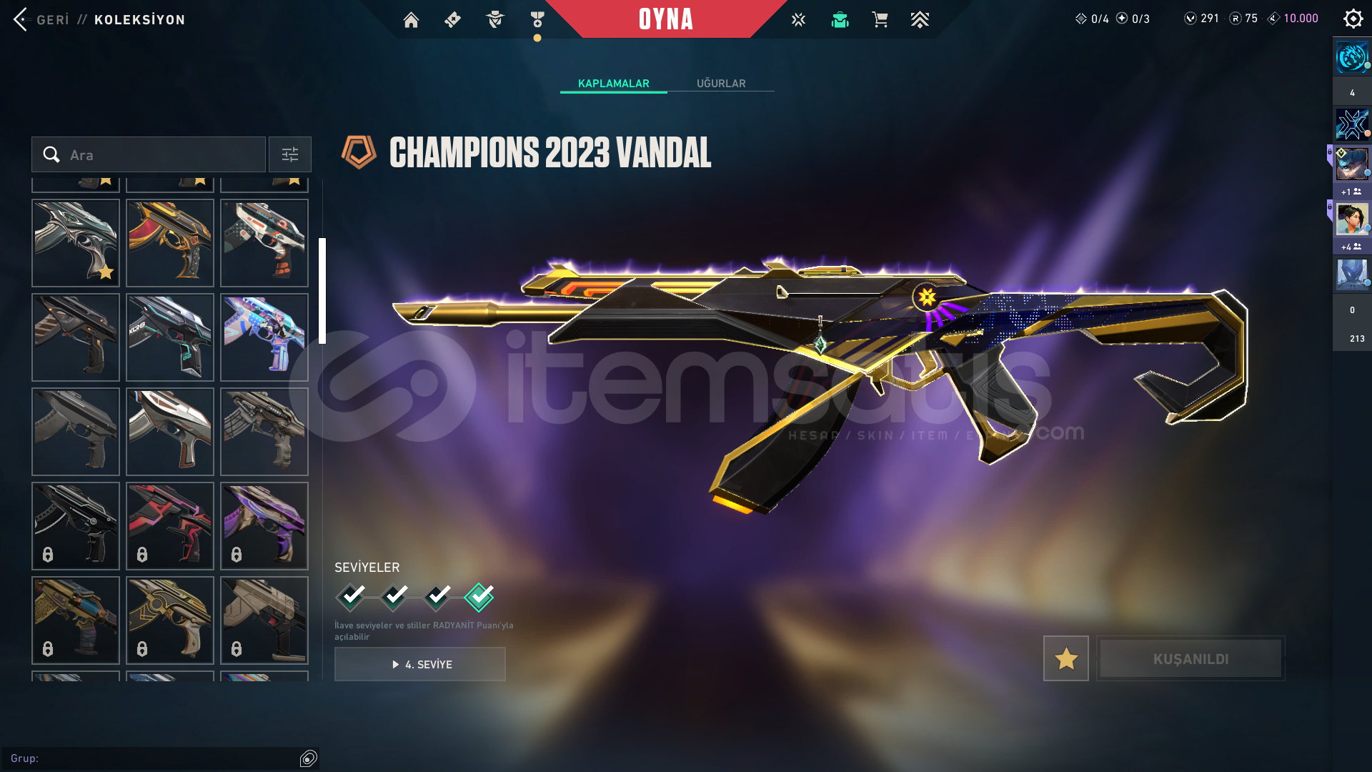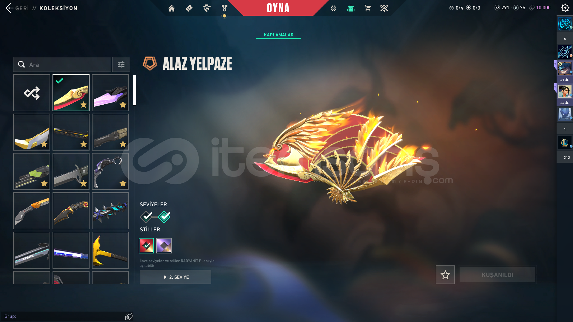 VALORANT BP HARİÇ 13 VANDAL SKİNİ 8 BIÇAK SKİNİ