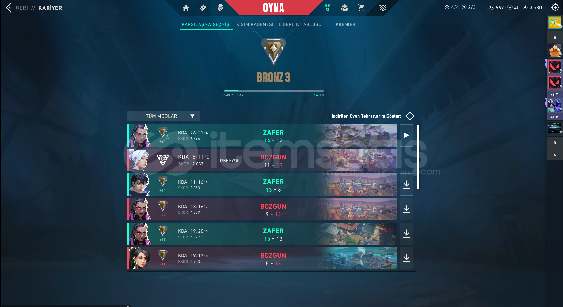 VALORANT BRONZ 3 SKINLI FRESH HESAP