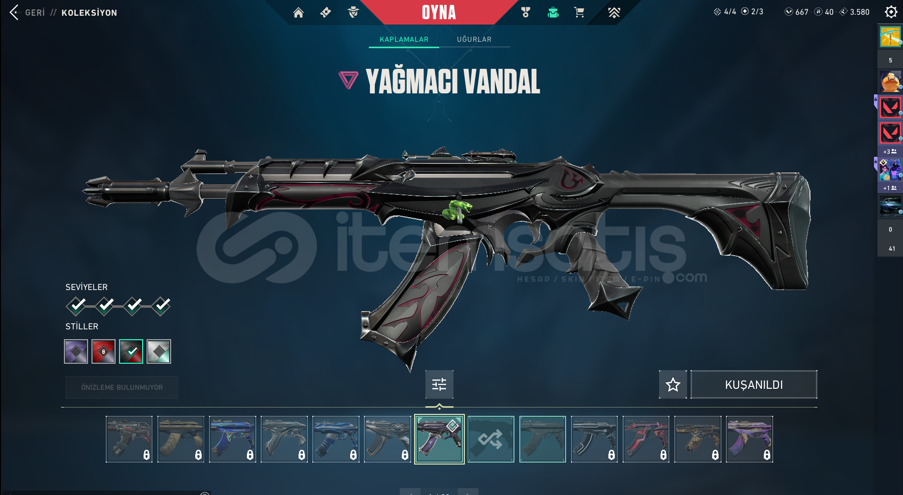 **Hesap bronz 3 tür ve 3 tane skini vardır yağmacı ghost yağmacı guardian yağmacı vandal ve hesapta ekstra 600 vp bulunmaktadır. normalde hesap ilk mail ben oluşturdum ama mail ana mailim olduğu için veremem ama ne olursa olsun herhangi bir sorunda para iadesi yaparım**