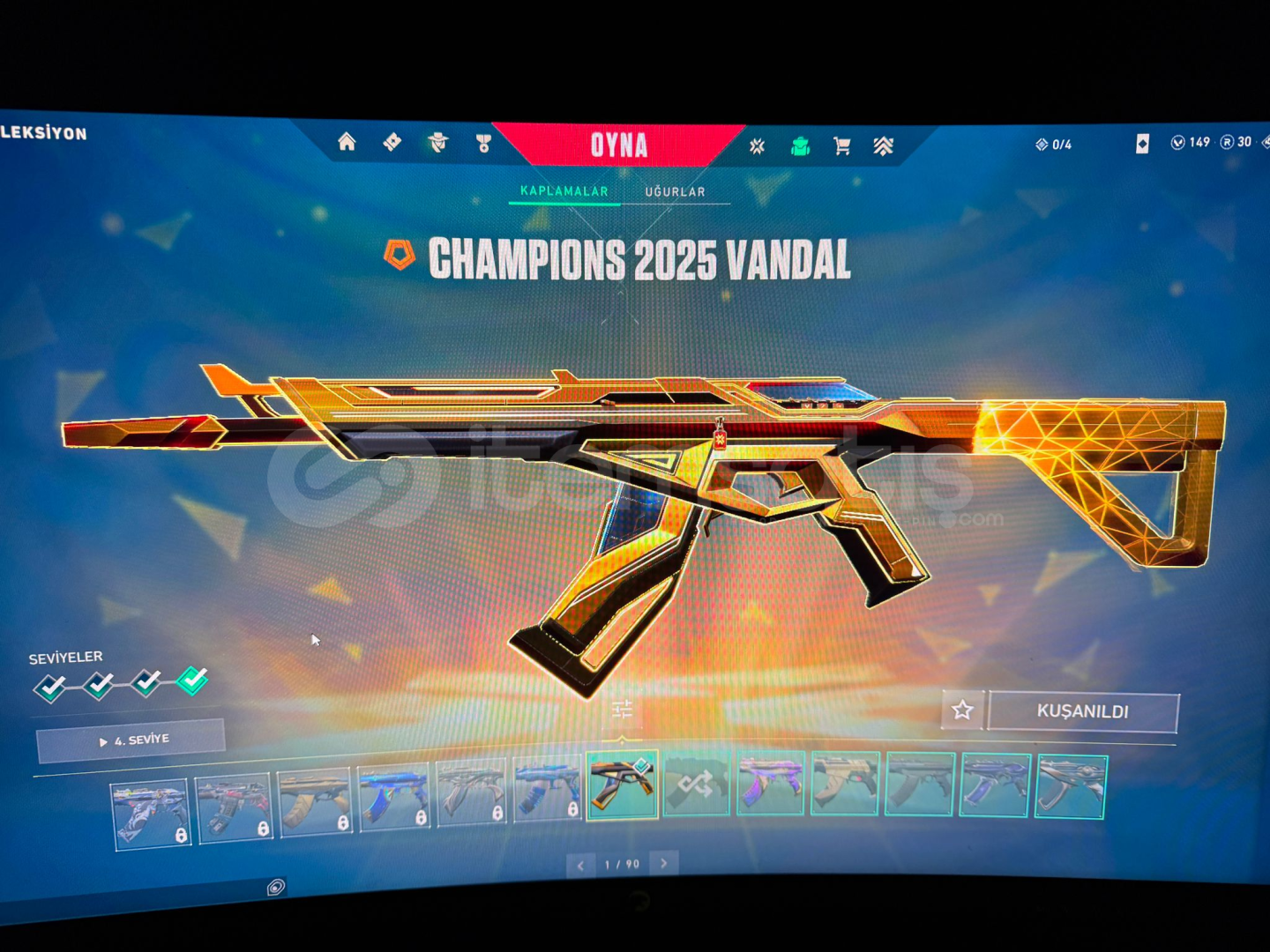 Hesap içerisinde Yagmaci vandalChampions vandal2 tane battle pass ve 1 vandal daha mevcutKaos spectreSeri tetik serif Champions kelebek ve battle passi açıktırRank gold 2 Fiyatta yardimci olunur