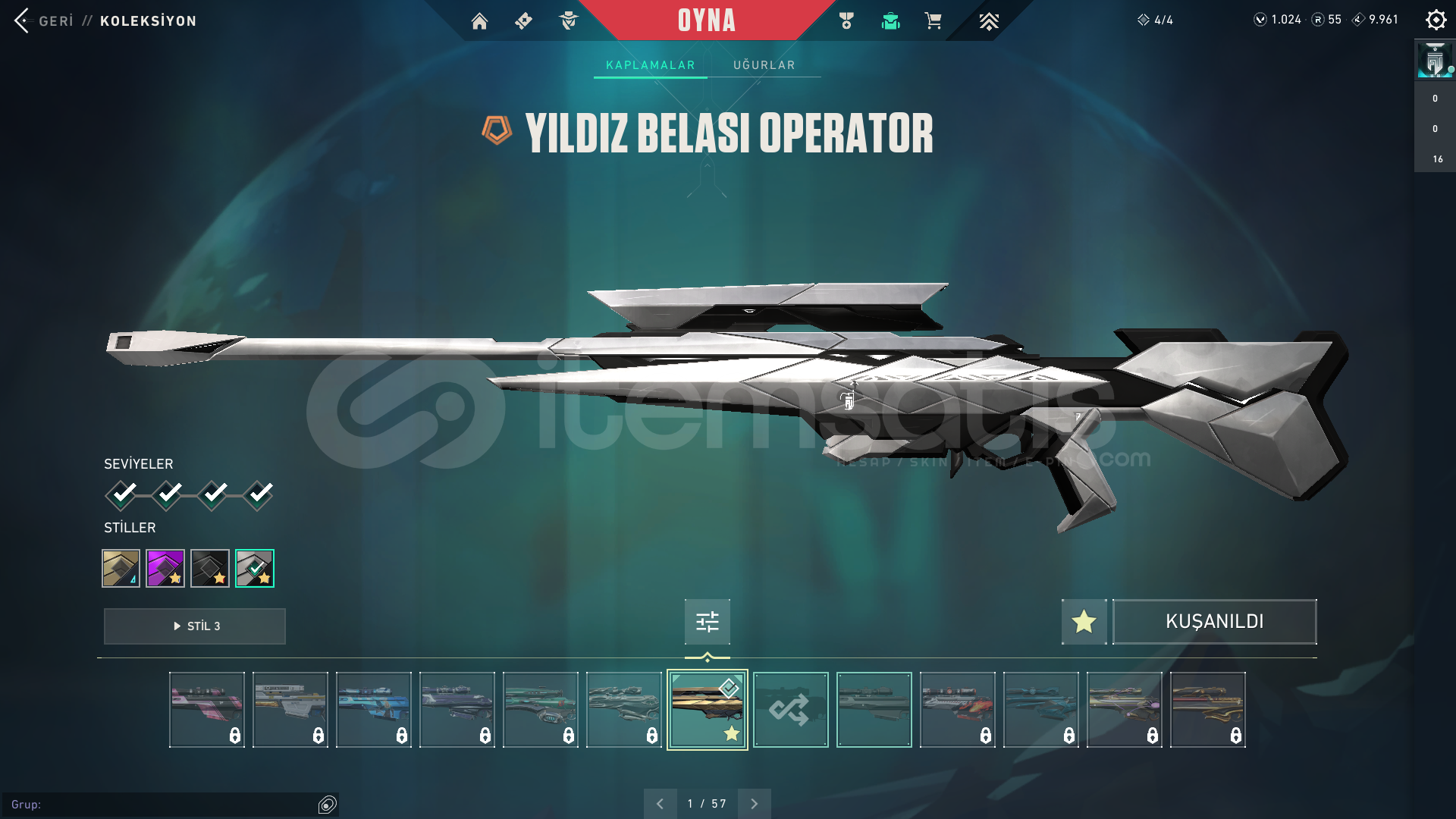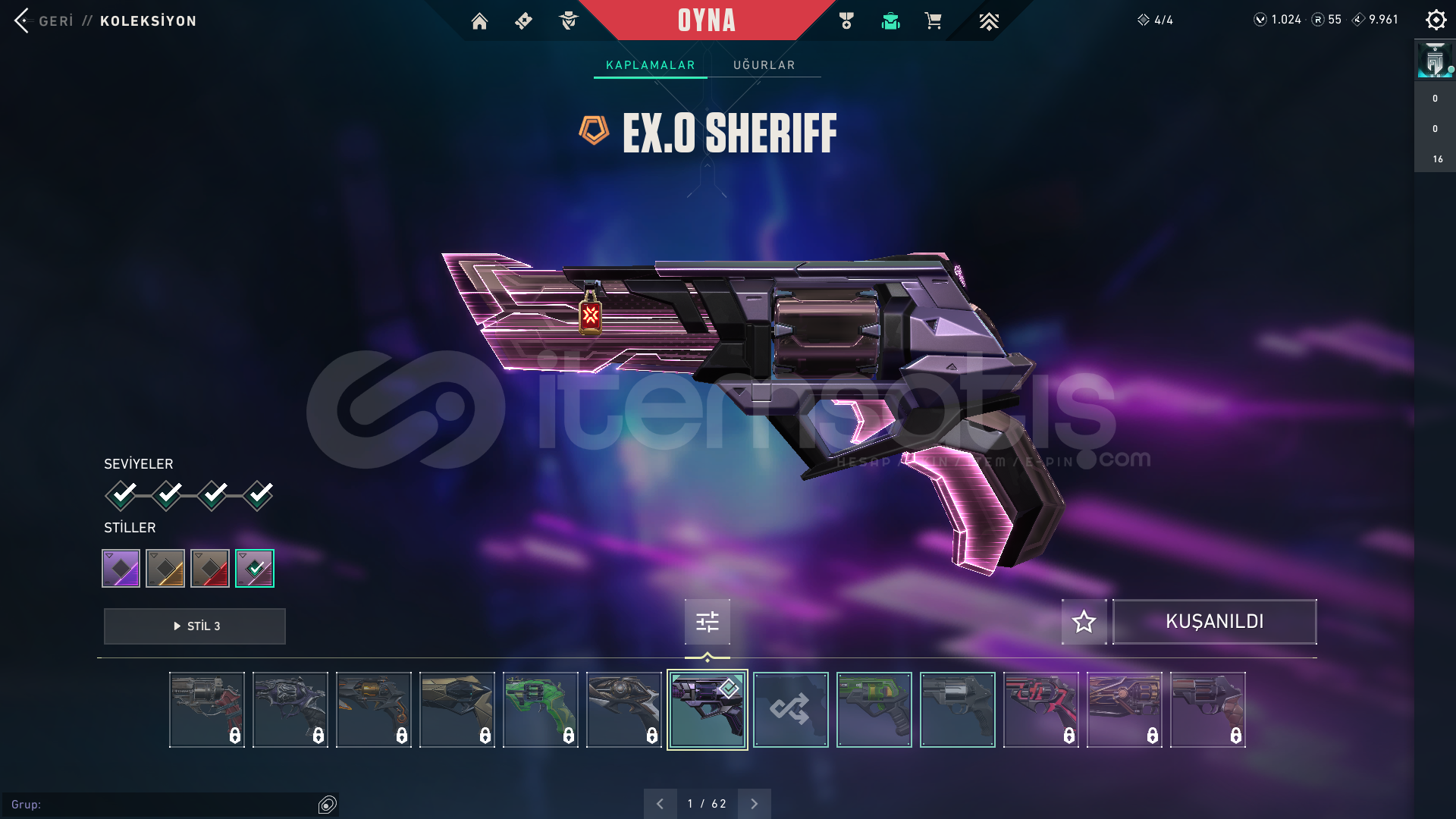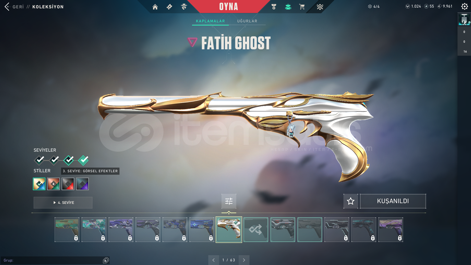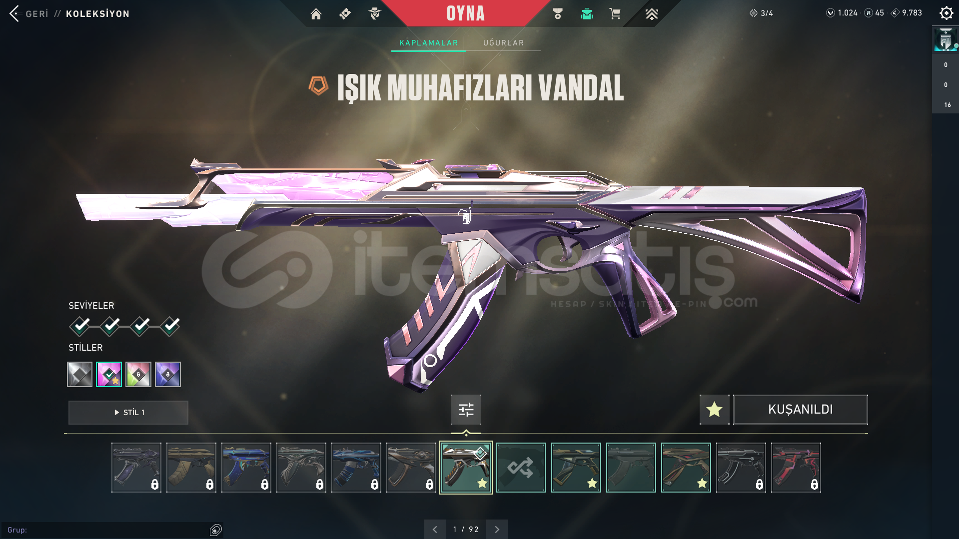 1024 VP, 55 Radyanit, 10.000 Kingdom Kredisi vardır.