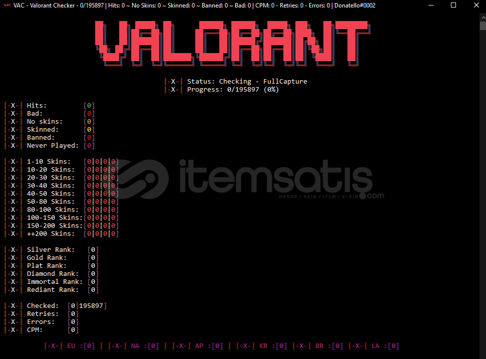 Valorant Checker FEATURES:• Riot API parsing (no key needed)• Skin Count: 1–200+• Rank Detection: Iron ➤ Radiant• Linked phone/email checker• Last login capture• Combo list support (.txt)• Proxy support (HTTP/SOCKS5)• Hits auto-saved to hits.txt• Stealthy, console-free executionSizde Satış Yapmak istiyorsanız Bu Yazılımı alarak Kazanç Sağlayabilirsiniz .Random Hesap Satışı İ&cc...
