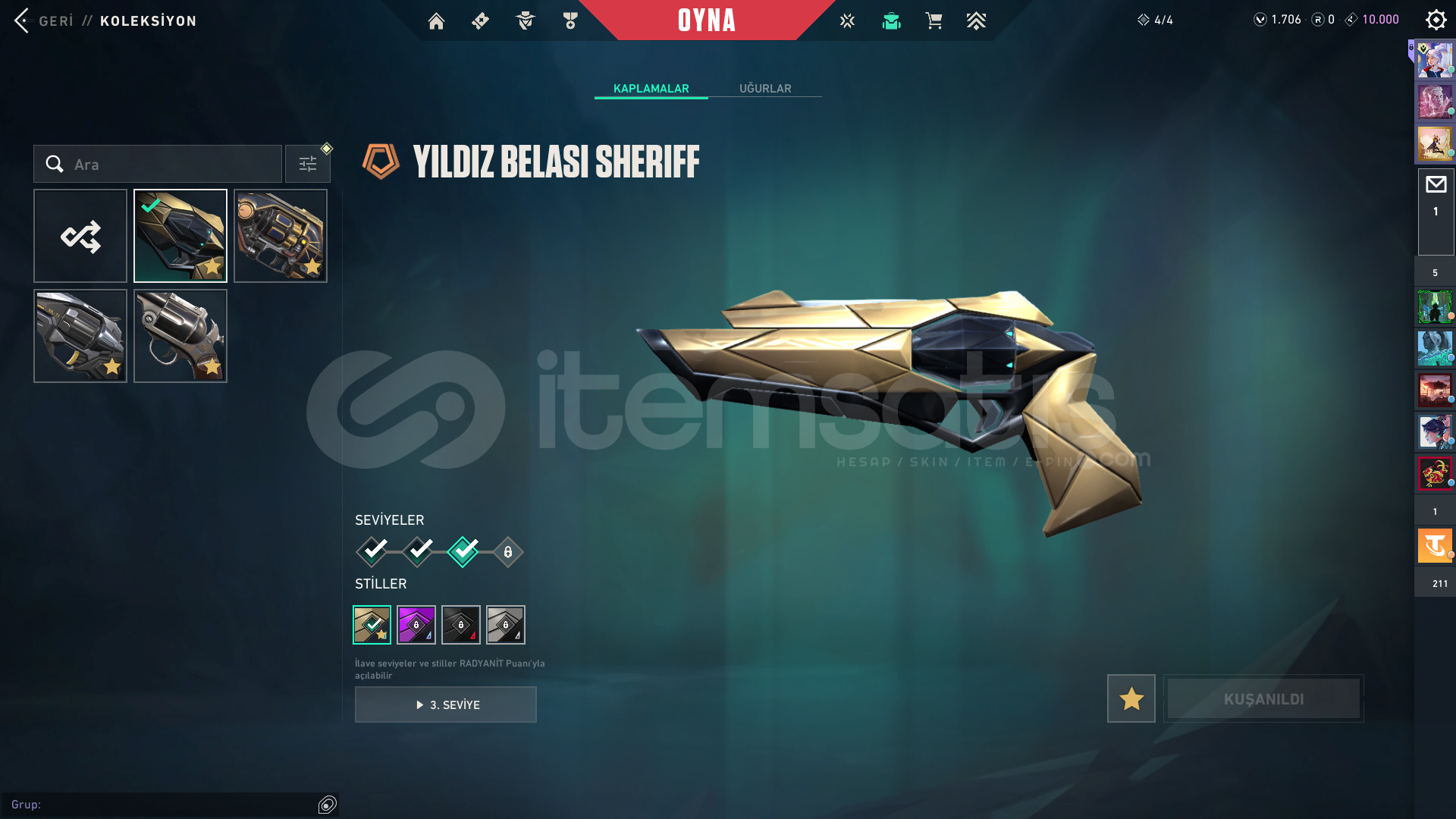 PAZARLIK YAPILIR CHAMPİONS BIÇAK VAR VADALIDA VAR11 VANDAL4 PHANTOM3 BIÇAKVE HER SİKİNDEN 1 ER TANE VARODİN 2 TANE