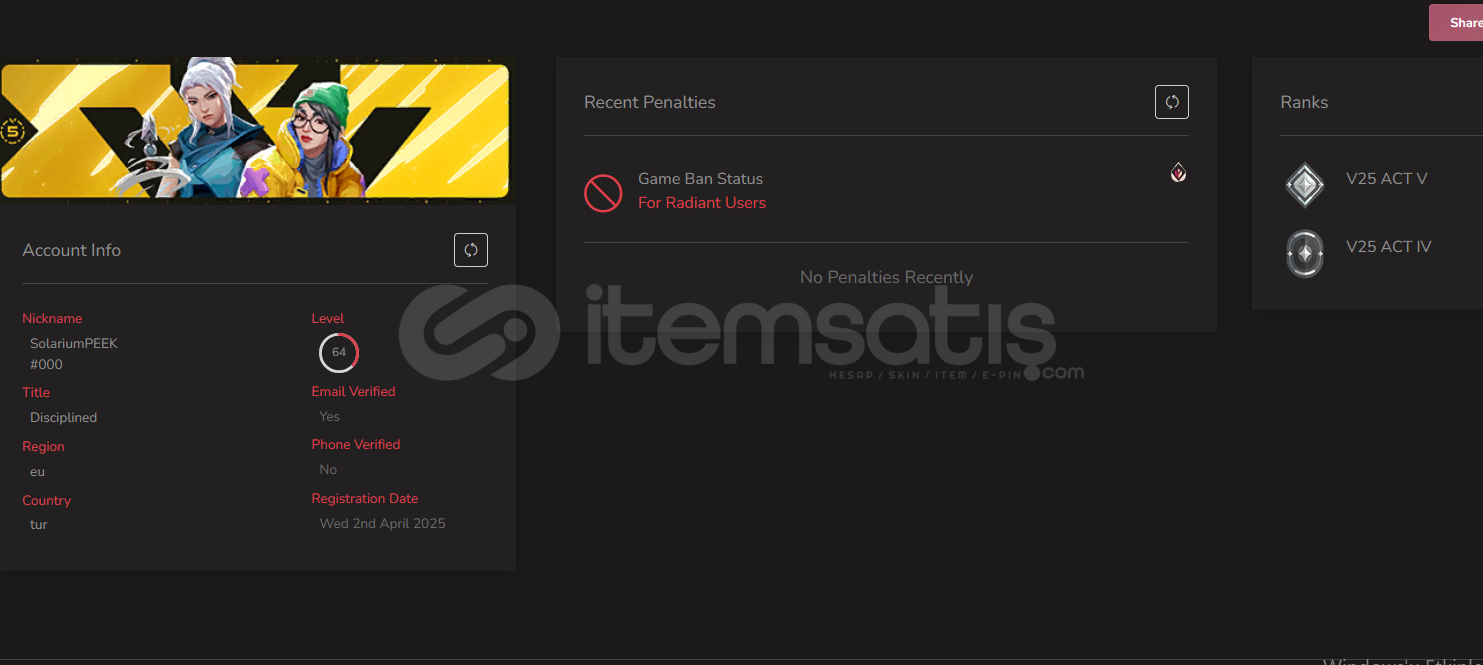 Güvenilir satıcıdır, kendisinden almış olduğum hesabı hızlı ve sorunsuz şekilde teslim etti. Teşekkürler hocam.
