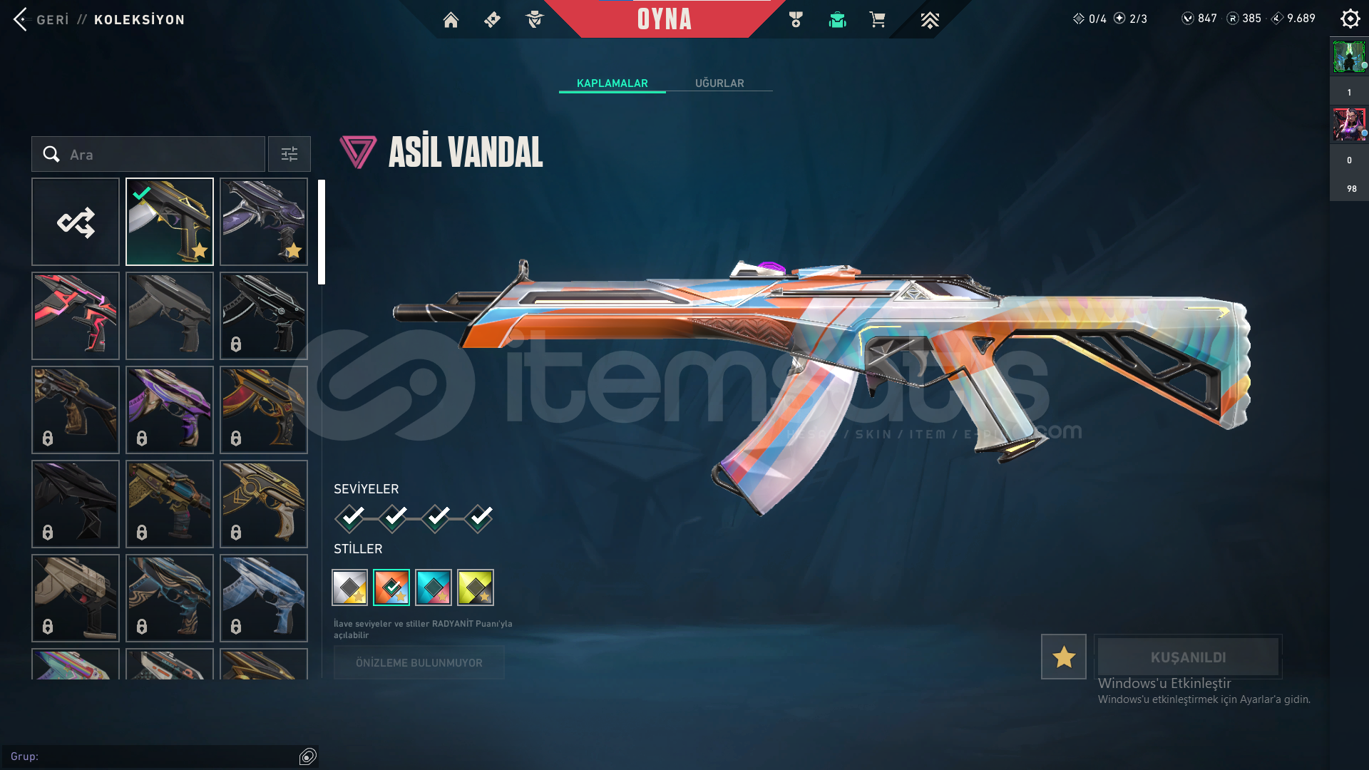asil vandalyağmacı vandalkuronami bıçakyorunun janti kelebeğioni phantom800 vp+battle pass skinleri