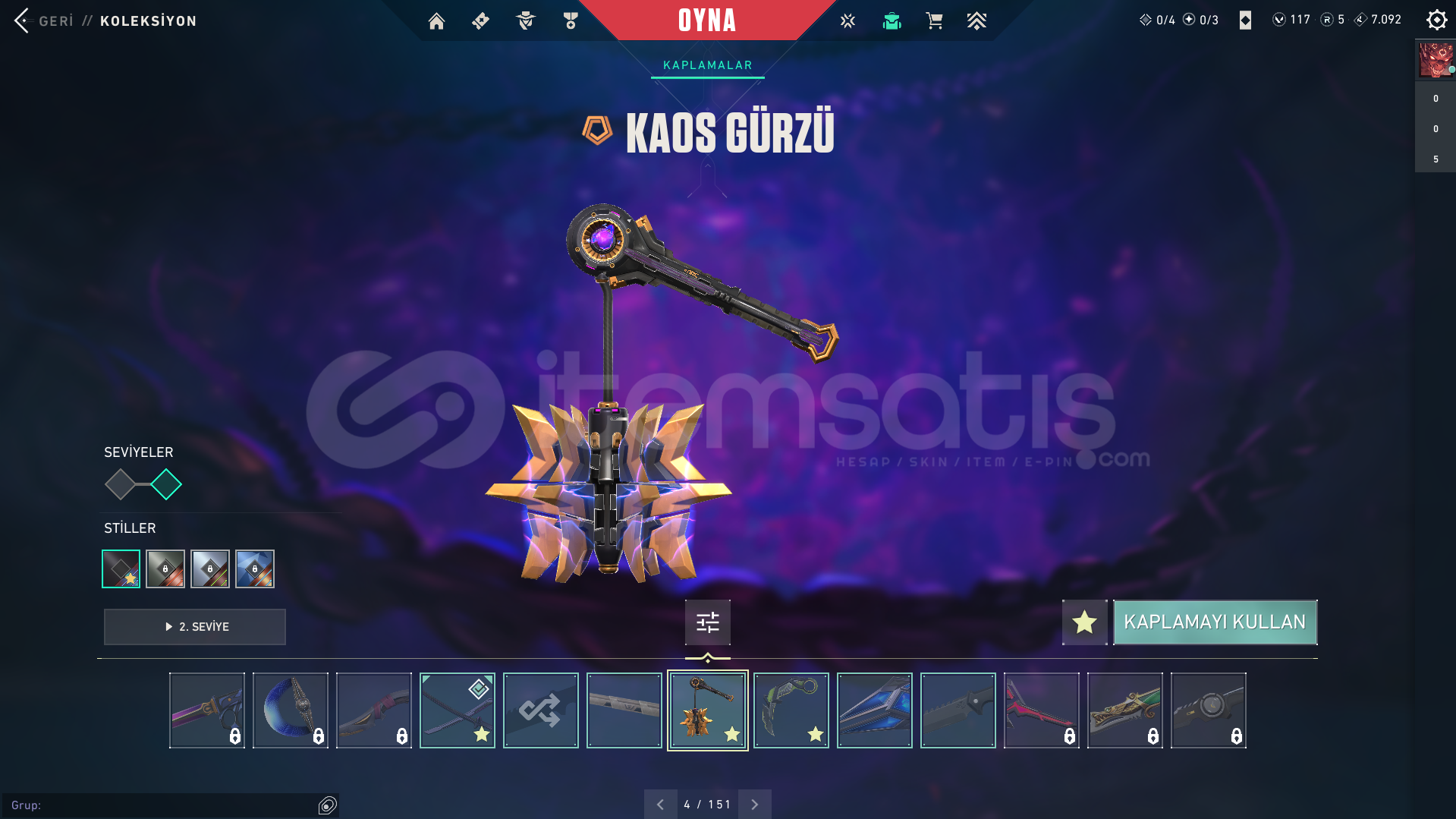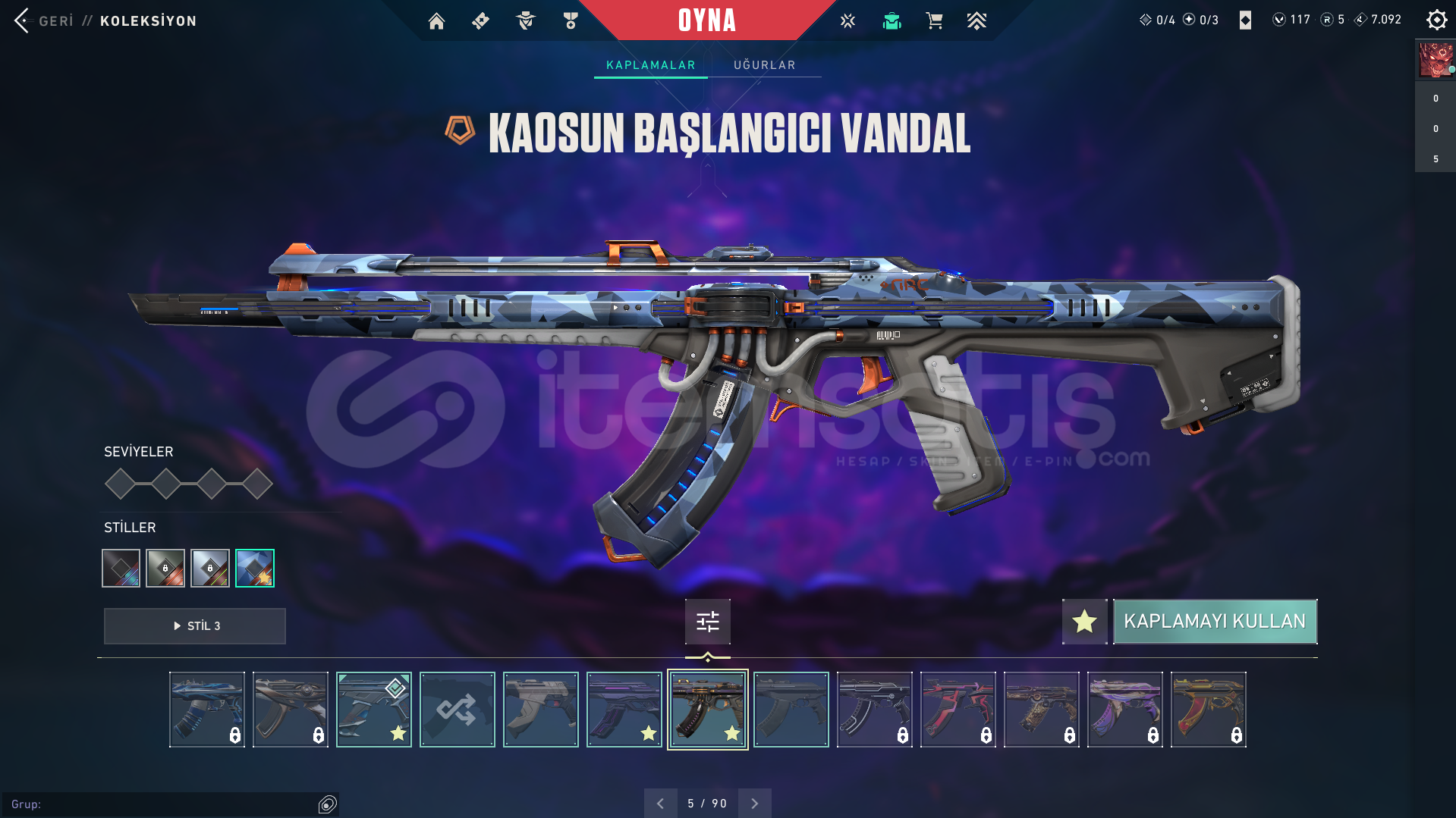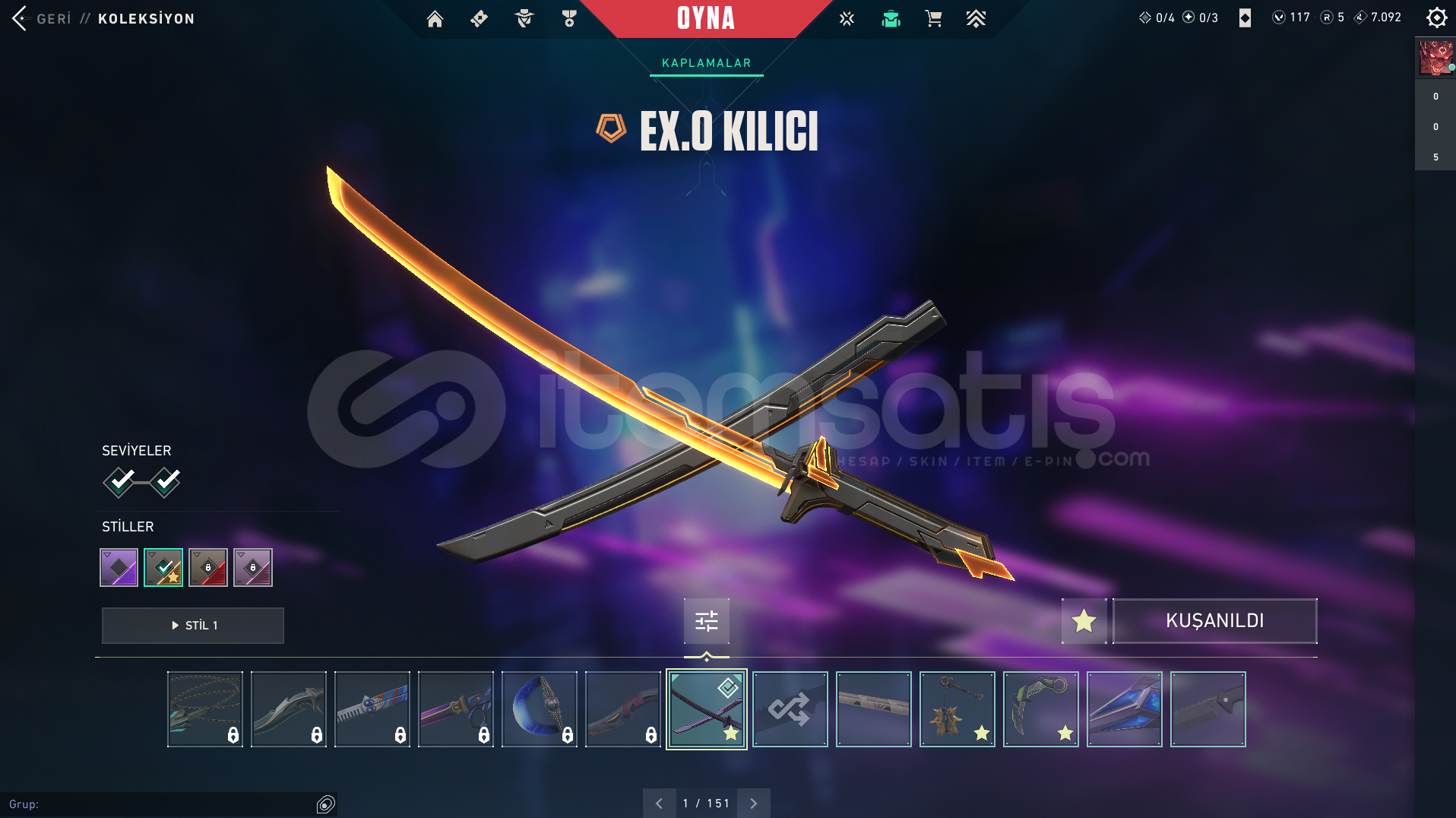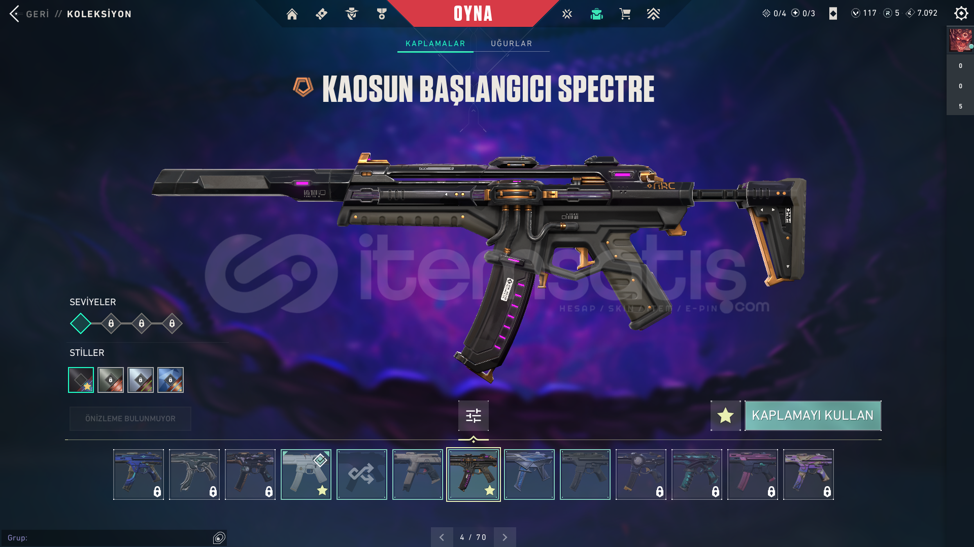 TR Mainlik Dolu Hesap! Hesabın rankı aktif DIA 1 BIÇAKLAR EX.O KILICI RGX 11Z PRO KARAMBİT KAOS GÜRZÜ VANDAL Kaosun Başlangıcı Vandal Kuronami Vandal EX.O Vandal PHANTOM Kaosun Başlangıcı Phantom Özel Harekat Phantom Oni Phantom Kaosun Başlangıcı Bulldog TABANCALAR Asil Classic Faz Koruyucu Ghost Kaosun Başlangıcı Sheriff SPECTRE Kaosun Başlangıcı Spectre Neptun Spectre NİŞAN...