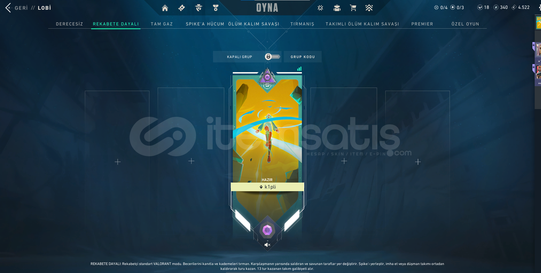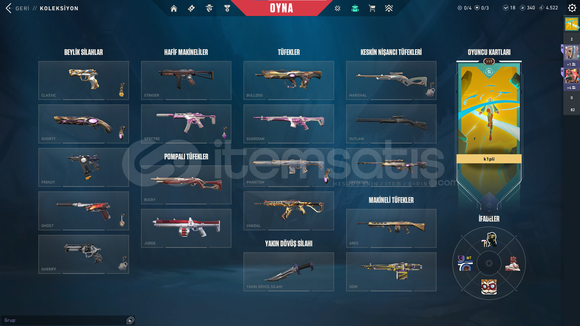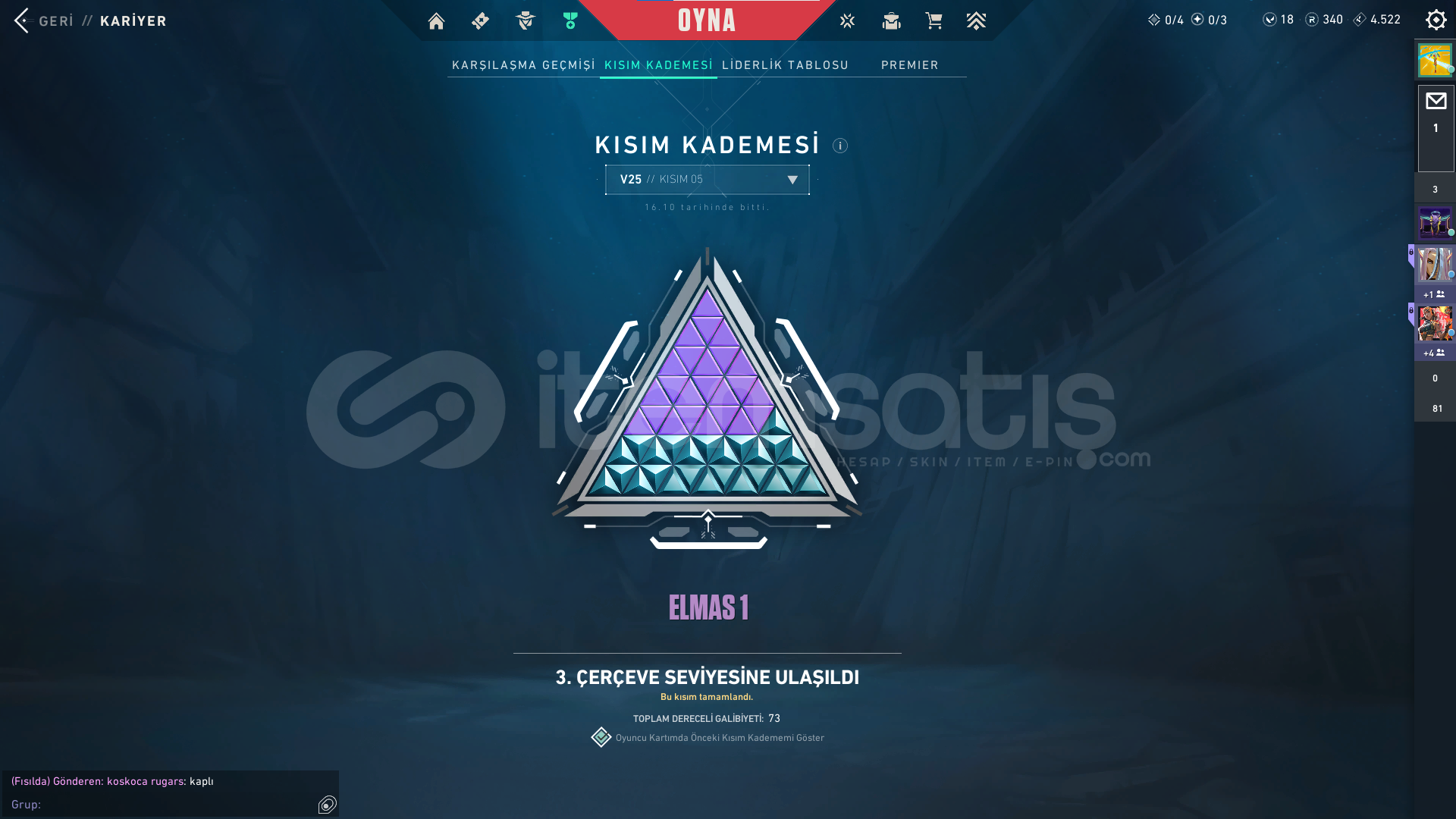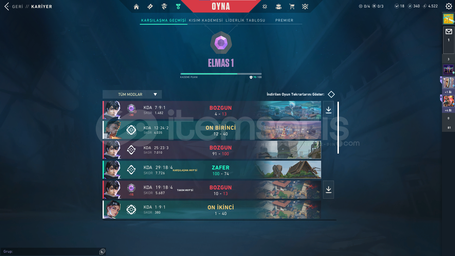 Güncel ve peak rankı Dia2'dir. 340 radyanit ve 18 vp vardır. Hesaptaki skinler: