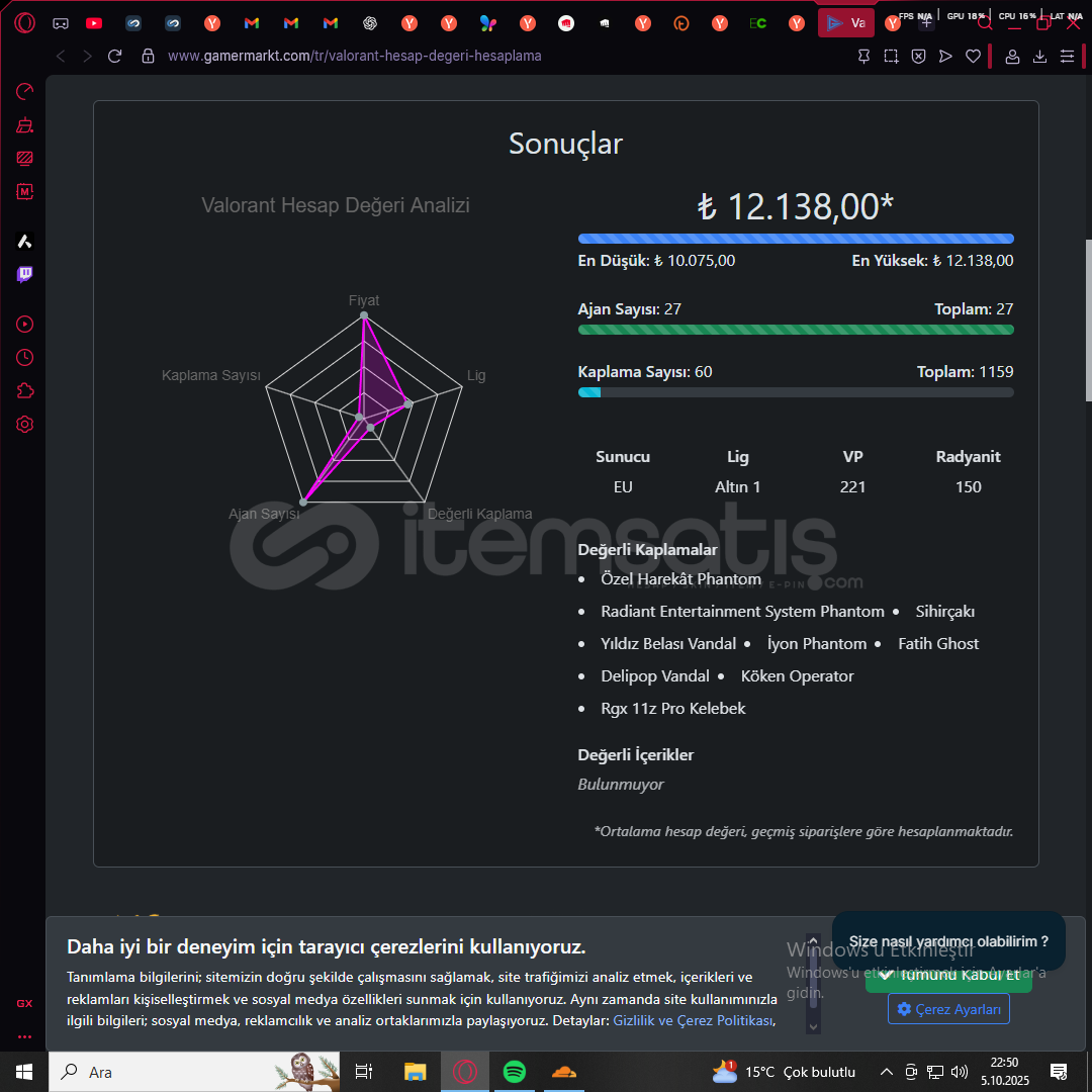 Valorant Dolu Dolu Hesap Mailli (Teklif Yapın)