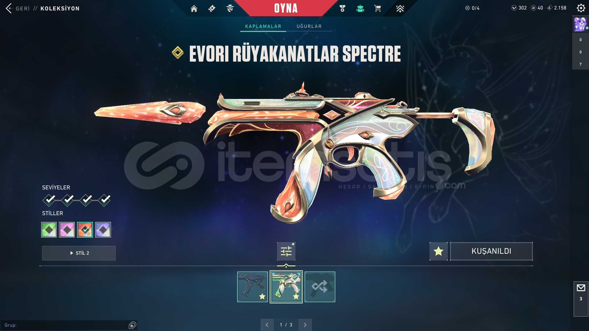 Tertemiz hesap hiç banı vs yemedi.Hesap bana ait mail değişimi yapilicak bu ay (24.11) isim değiştirme hakkida gelicek.Hesap 260 level,rank gold24 Adet bıçak (Evori,sir çiçeği,kuronami ve iyon karambit)6 Adet vandal (Evori,Yitik,Asil,Delipop,Neptun,Işık muhafizi)2 Adet phantom (Sır çiçeği,Asil)Diğerleri skinlere resimlerden bakabilirsiniz,sadece outlaw,ares ,stinger,bucky,shorty,frenzy silahlar&...