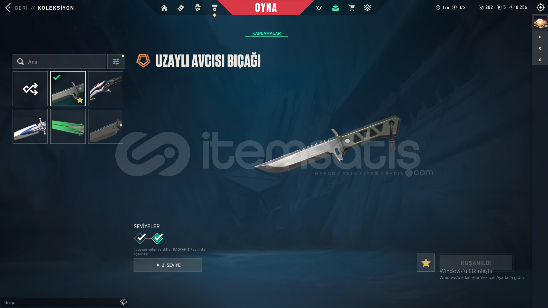 hesabım tertemizdir içindeki skinler: uzaylı avcısı bıçağıecelin ısırığı bıçağıgösterişli bıçakkuyrukyıldız kılıcıkuronomi vandalkaosun başlangıcı vandalcesur yürek vandaloni phantomyağmacı operatöryağmacı spectreyağmacı ghostkuronomi sheriffiyon sheriff