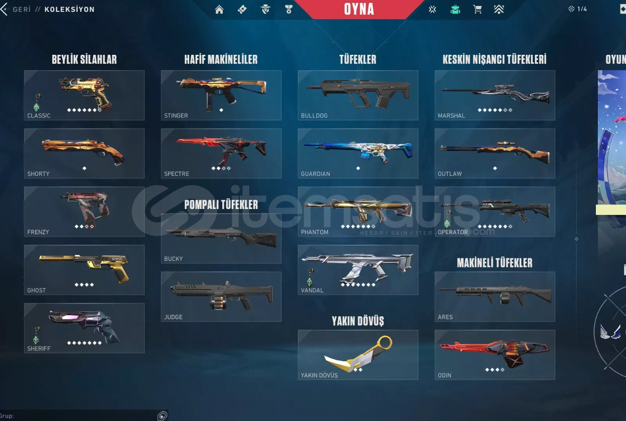 -Hesapta Görünen Skinler Bulunmaktadır 4 Vandal Vardır Gia Köken Asil KaosMail Değişimi Yapılcaktır