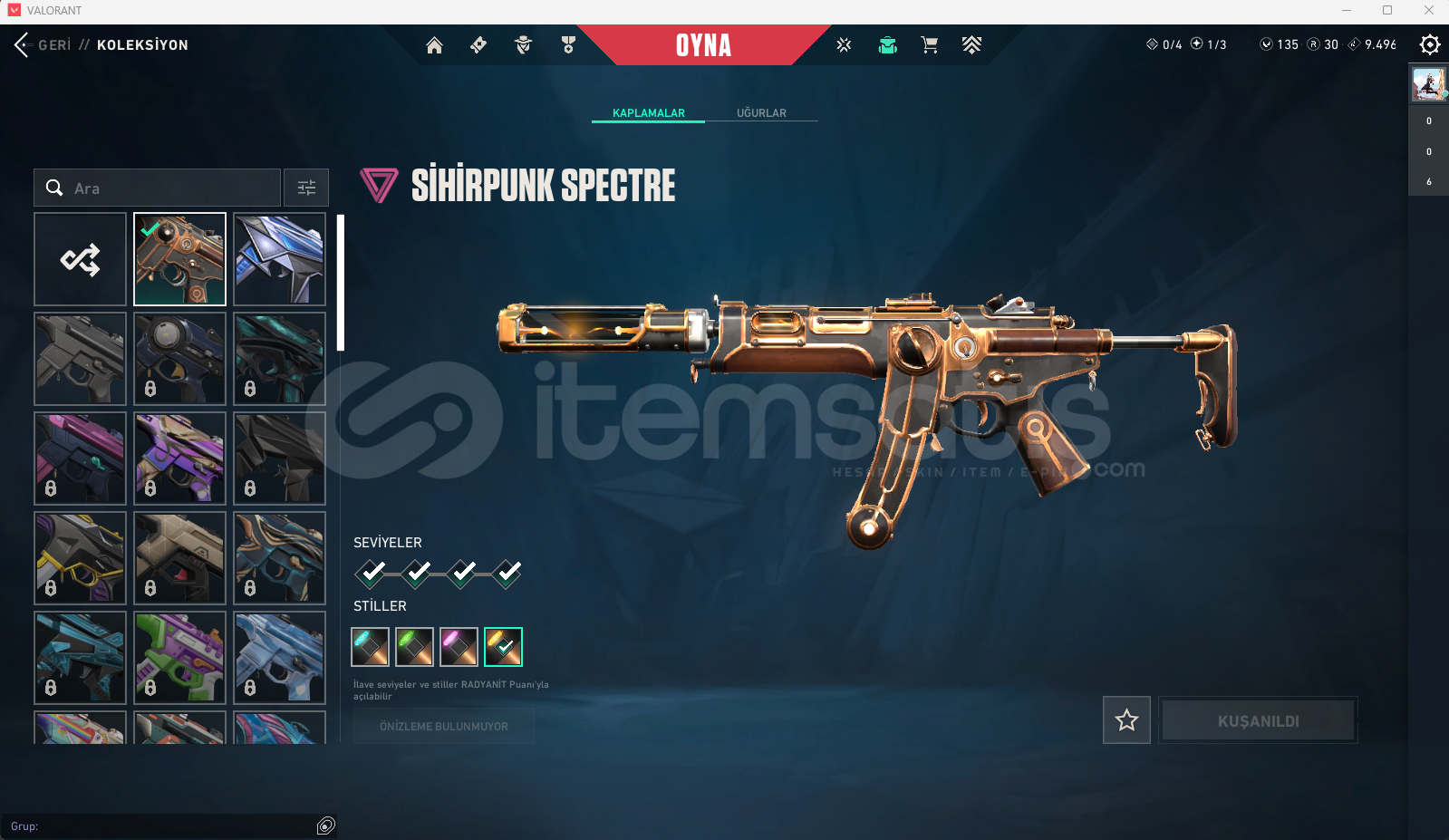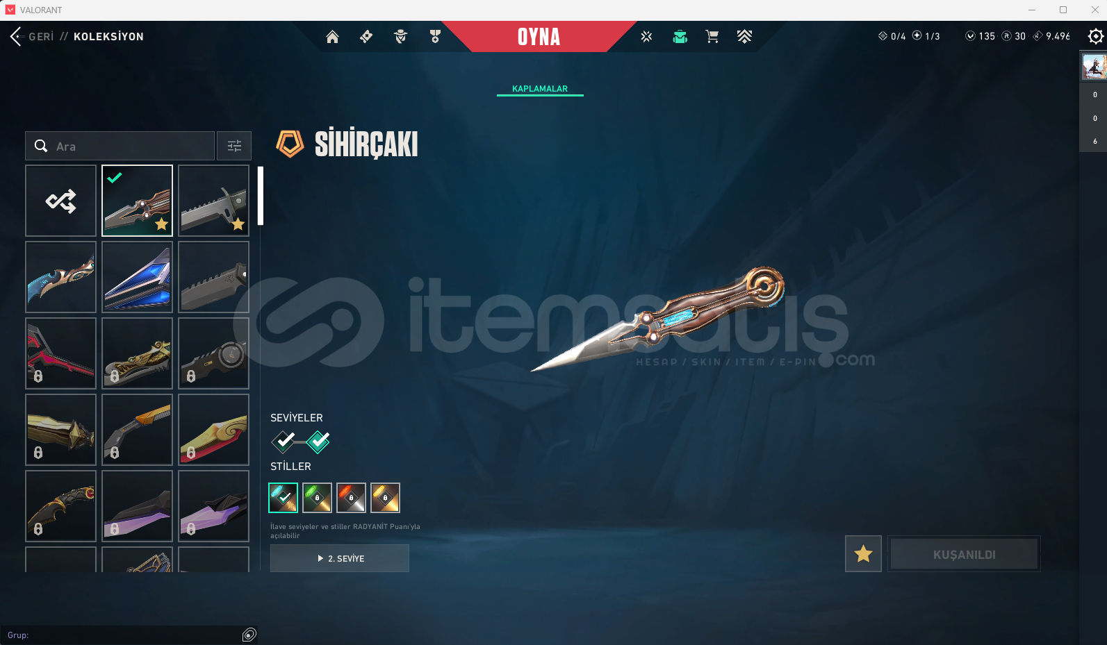 KURONAMİ VANDAL.YAĞMACI VANDAL.CESUR YÜREK OPERATOR.ÖZEL HAREKAT GUARDİAN.İYON PHANTOM.SİHİRPUNK SHERRİF.SİHİRPUNK SPECTRE.SİHİRÇAKI.XENOHUNTER BIÇAK.AY YADİGARI BIÇAK..47 SEVİYE..BRONZ 2