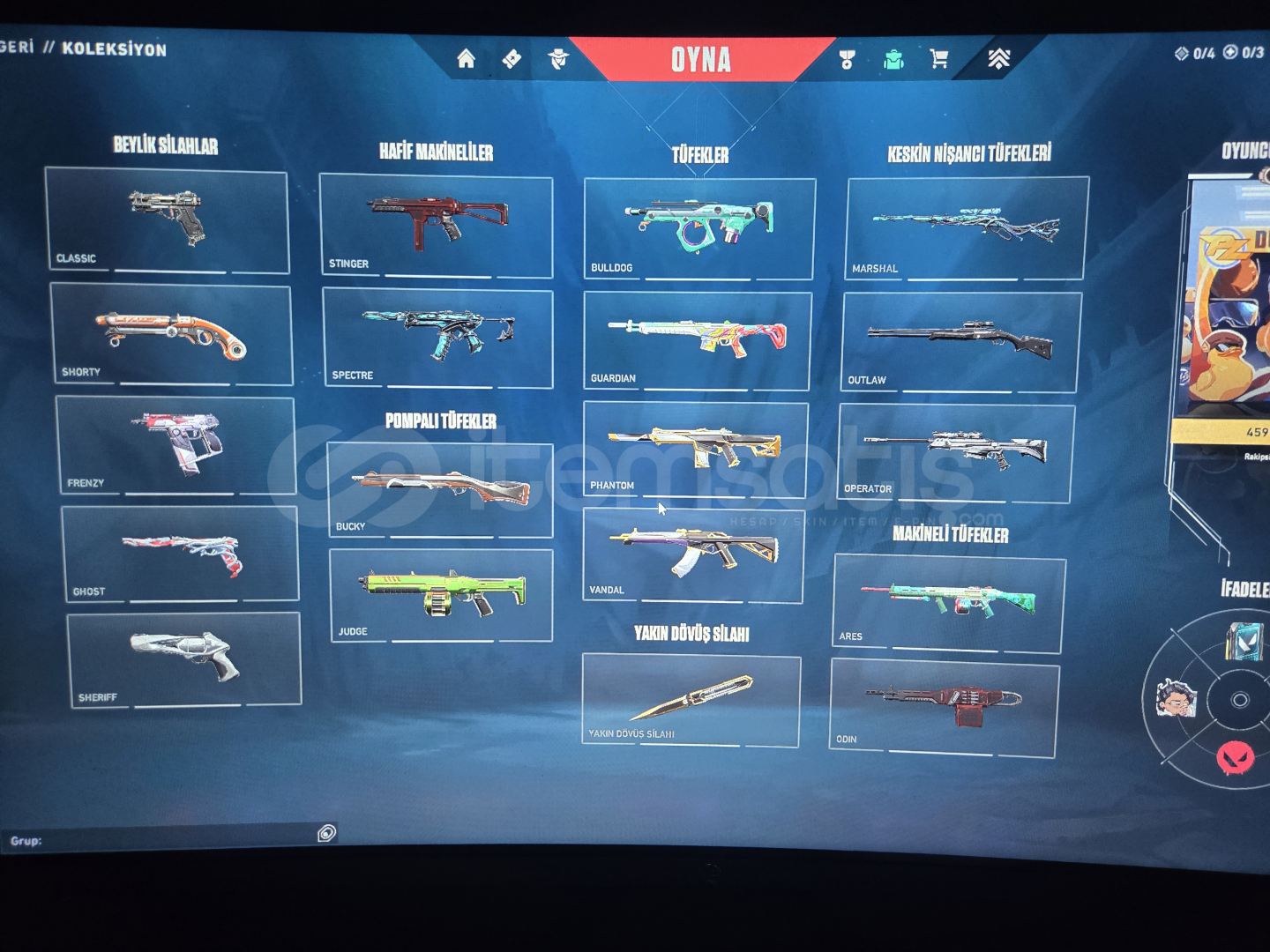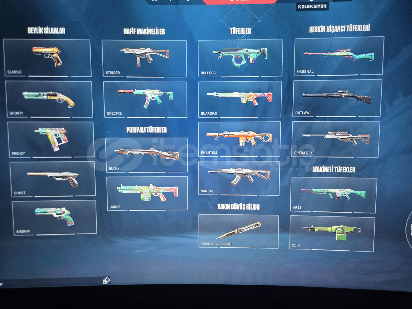 Hesapta outkow dışında bütün silahlar skin bulunur Hesapta 3 ü özel koleksiyon 2 si battle pas olmak üzere 5 bıçak skini bulunur YAĞMACI KARAMBİT CHAMPIONS 2025 KELEBEK DELIPOP HANÇER HIZLI VE ÖLÜMCÜL KARAMBİT PRİZMA ||| BALTA ASİL VANDAL ASİL 2.0 PHANTOM ANOMALİ PHANTOM YAĞMACI OPERATOR GAIA NIN İNTİKAMI MARSHAL GAIA NIN İNTİKAMI GHOST AFET SPECTRE ...