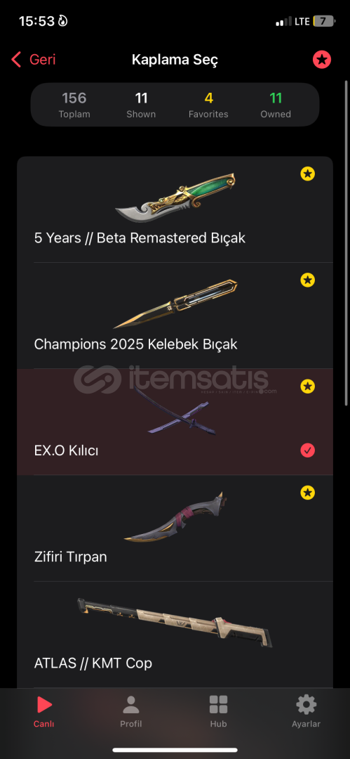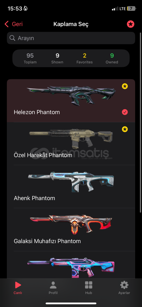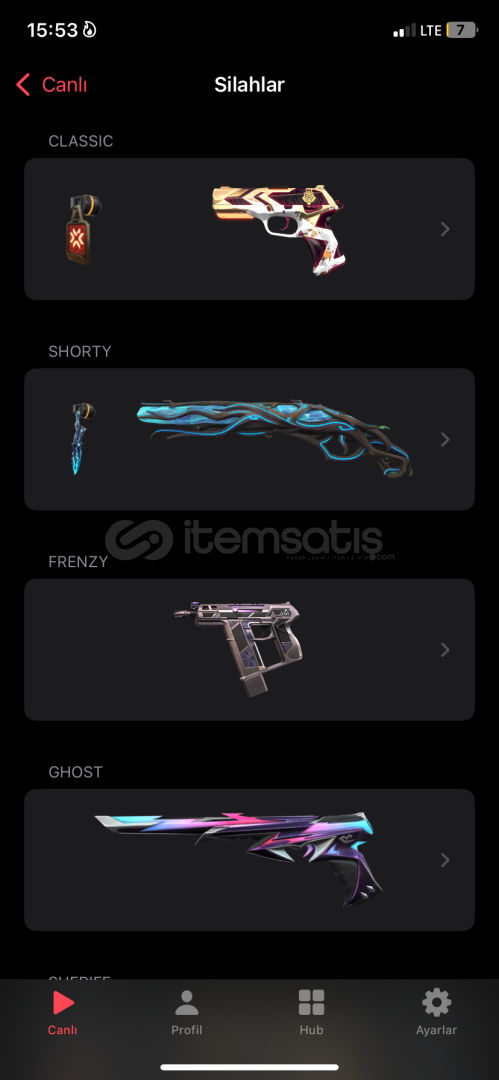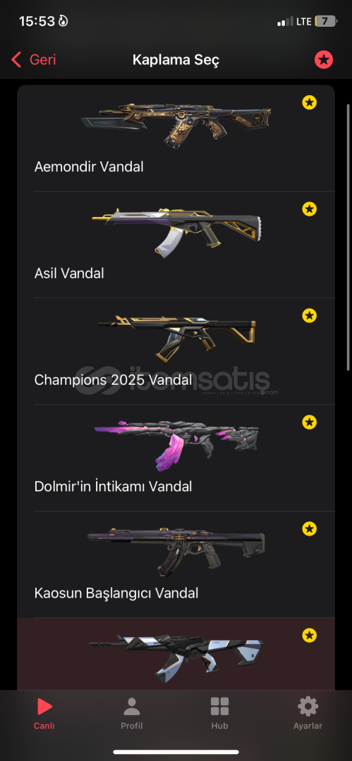 Vandal=Splash,oni,aemondır,splashx,kaos,one tap,asilPhantom=Helezon,Özel HarekatBuck=OniShorty=GaiaClassic=VCT25 G2Bıçak=5 Years//Beta Remaster Bıçak,Ex.o kılıcı,Zifiri tırpan,Champions 2025 kelebekOperatör=Sır çiçeğiAotlaw=Yıldız belasıSheriff=Ejderin buyruğu+4 battle pass