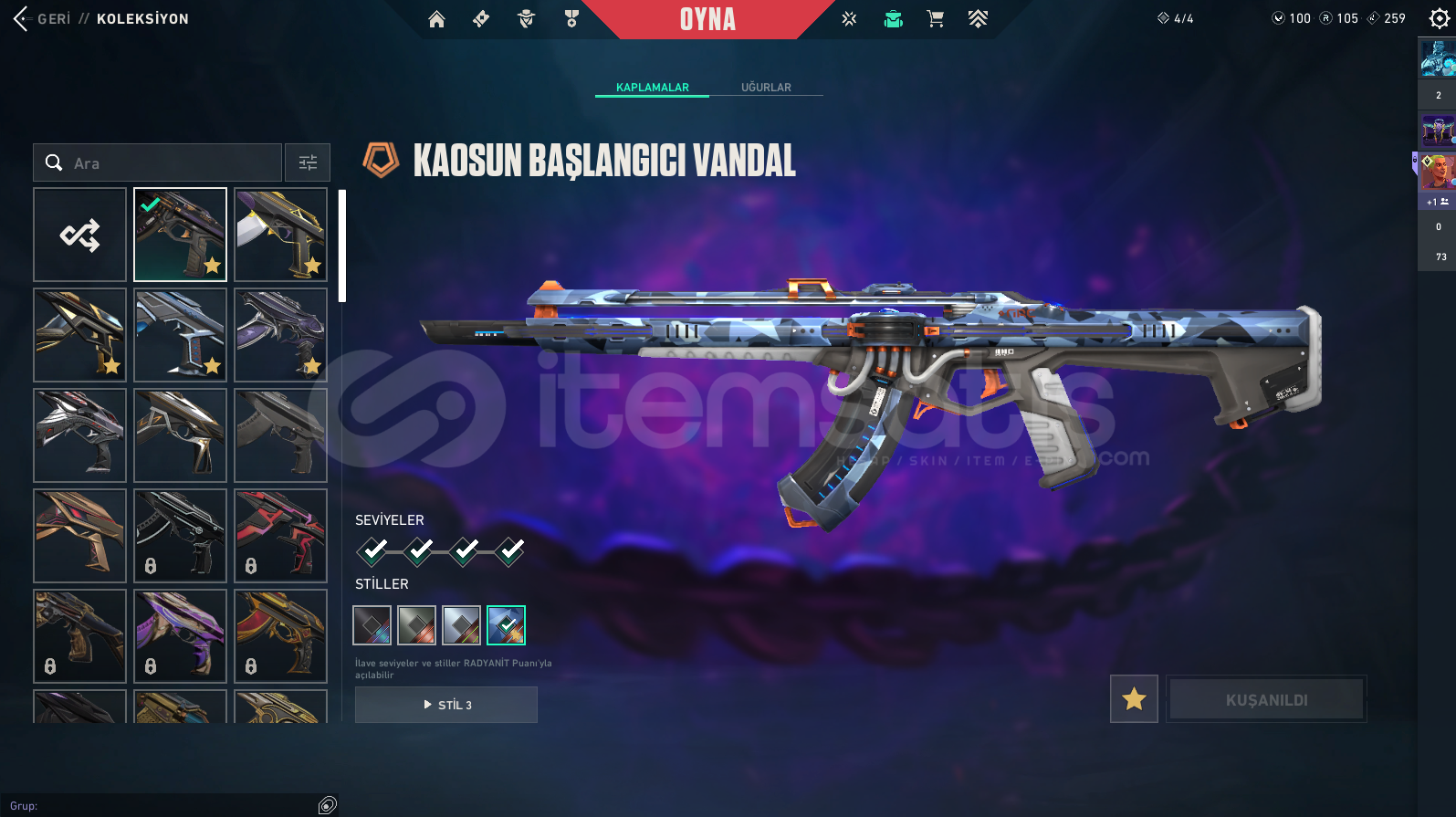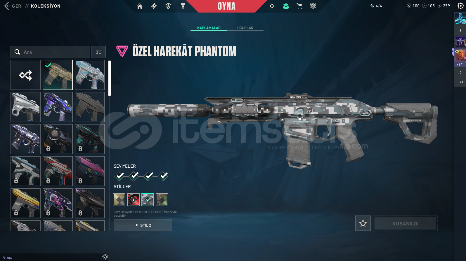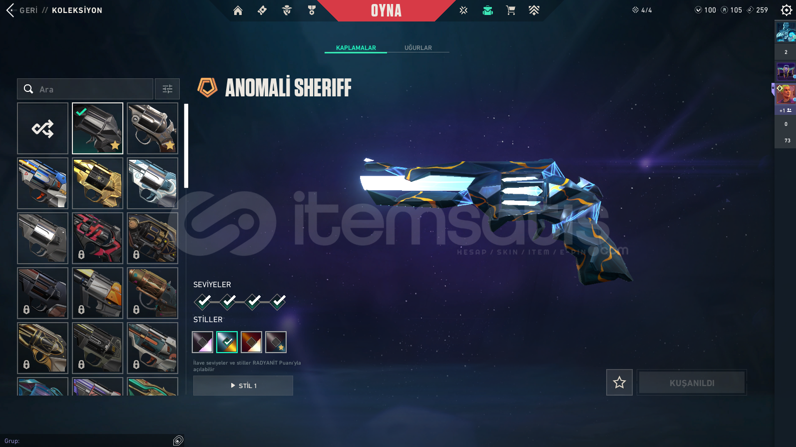Ghostlar:Cesur Yürek Ghost-----------------Sheriffler:Anamoli SheriffSeri Tetik Sheriff-----------------Vandallar:Champions 2025 VandalAsil VandalKuronomi VandalUlupençe VandalIşık Muhafızları VandalKaos VandalYağmacı Vandal-----------------Phantomlar:Özel Harekat Phantomİyon Phantom-----------------Bıçaklar:Champions 2025 KelebekRGX KelebekDenge Yelpaze-----------------Odinler:Işık Muhafızı Odin-----------------...