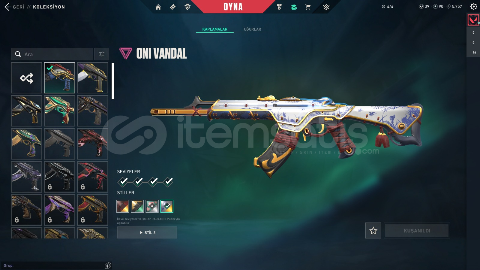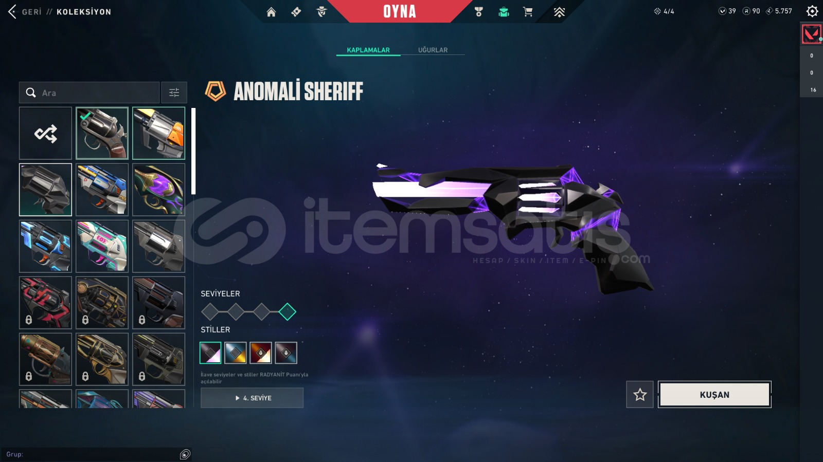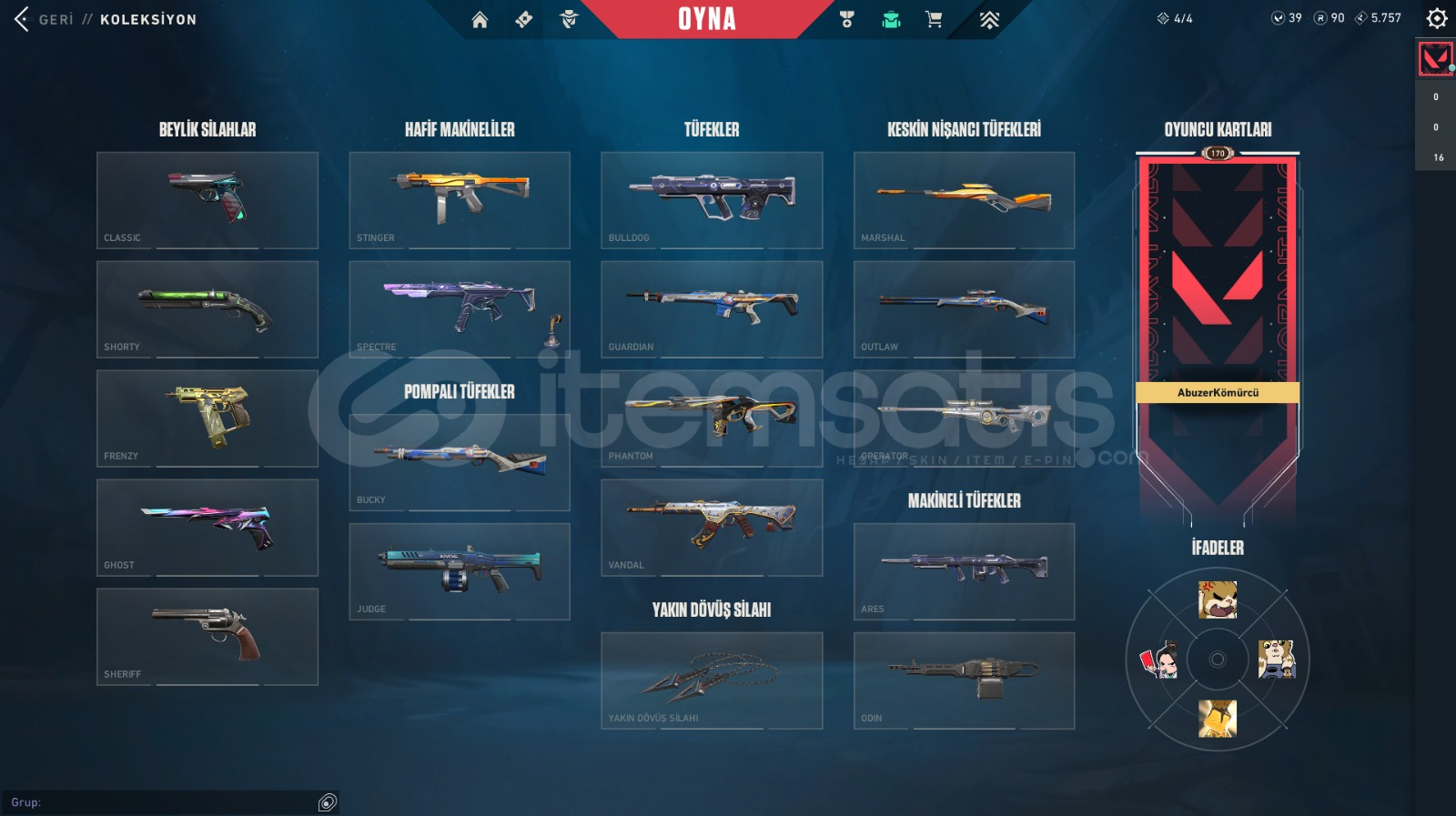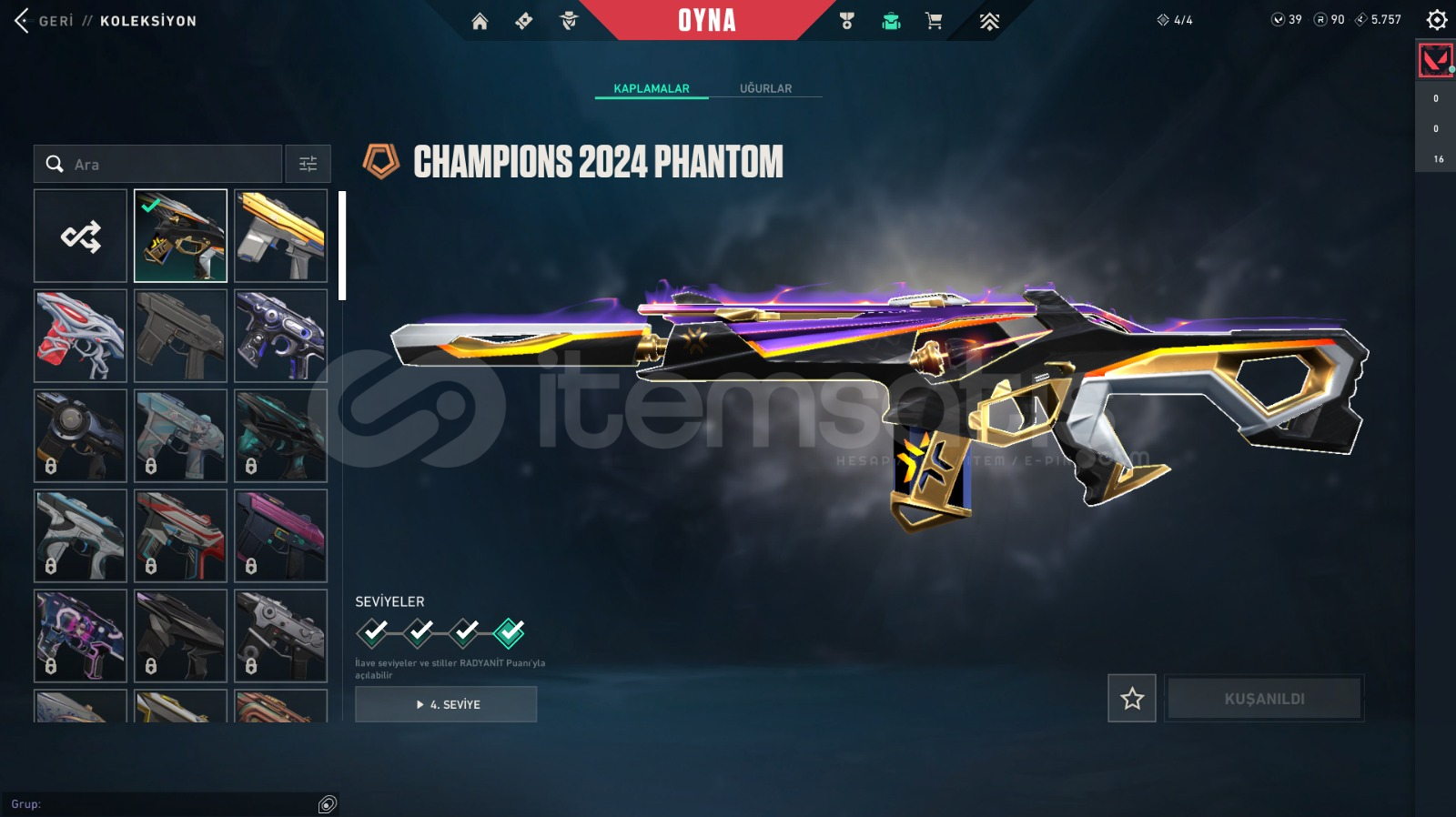 Asil ClassicAnomali SheriffSeri Tetik SheriffCesur Yürek GhostIşık Muhafızı SpectreGaia PhantomChampions 24 PhantomYağmacı VandalAsil VandalOni VandalKaos VandalEjderin Buyruğu VandalChampions 25 VandalKaraborsa KelebekYıldız Belası 2 bıçağıKuronomi hançerChampions 25 KelebekIon OperatörKöken OperatörPEAK RANK DİA2