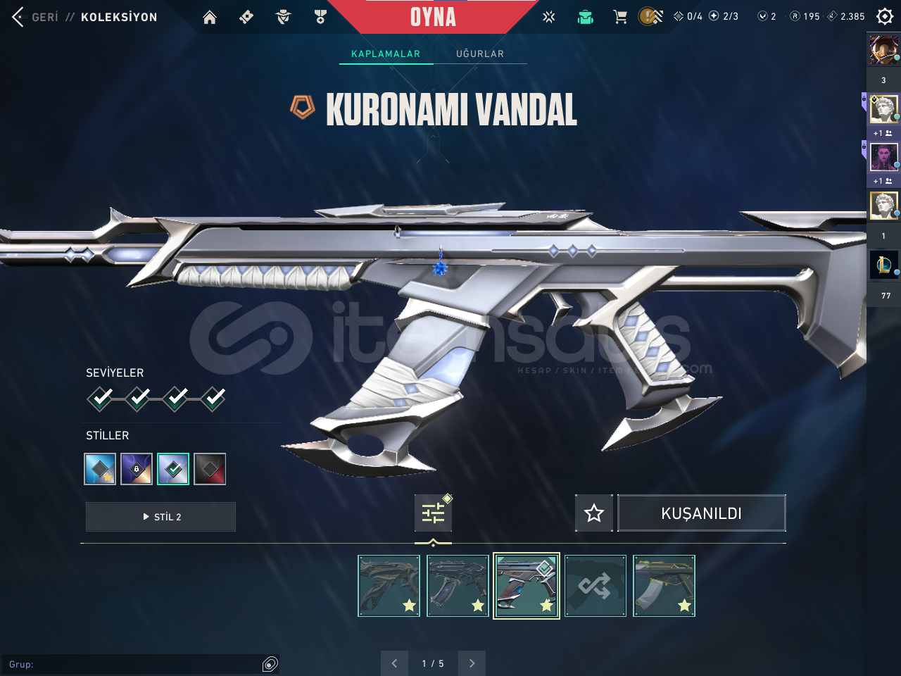 her silahta en az bir skin vardı görselde göründüğü gibi