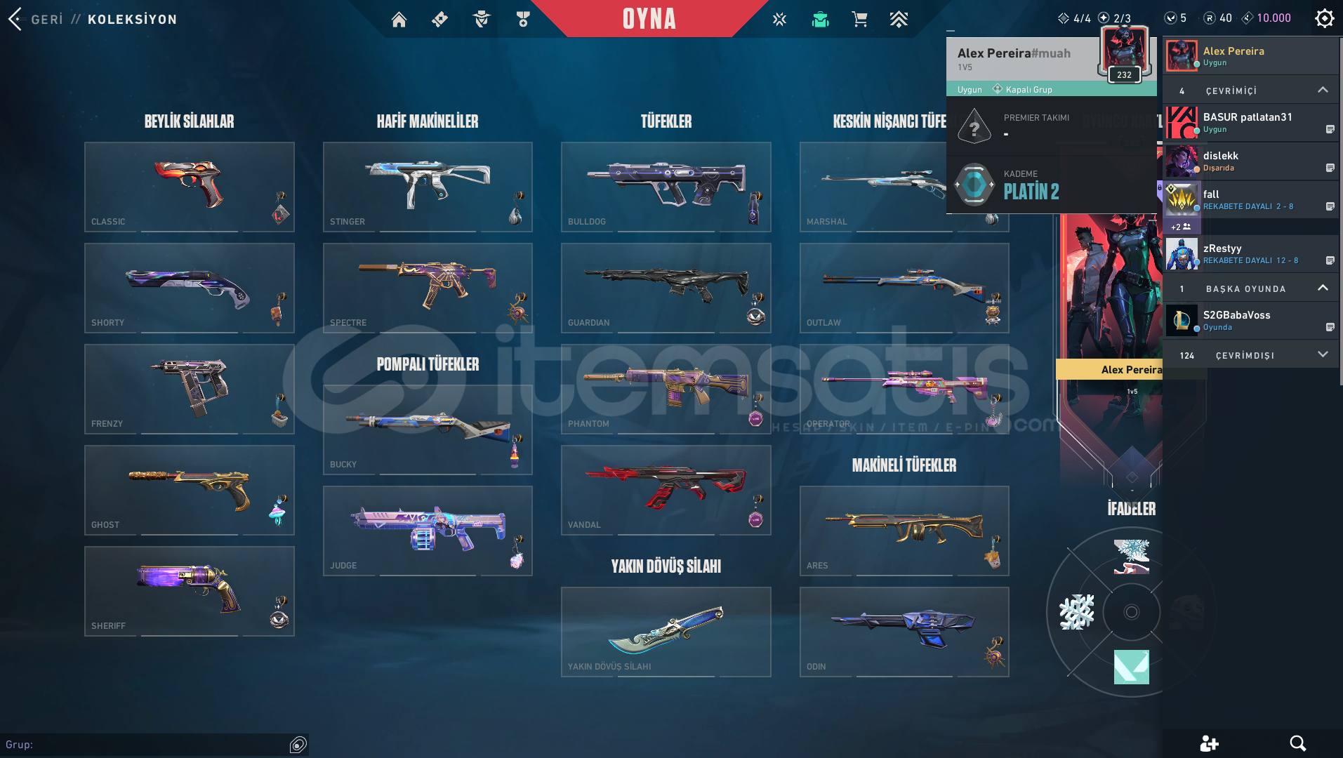 ömürlük plat hesap6 vandal2 phantom1 sherıff1 ghost1 guardıan1 ares7 bıcak bulunmaktadır4 tane battle pass acılmıstıreposta devir yapılacakalana h.o detaylı bilgi ve sorularınız vasa dmpazarlık yaparım