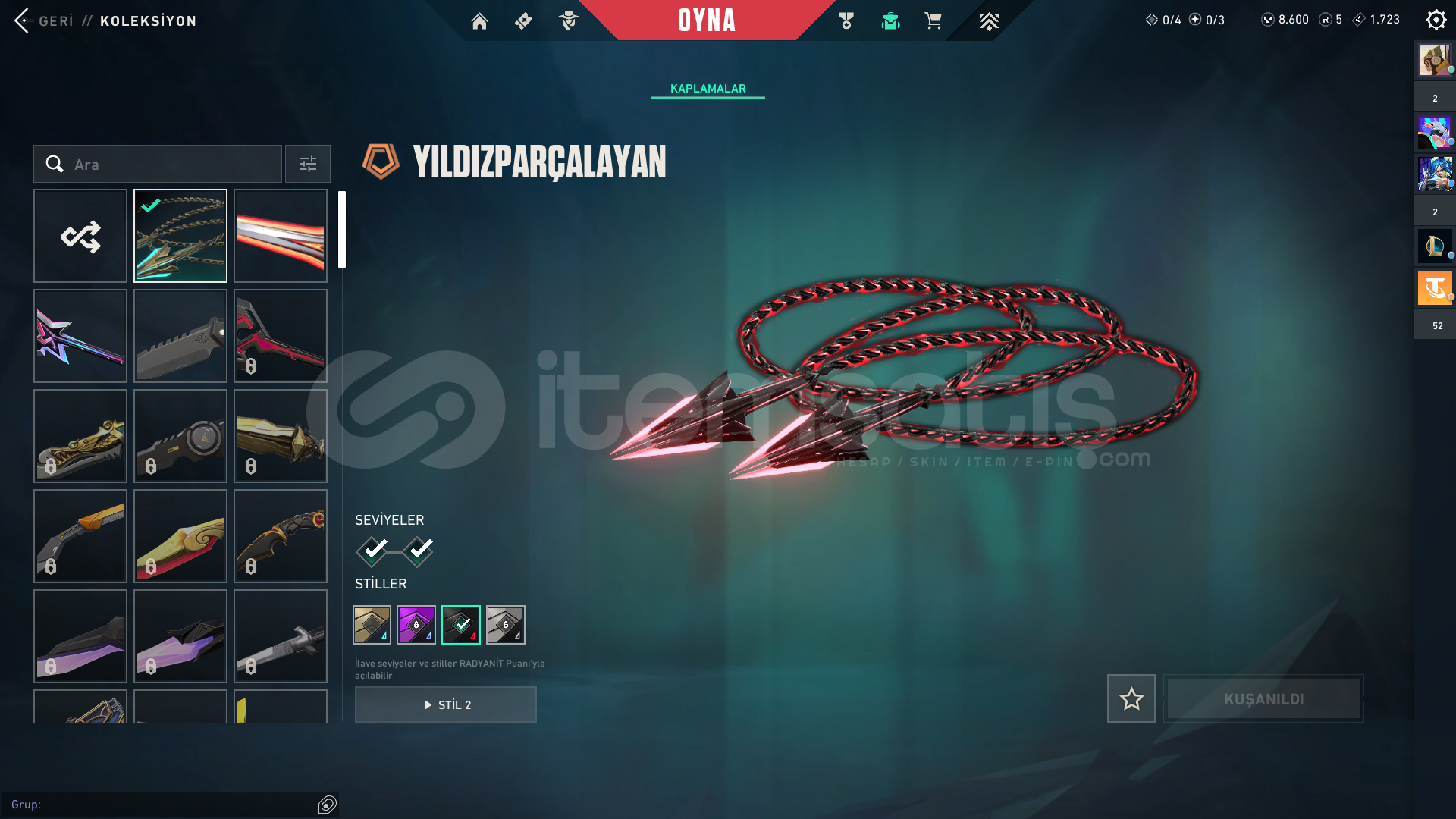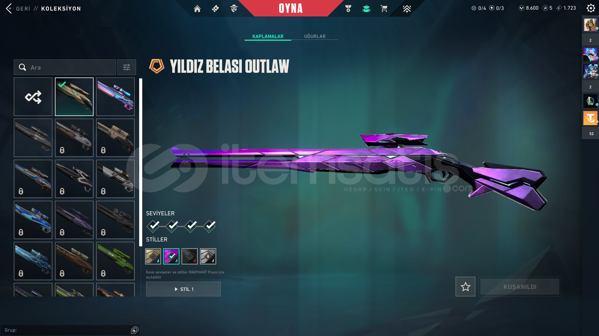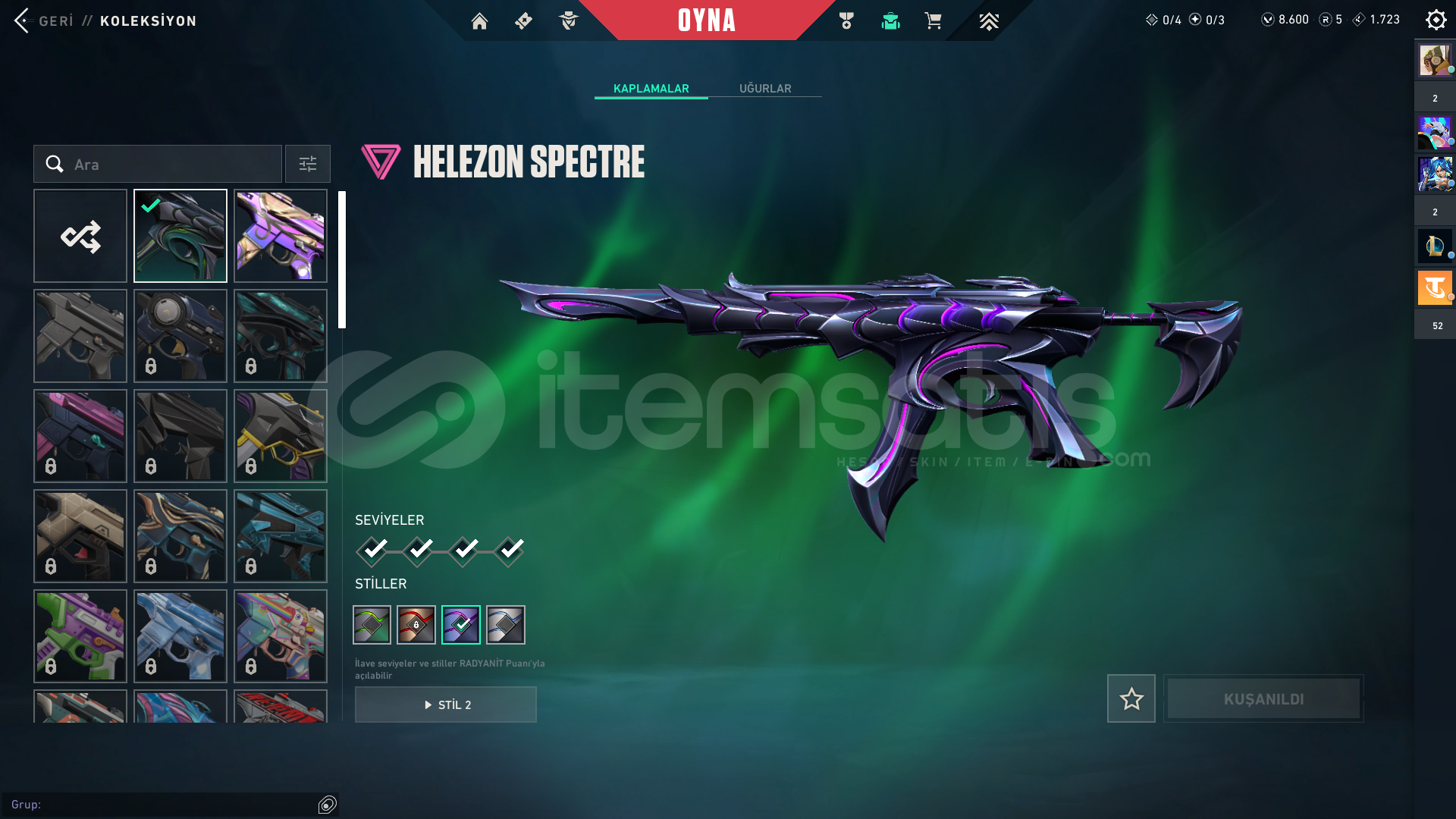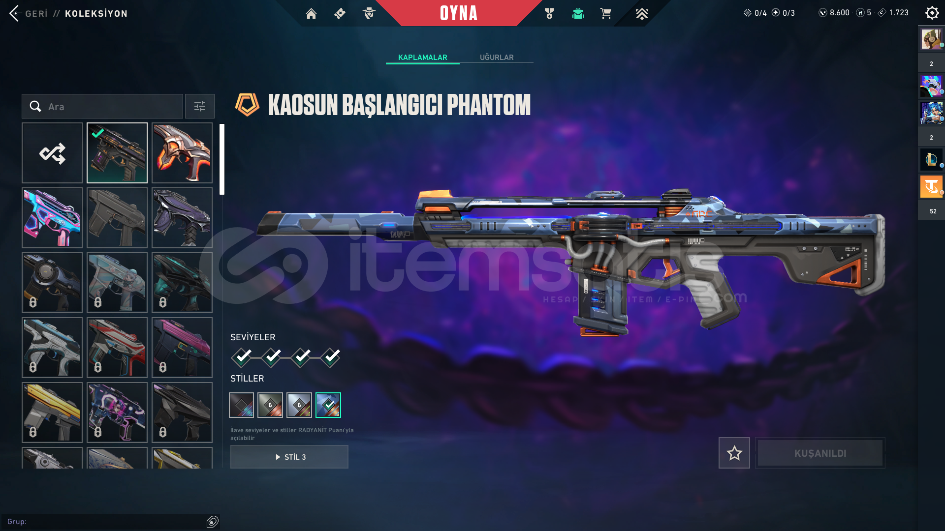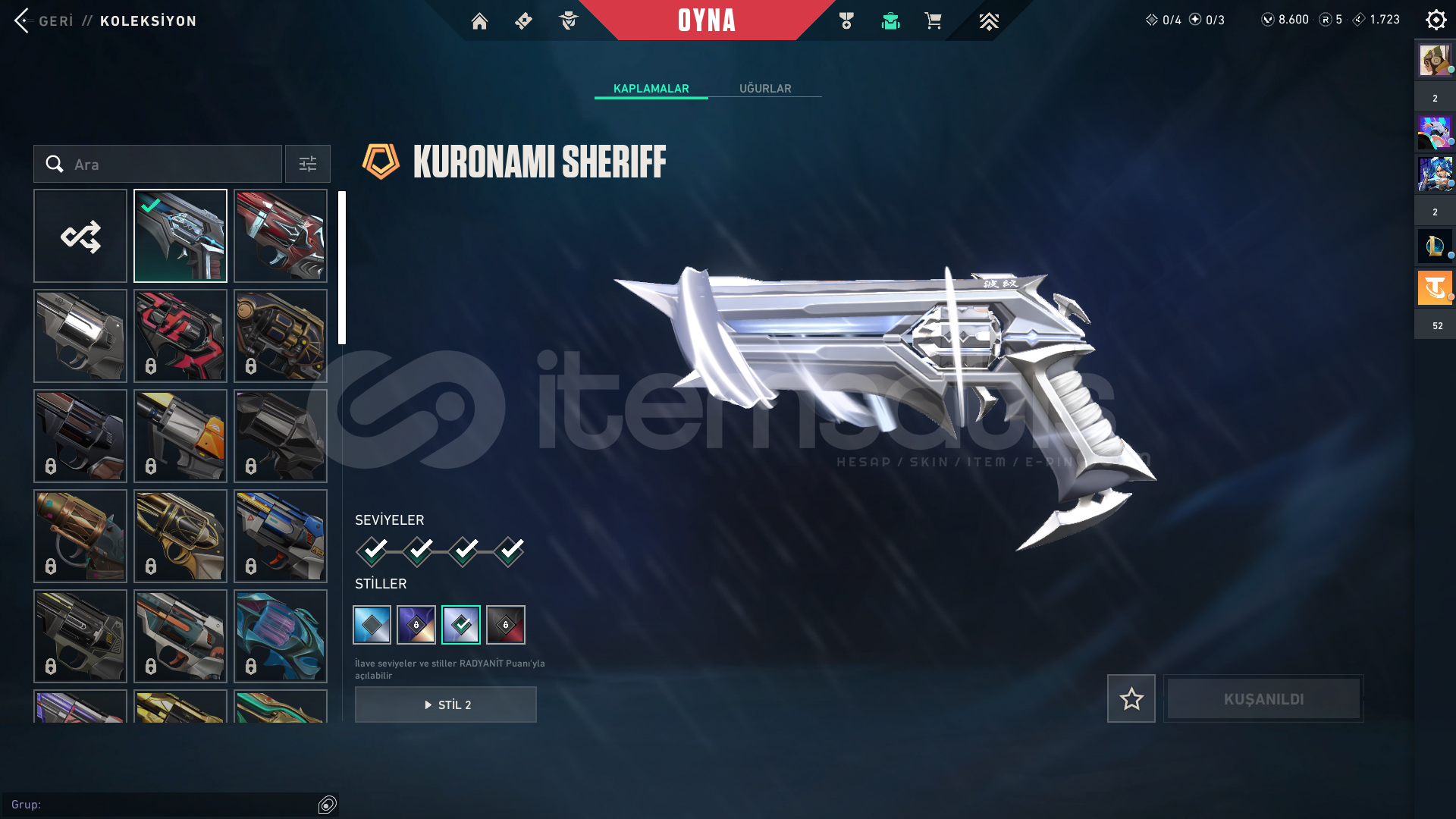 kuronami sheriff hellezon spectre kaos phontom + yağmacı phontomdolmir vandalyıldız belası outlowyıldız parçalayan bıçakfaz koruyucu ghostclasic shorty marshall buldog odin op stringer bucky judge savaş bileti var8000vp içerde var