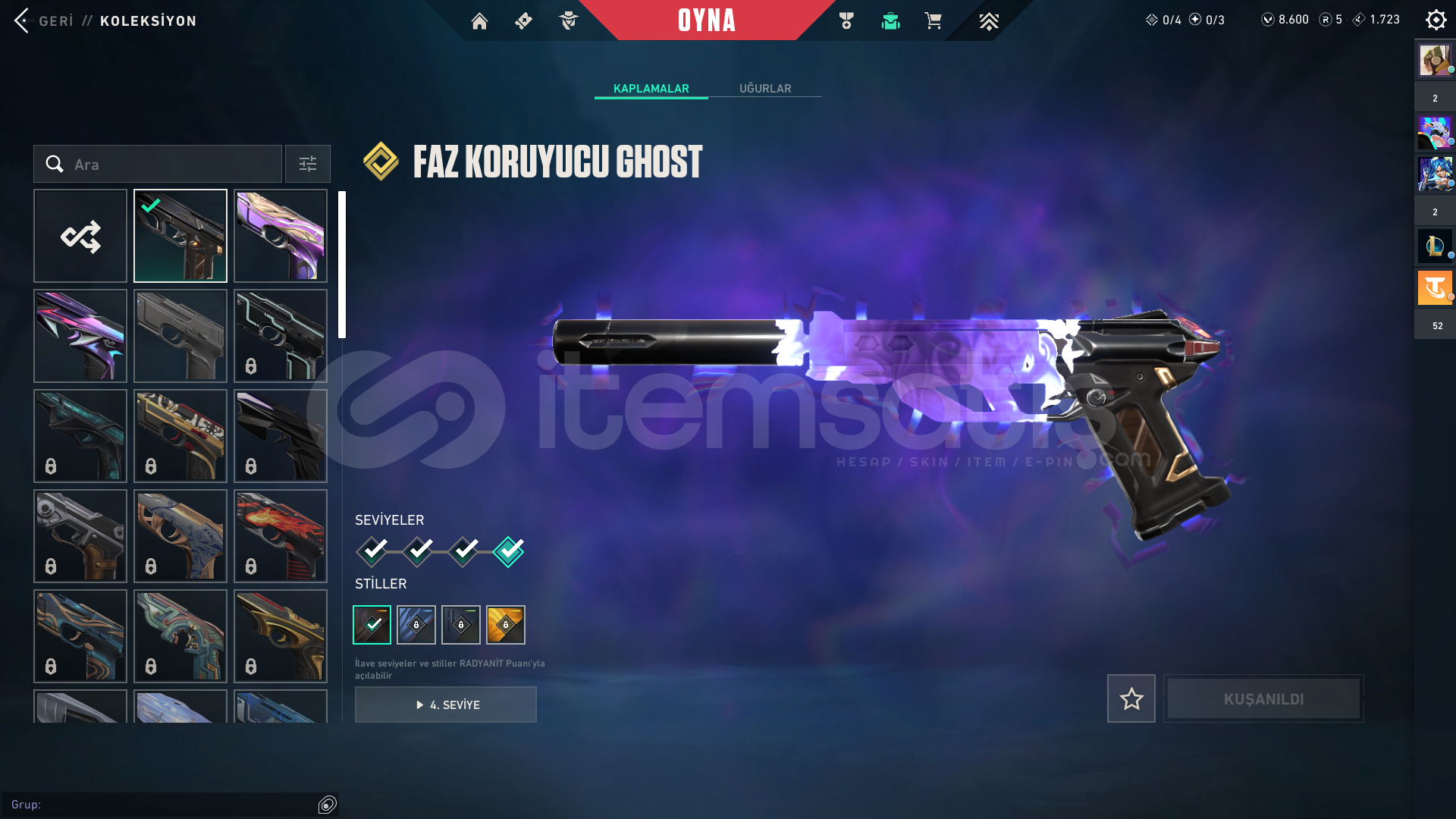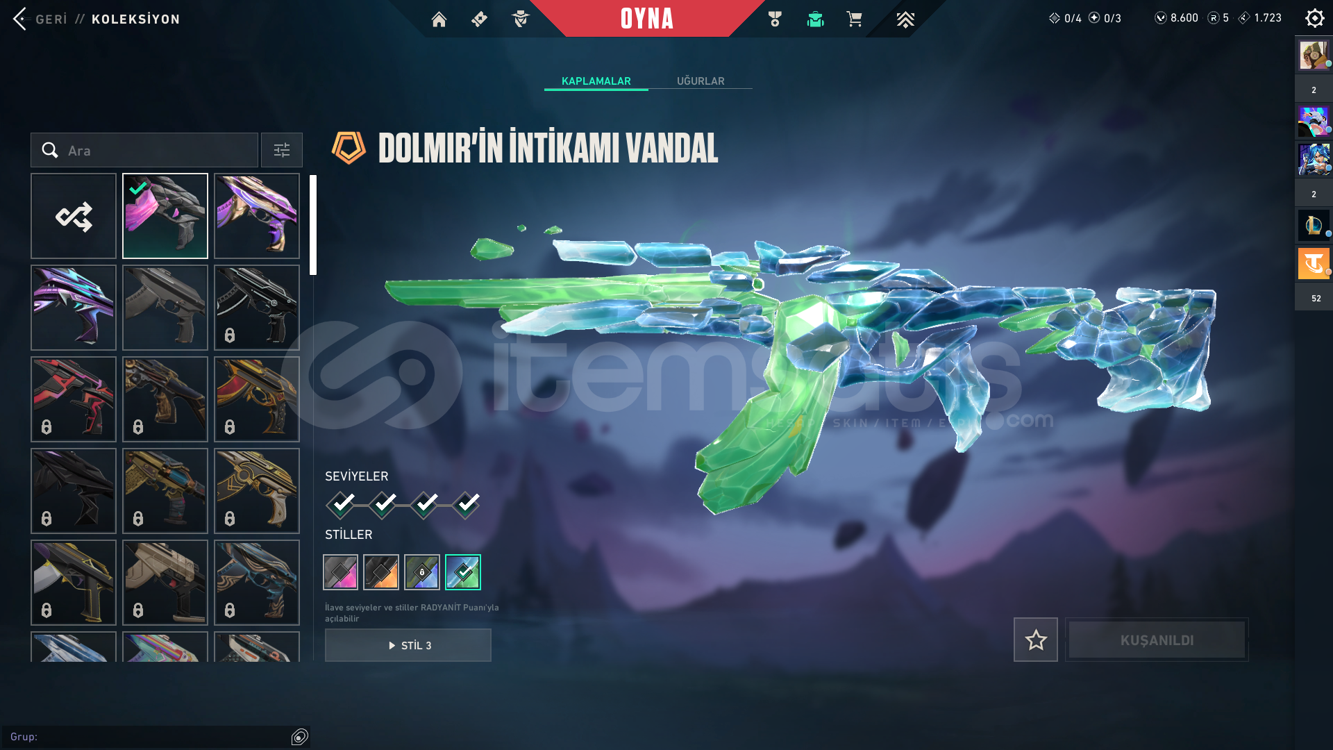 valorant dolu skin +8000vp içinde bakiye var