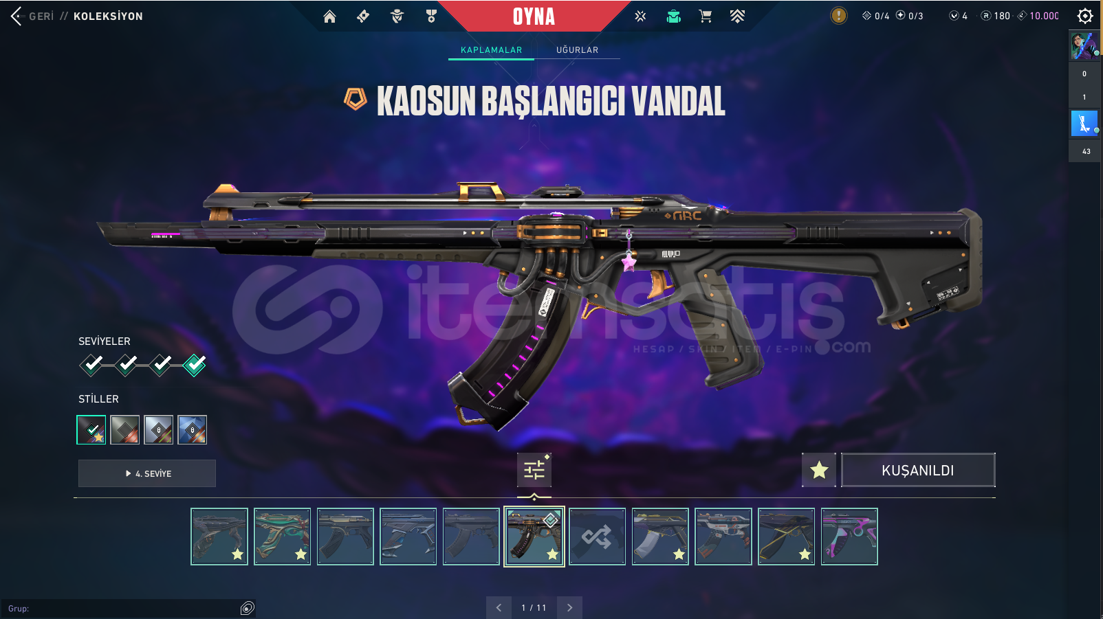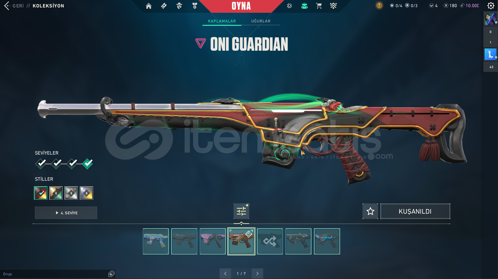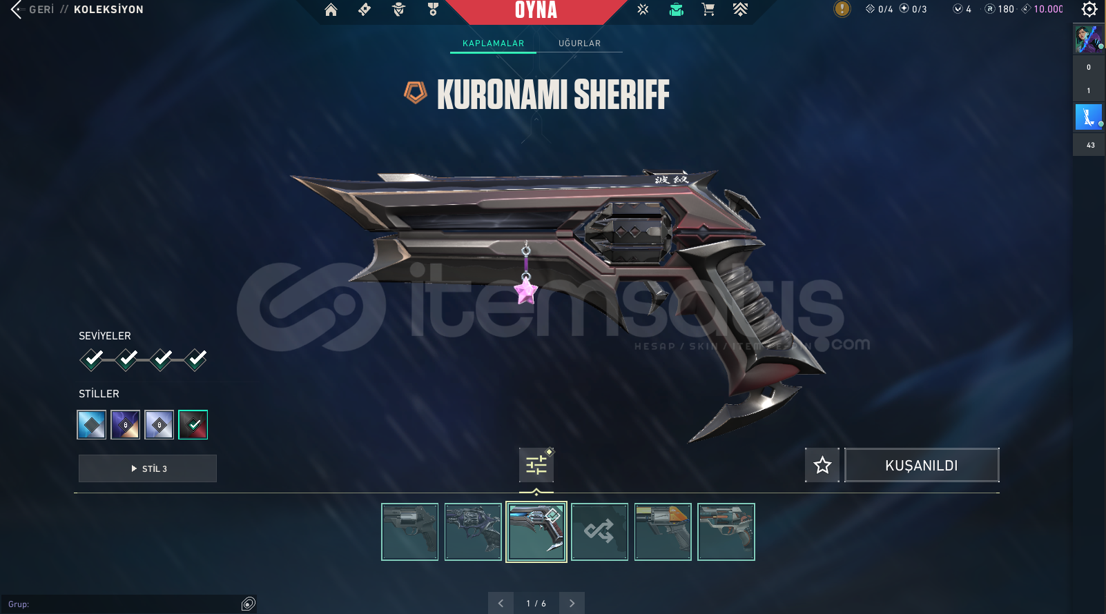 Vandal : KAOS VANDAL / ASİL VANDAL / CHAMPIONS VANDAL / EJDER VANDAL / EJDERİN BUYRUĞU VANDAL /PHANTOM : YAĞMACI PHONTOM /BIÇAK : YAĞMACI KARAMBİT / SİHİRÇAKI / KURONAMİ / KÖKEN BIÇAK /OPERATOR : YILDIZ BELASI OPERATOR / EJDER ATEŞİ OPERATOR /GUARDİAN : ONİ GUARDİANMARSHAL : GAİA /SPECTRE : SİHİROUNK SPECTRE /SHERIFF : KURONAMİ SHERIFF / YAĞMACI SHERIFF /GHOST : RADIANT ENTERT...