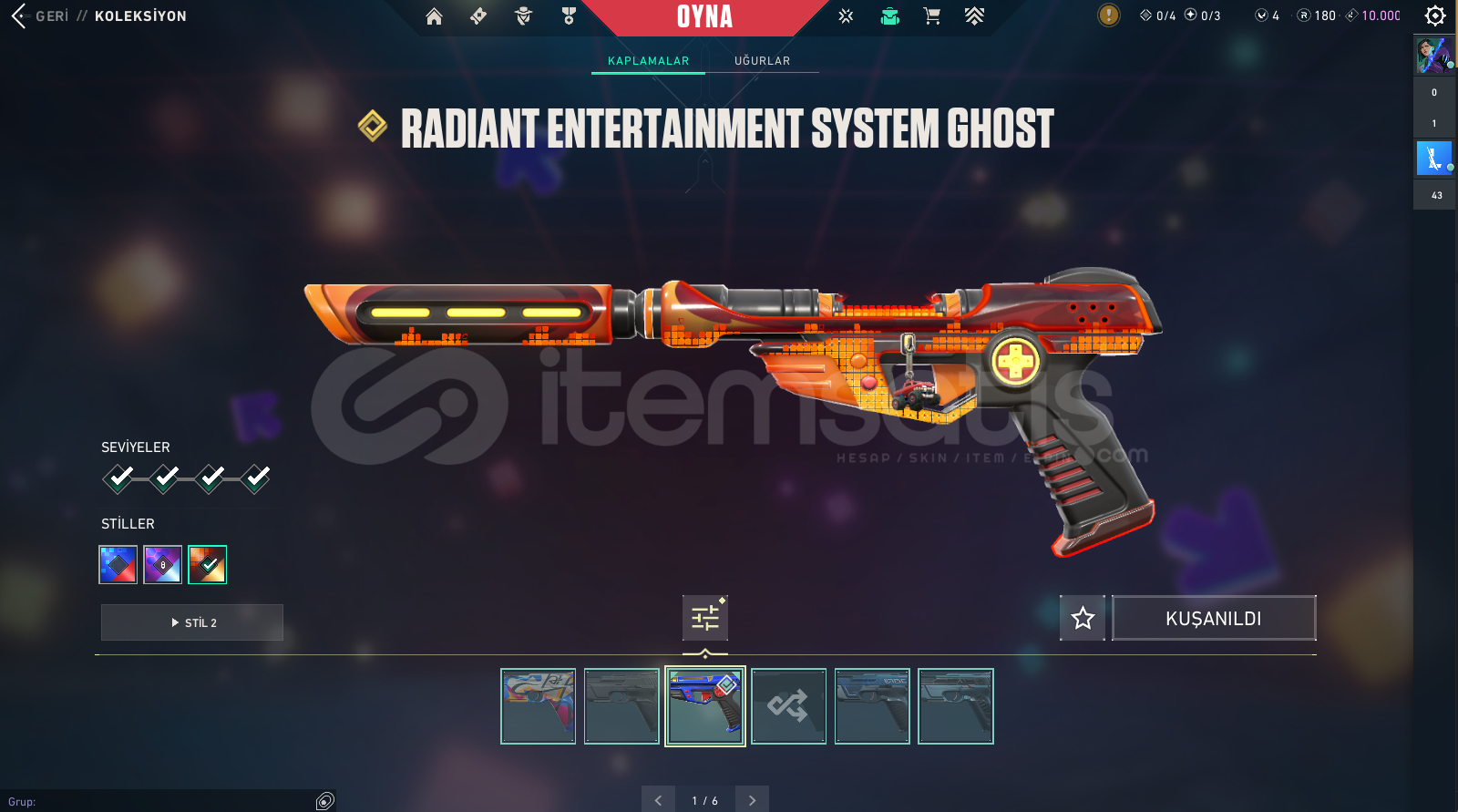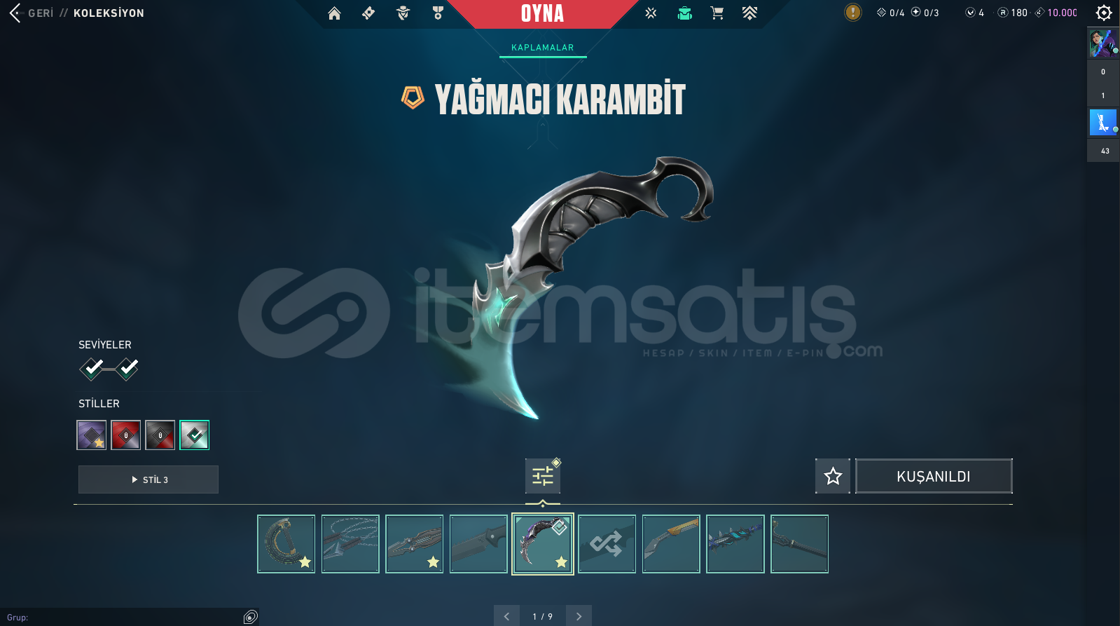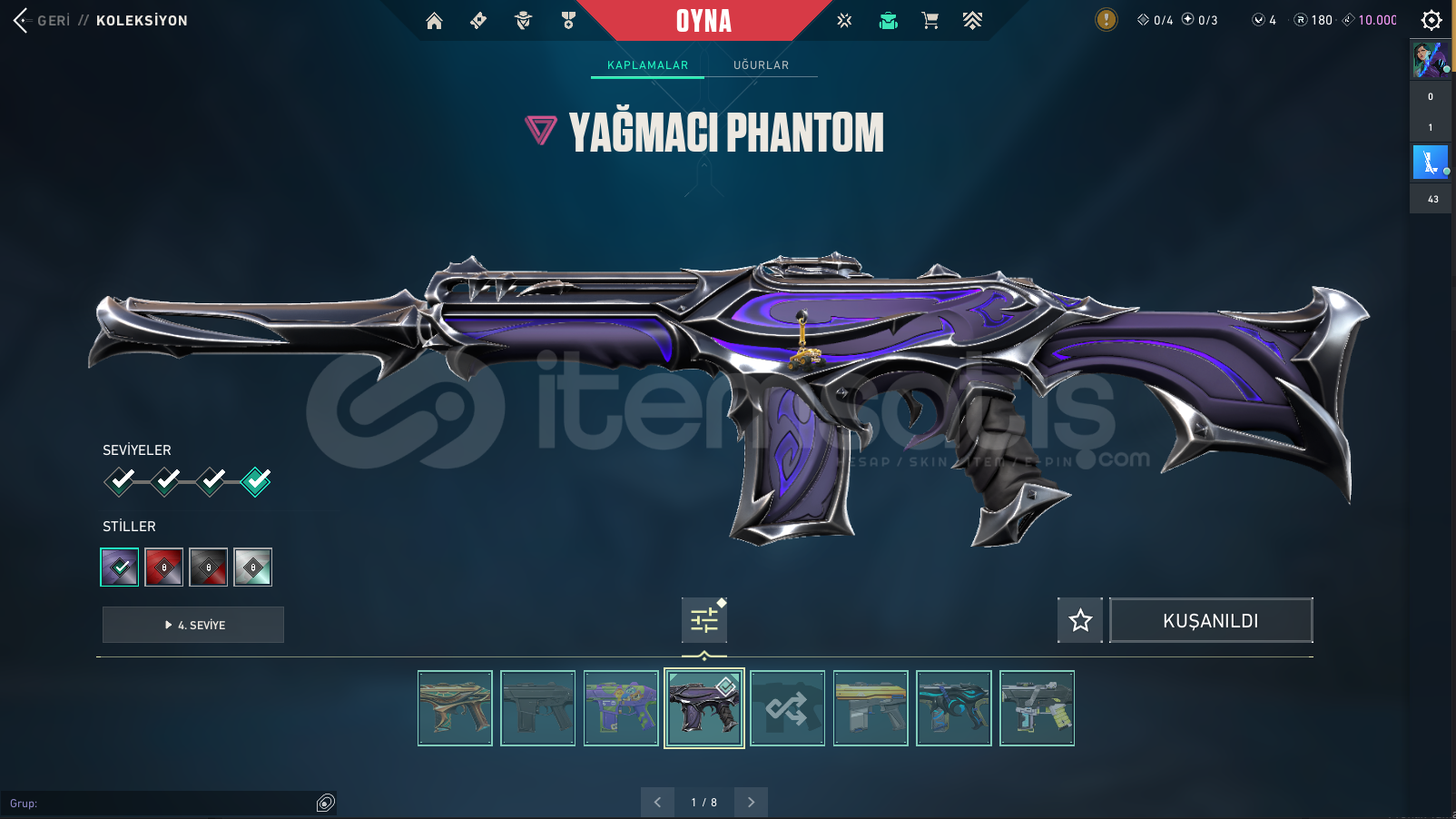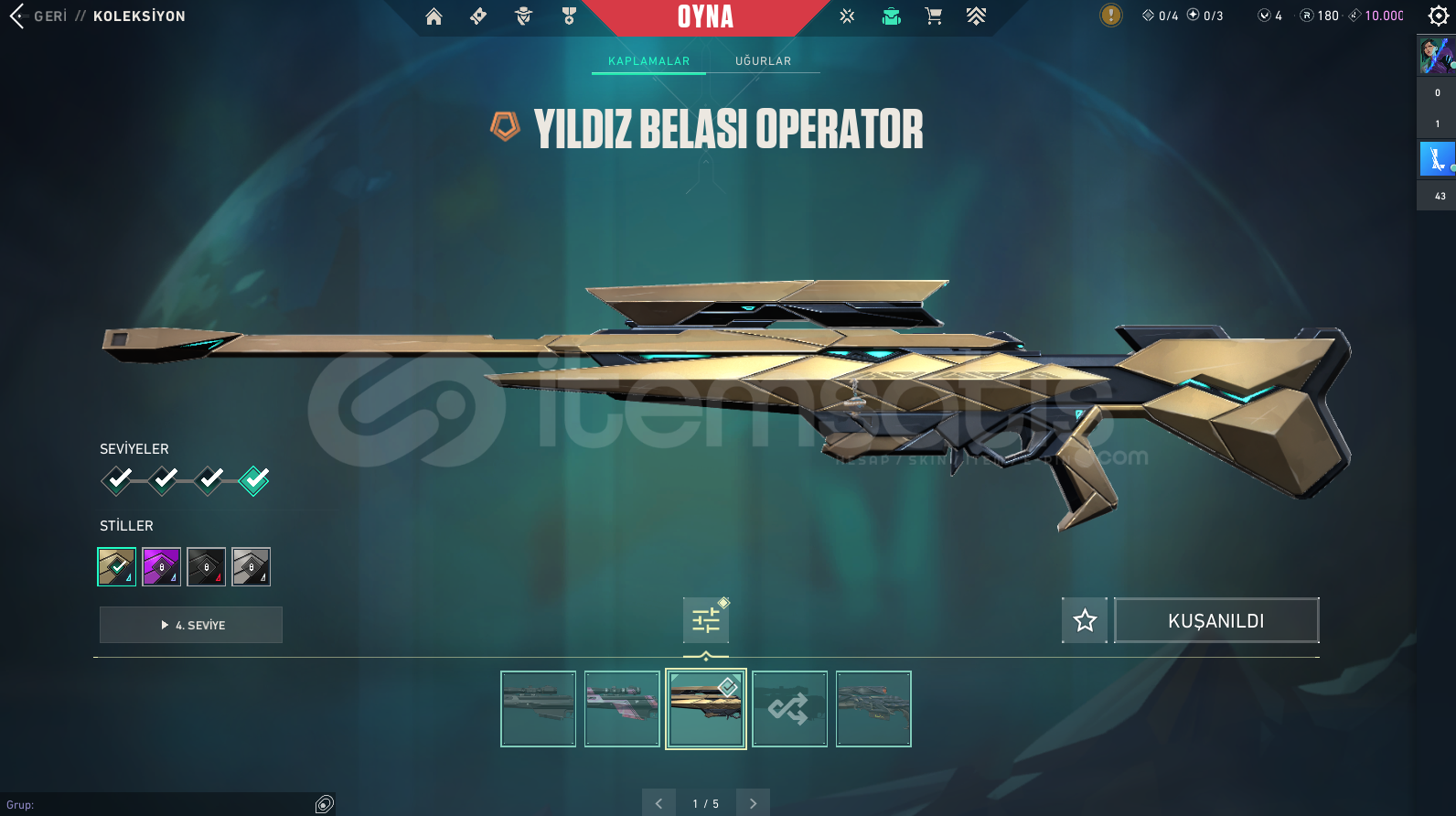Vandal : KAOS VANDAL / ASİL VANDAL / CHAMPIONS VANDAL / EJDER VANDAL / EJDERİN BUYRUĞU VANDAL /PHANTOM : YAĞMACI PHONTOM /BIÇAK : YAĞMACI KARAMBİT / SİHİRÇAKI / KURONAMİ / KÖKEN BIÇAK /OPERATOR : YILDIZ BELASI OPERATOR / EJDER ATEŞİ OPERATOR /GUARDİAN : ONİ GUARDİANMARSHAL : GAİA /SPECTRE : SİHİROUNK SPECTRE /SHERIFF : KURONAMİ SHERIFF / YAĞMACI SHERIFF /GHOST : RADIANT ENTERT...