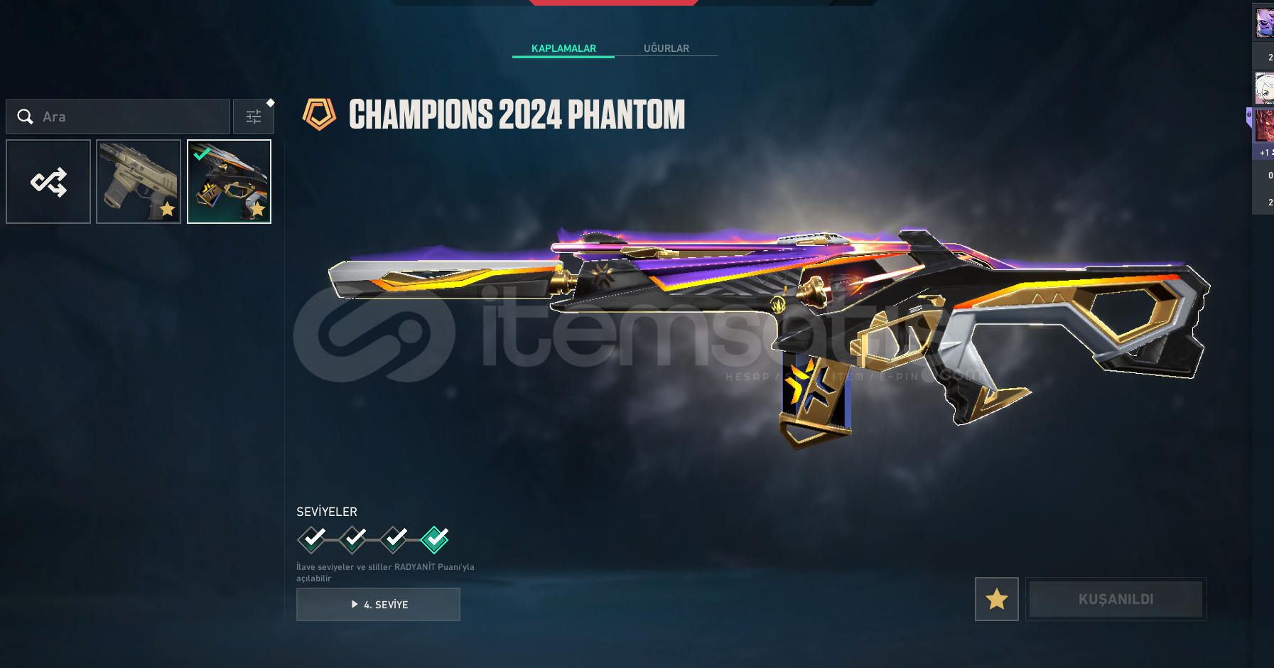 Hesabım tertemizdir, içerdiği skinler;KURONAMI NO YAIBA BIÇAKIYON KARAMBITÖZEL HAREKAT KELEBEKKAOSUN BAŞLANGICI VANDALARCANE VANDALANOMALI VANDALEX.O VANDALEJDER ATEŞİ VANDALIYON VANDALULUPENÇE VANDALYAĞMACI VANDALCHAMPIONS 2024 PHANTOMÖZEL HAREKAT PHANTOMEJDER ATEŞİ OPERATÖRYAĞMACI GUARDIANSERITETIK SHERIFFSERITETIK MARSHALLASIL SPECTREYAGMACI GHOSTBBL CLASSICHESAP KENDİ MAİLİNİZİN ÜST...