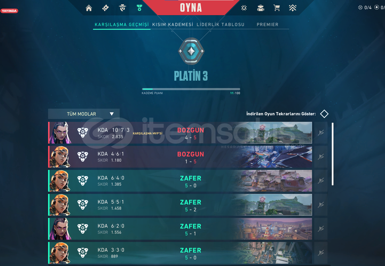 Premier doğrulanmadı ve hesap PLAT3 160 seviyedir