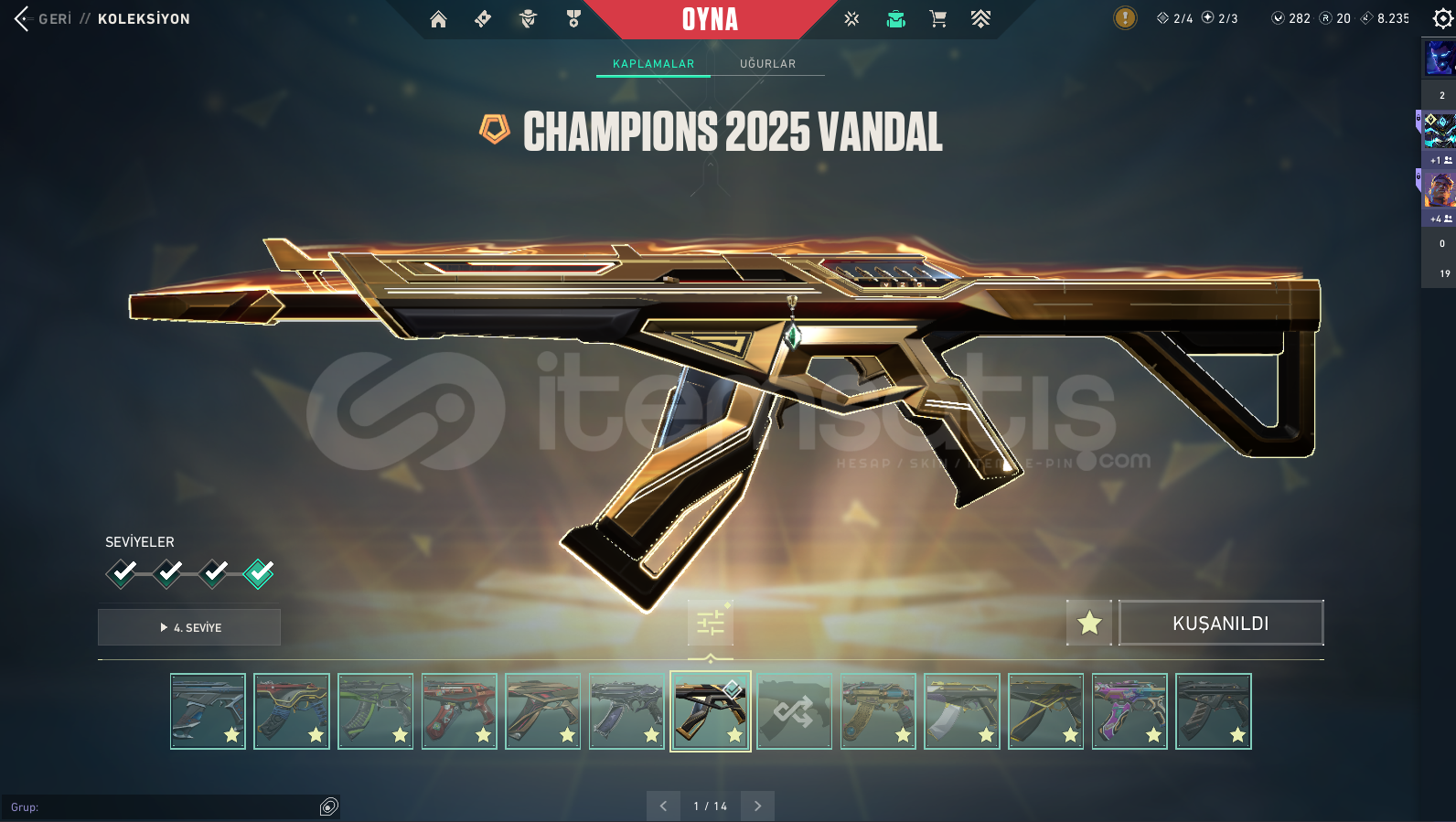Vandal Skinleri: Asil , Champiyon 2023 , Champions 2025 , Faz Koruyucu , Delipop , Oni , Kaos , RGX , Sürat Canavarı , Ulupençe , Yağmacı , Kuronami