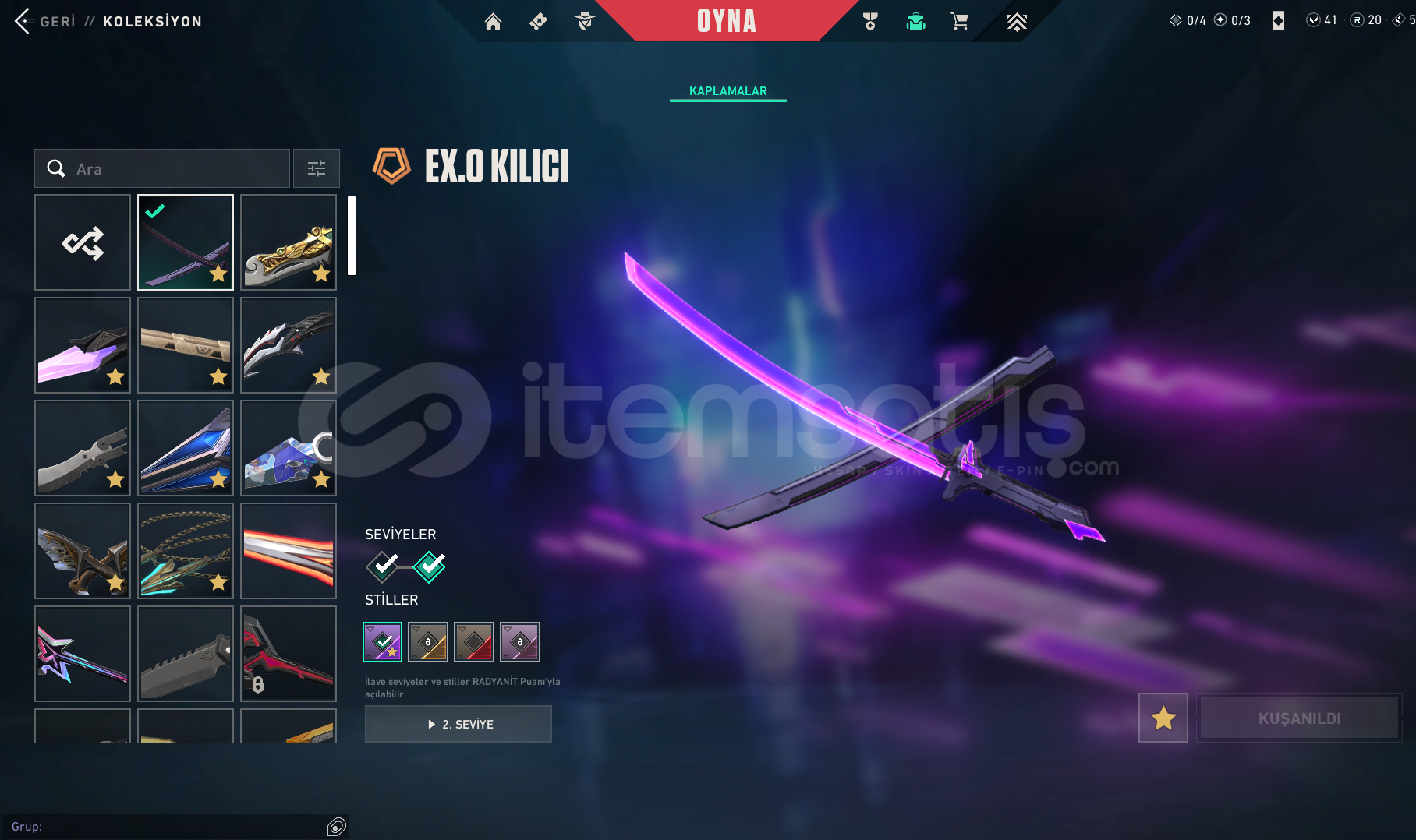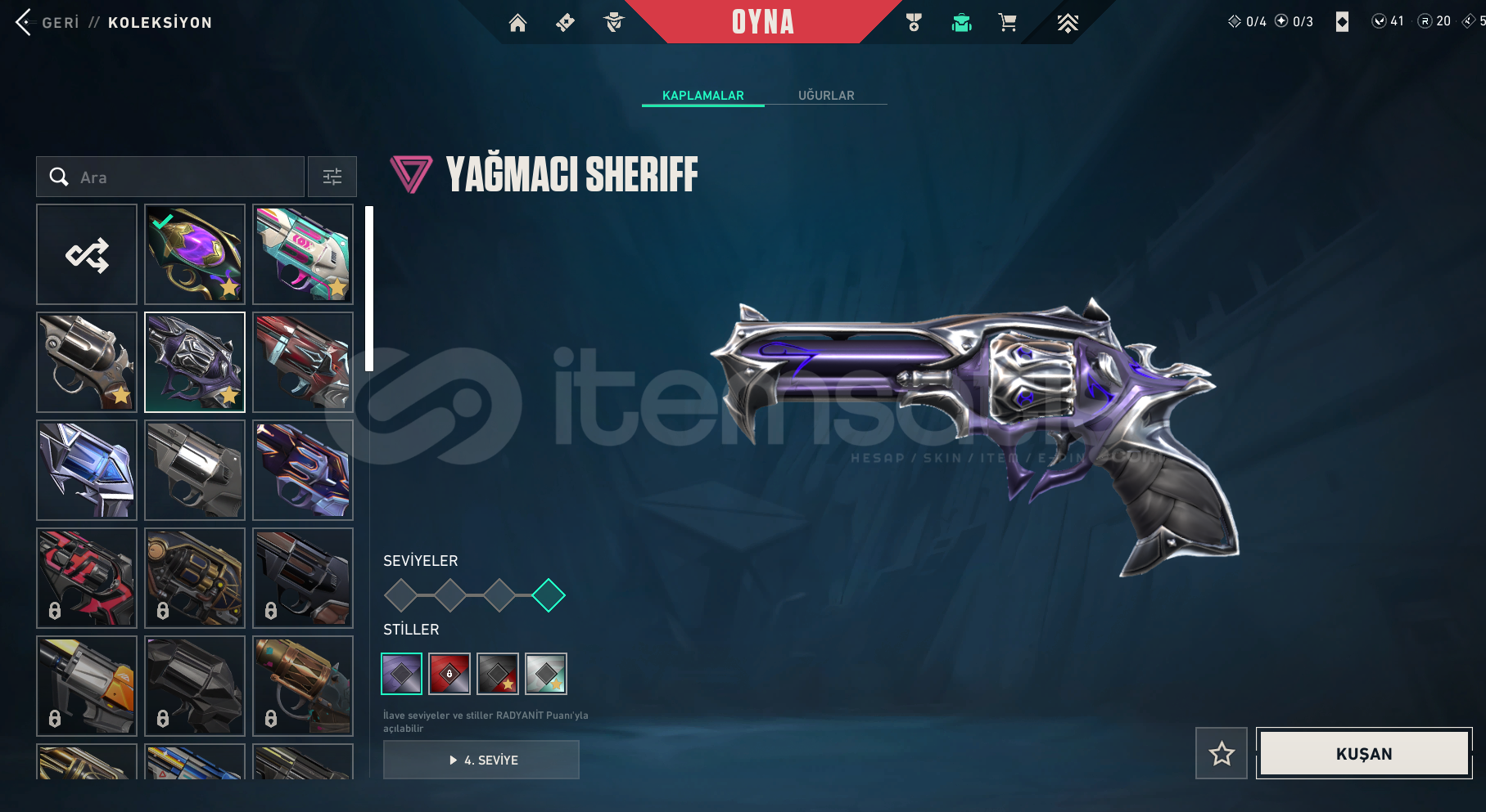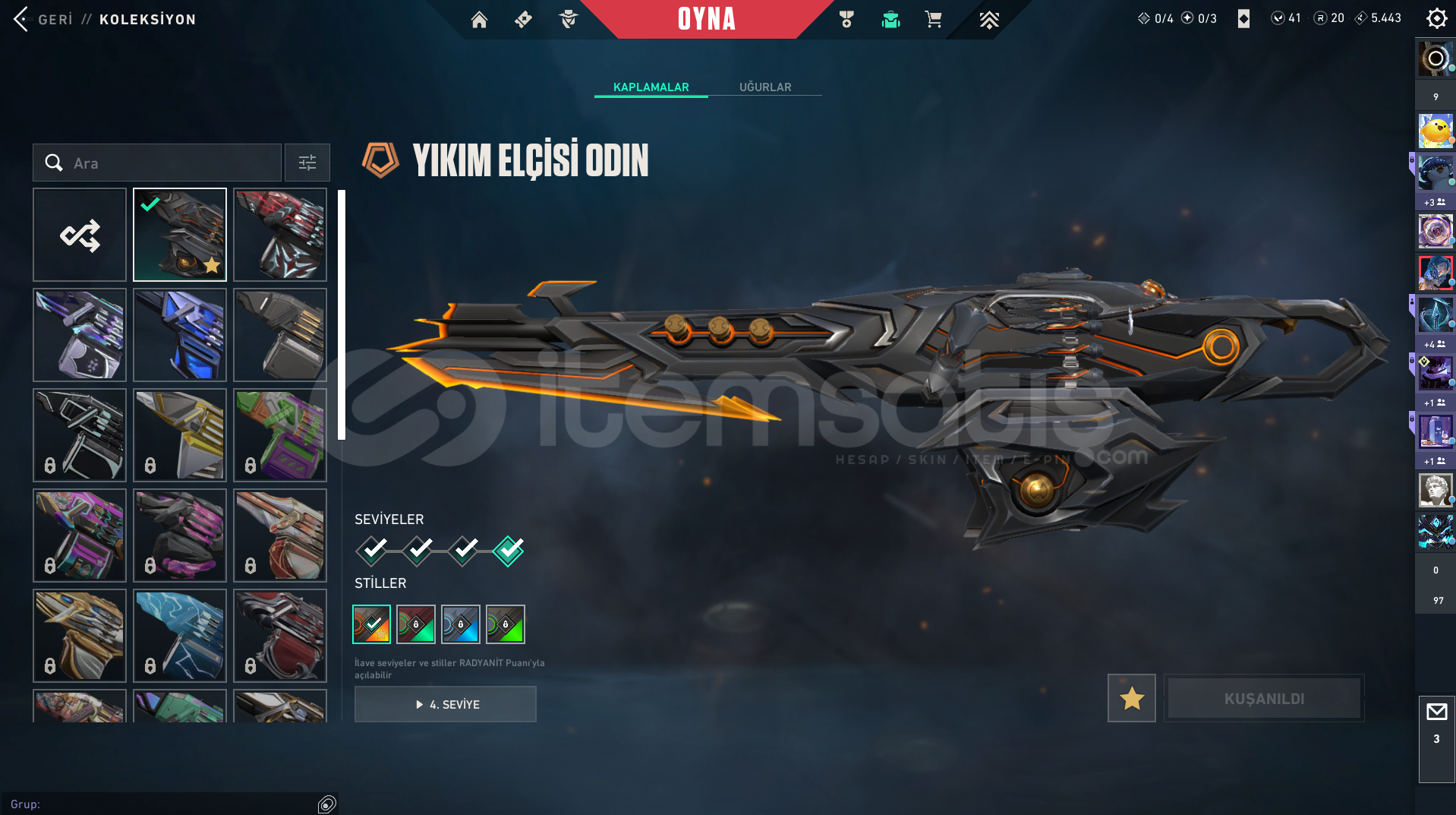 Detaylı skin listesi aşağıdadır: