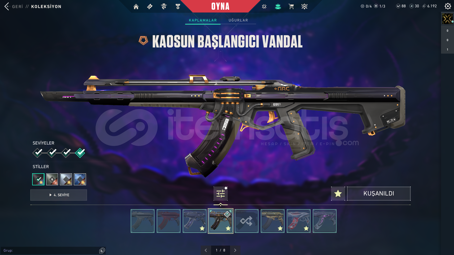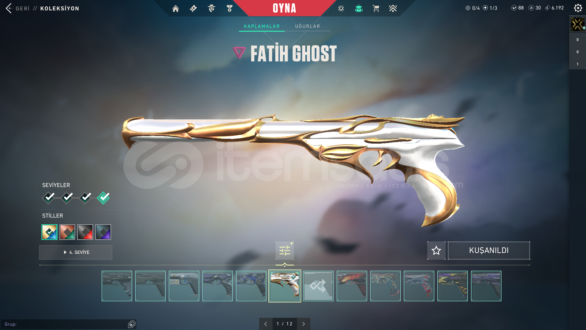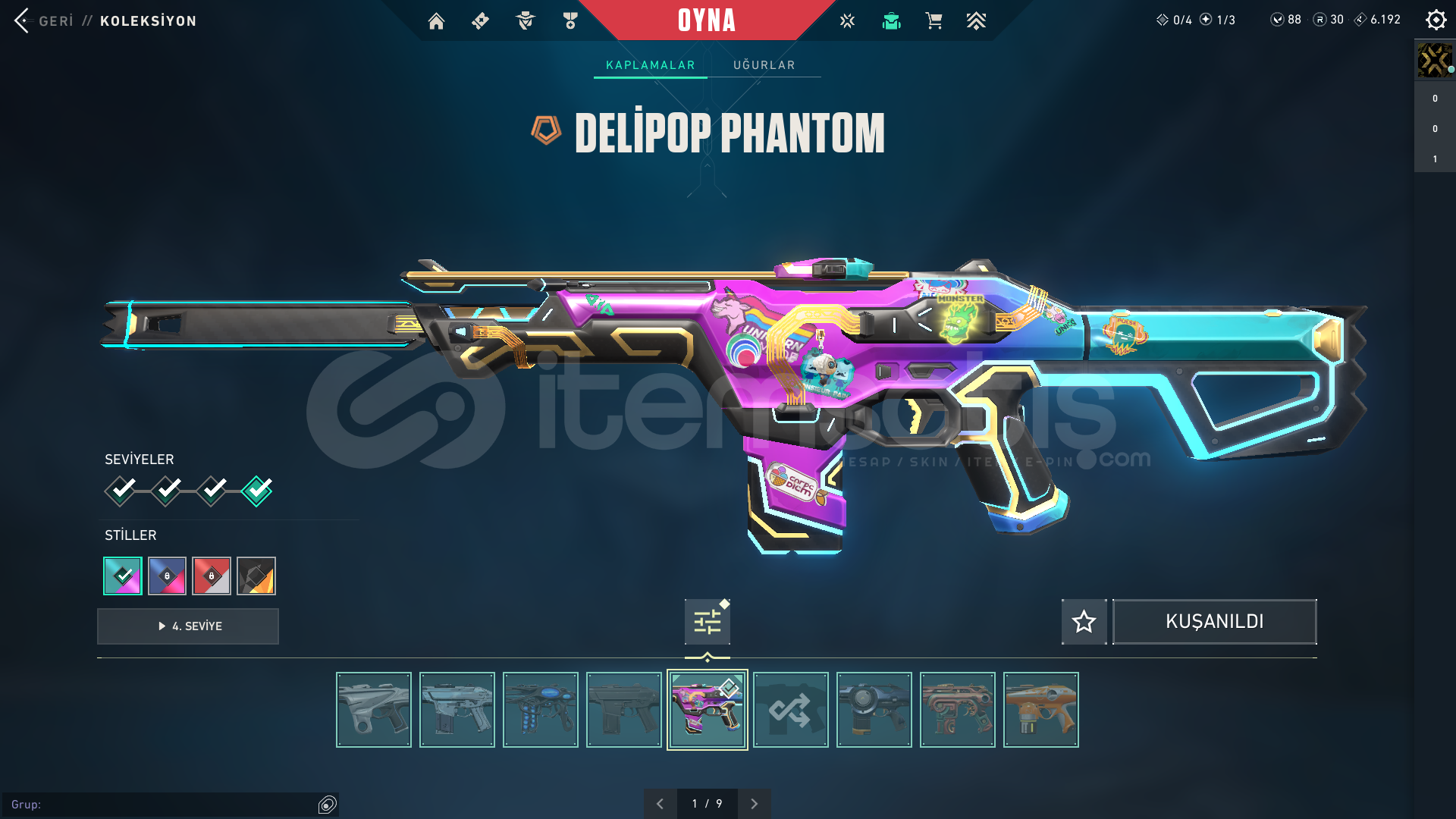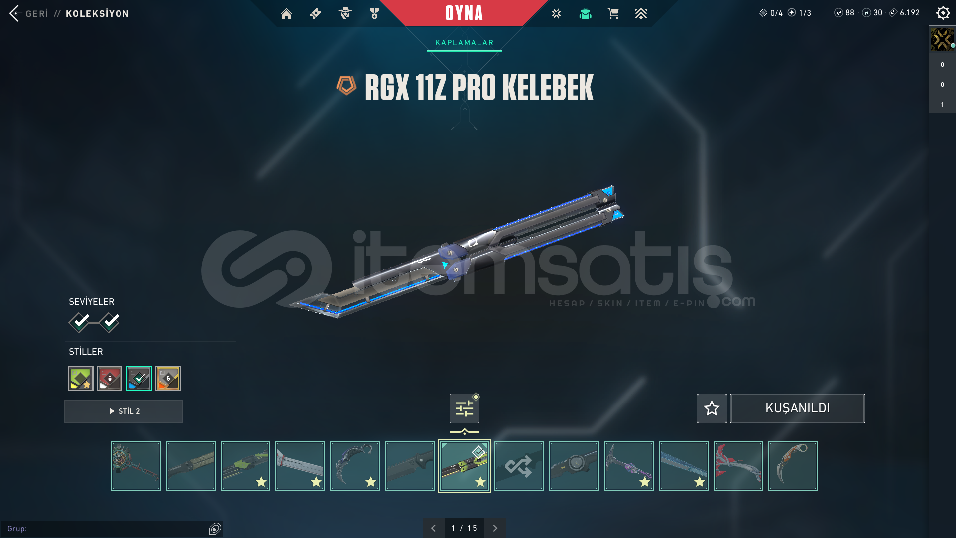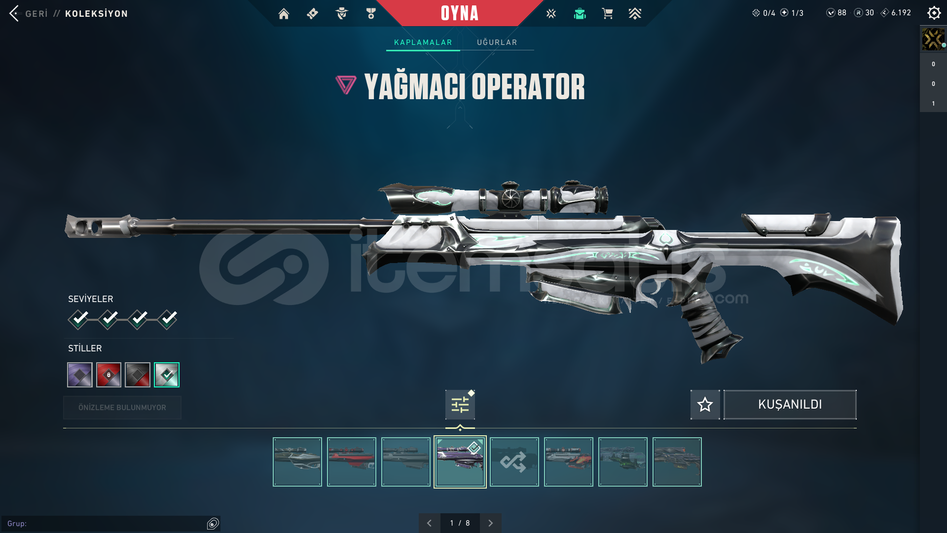 Classıc : Asil ClassıcFrenzy : Asil FrenzyGhost : Gaia - Yağmacı - Fatih GhostSheriff : Protocol SheriffSpectre : Asil SpectrePhantom : Delipop - İyon - Sarmal - Radyant Krizi PhantomVandal : Kaos - Gaia - Yağmacı VandalMarshal : Gaia MarshalOperator : Ejder - Yağmacı - Çarpaşık Alemler OperatorBıçak : RGX Kelebek - RGX Katana - Özel Harekat Kelebek - Yağmacı Karambit - Gaia Hiddeti - Kaosun kılıc&...