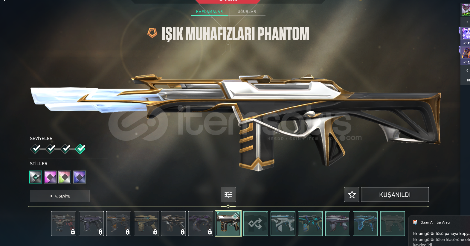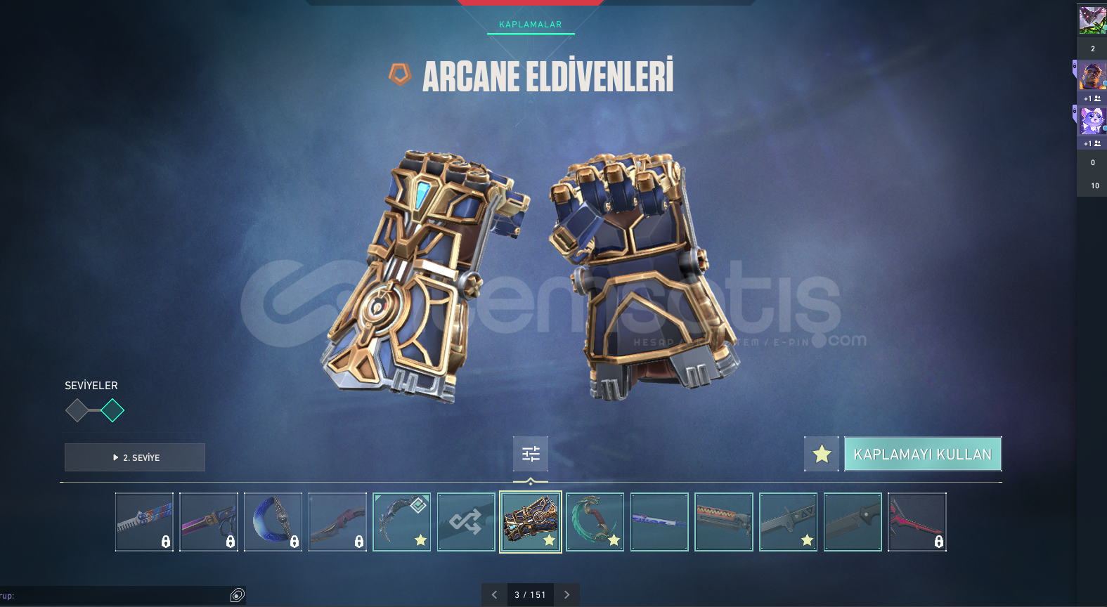 HESAPTA OLAN ÖNEMLİ SKİNLER OLANLAR: