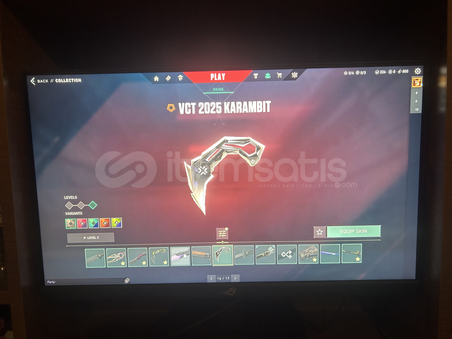 Öncelikle fiyatta pazarlık yapabiliriz detaylar için Hesap 157 seviye ve peak gold 1-2 görmüştürChampions 2024Champions 2025Arcane 2Vct x Lev 2024Vct karambit gibi premium setler bulunur11 adet bıçak 9 adet vandal 8 adet phantom bulunmaktadırhesapta skin olmayan 3 silah vardır bunlar:Stinger,Odin ve Outlawdır Hesapta olan bütün skinler fotoğraflardadırAlıcısına hayırlı olsun.İlgilene...