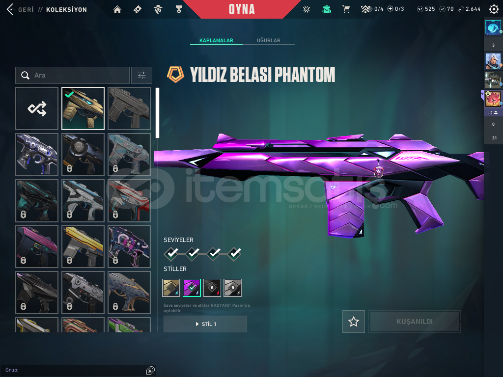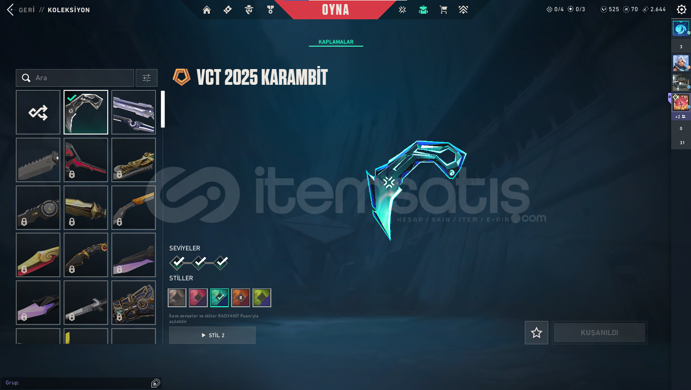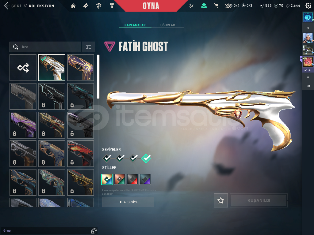ihitiyacım oldugu için satıyorumhesabın içinnde 1 adet ful bp gaia vandalyıldız belası phantomvct karambitfatih ghost güzel hesap