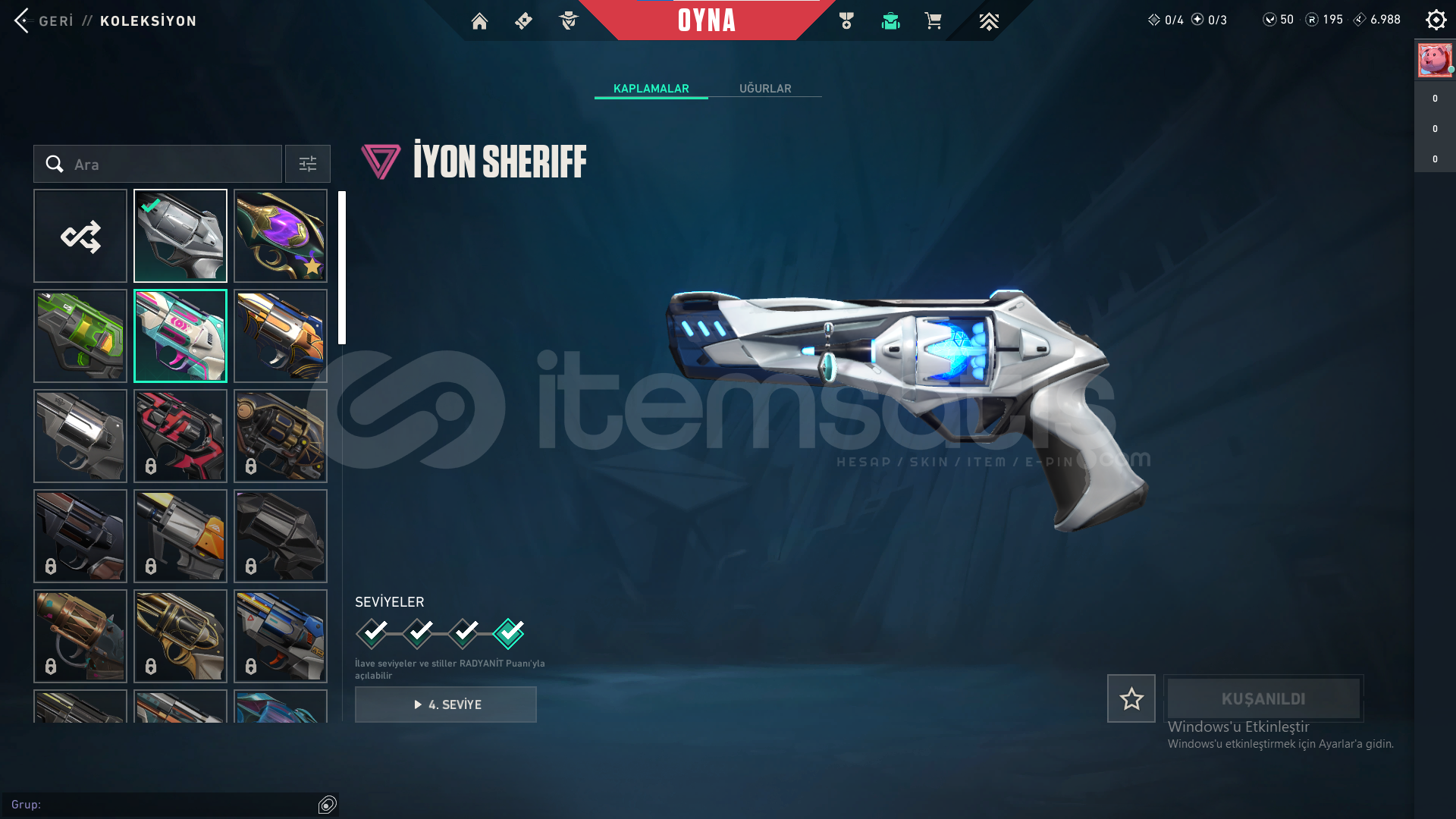 hesap gold2 dir , 248 level hesapta : cesur yürek setindeki her sikin(vandal,operatör,ares,bıçak,ghost) , felaketin kalbi vandal , iyon sherrif ve bucky , yağmacı spectra , delipop bulldog , seri tetik phantom ayrıca kuyruklıyıldız battle pass skinleri bulunmaktadır . E posta değişimi yapılacaktır . hesapta en yüksek plat 2 rankına çıkılmıştır . pazarlık yapıla...