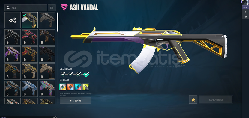ASİL VANDAL+GAİA PHANTOM+ANOMALİ KELEBEK BIÇAK+ KÖKEN VANDAL+ YAGMACI SHERİFF VE 500 VP VARDIR MUKEMMEL HESAP 3 AY FALAN ONCE AÇILMIŞTIR YENİ MAİNLEMELİK HESAPTIR RANKI SİLVERDİR SEVİYESİ 36DIR BU FİYATA BULUNMAZ PAZARLIK OLUR