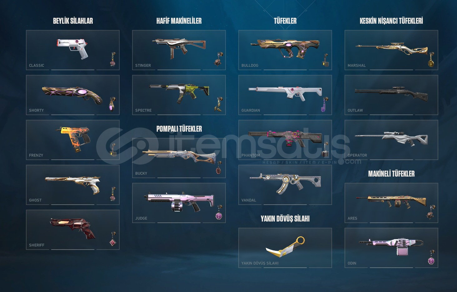 bu skinler haricinde bütün silahlarda battlepass dan gelen silahlarda vardır detaylı olarak sohbetten iletebilirim fotoğrafları.