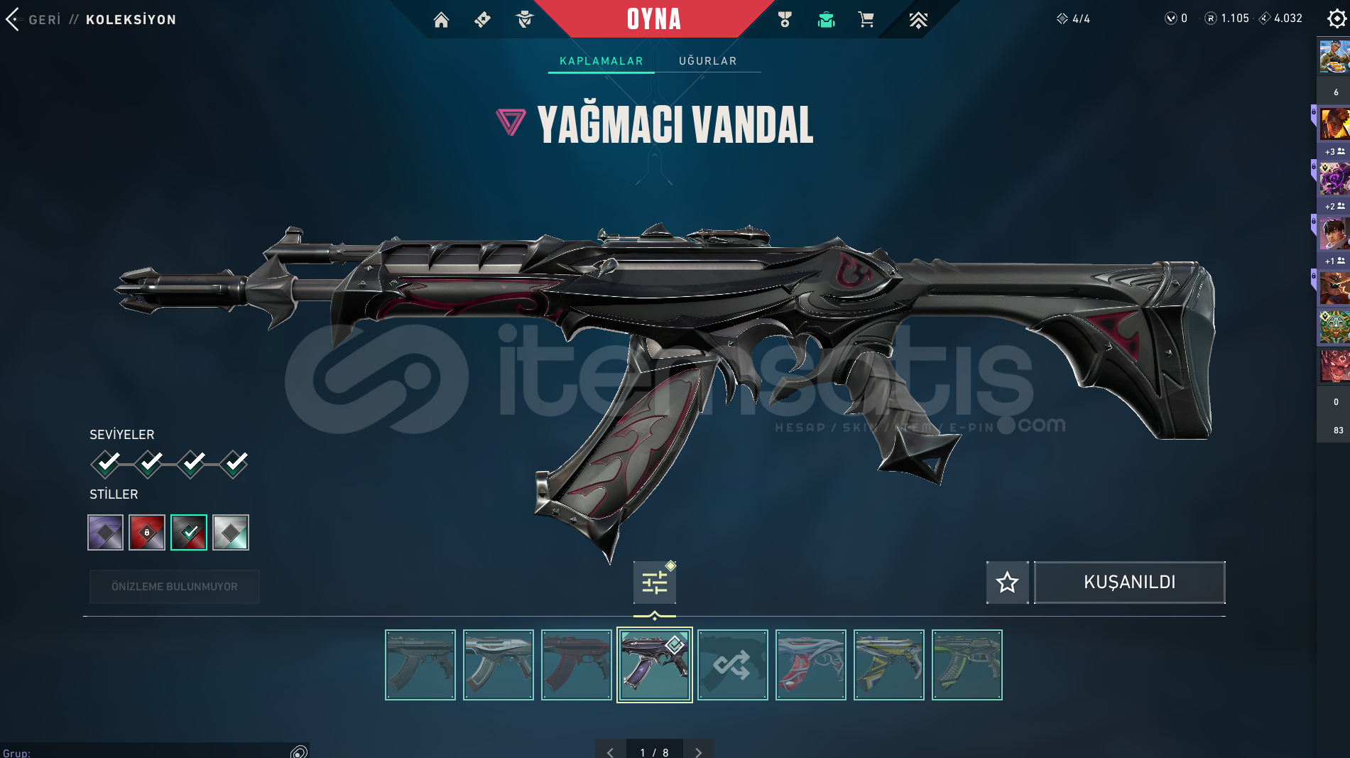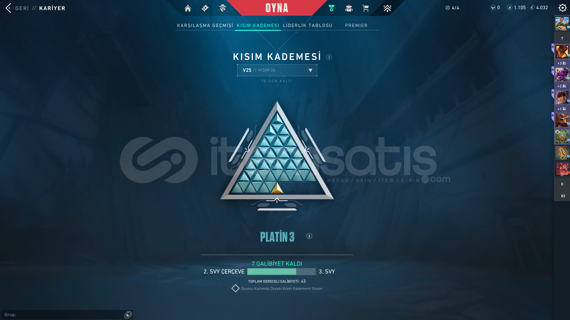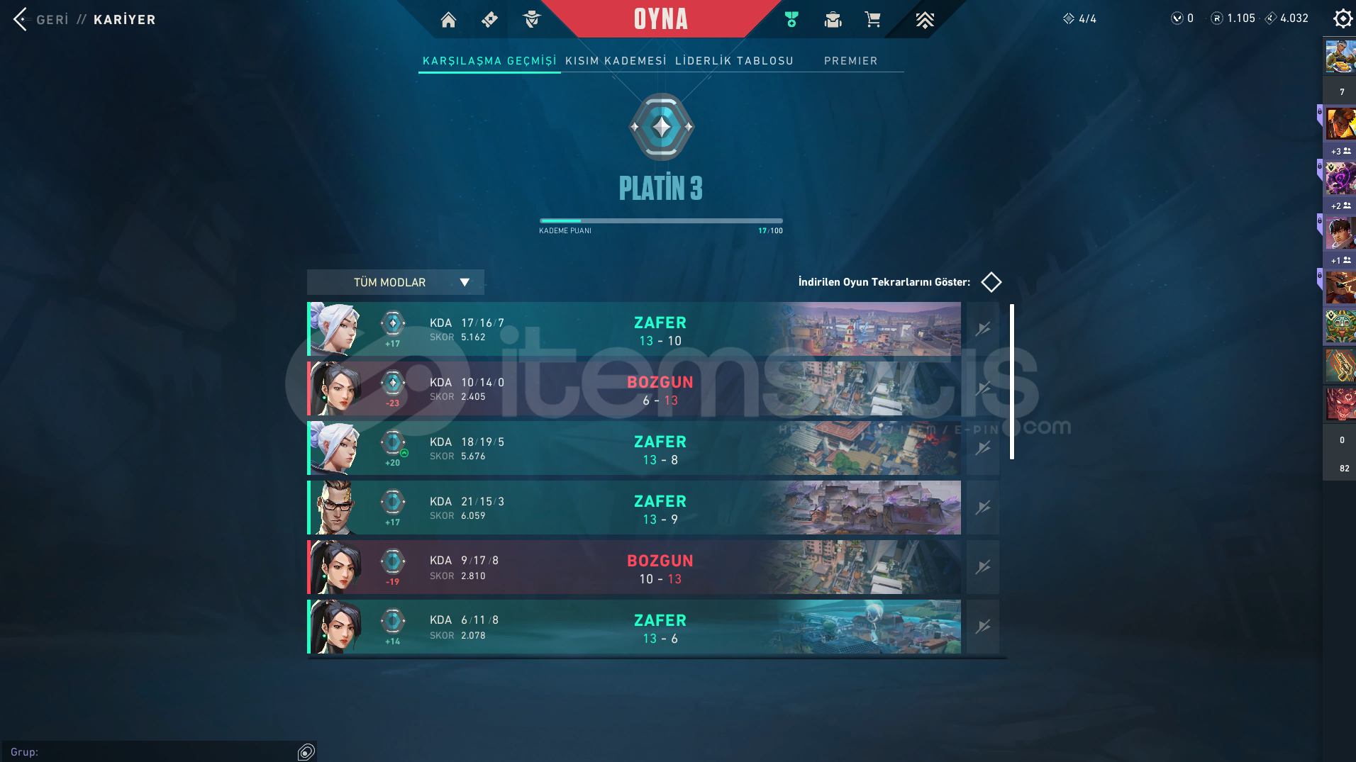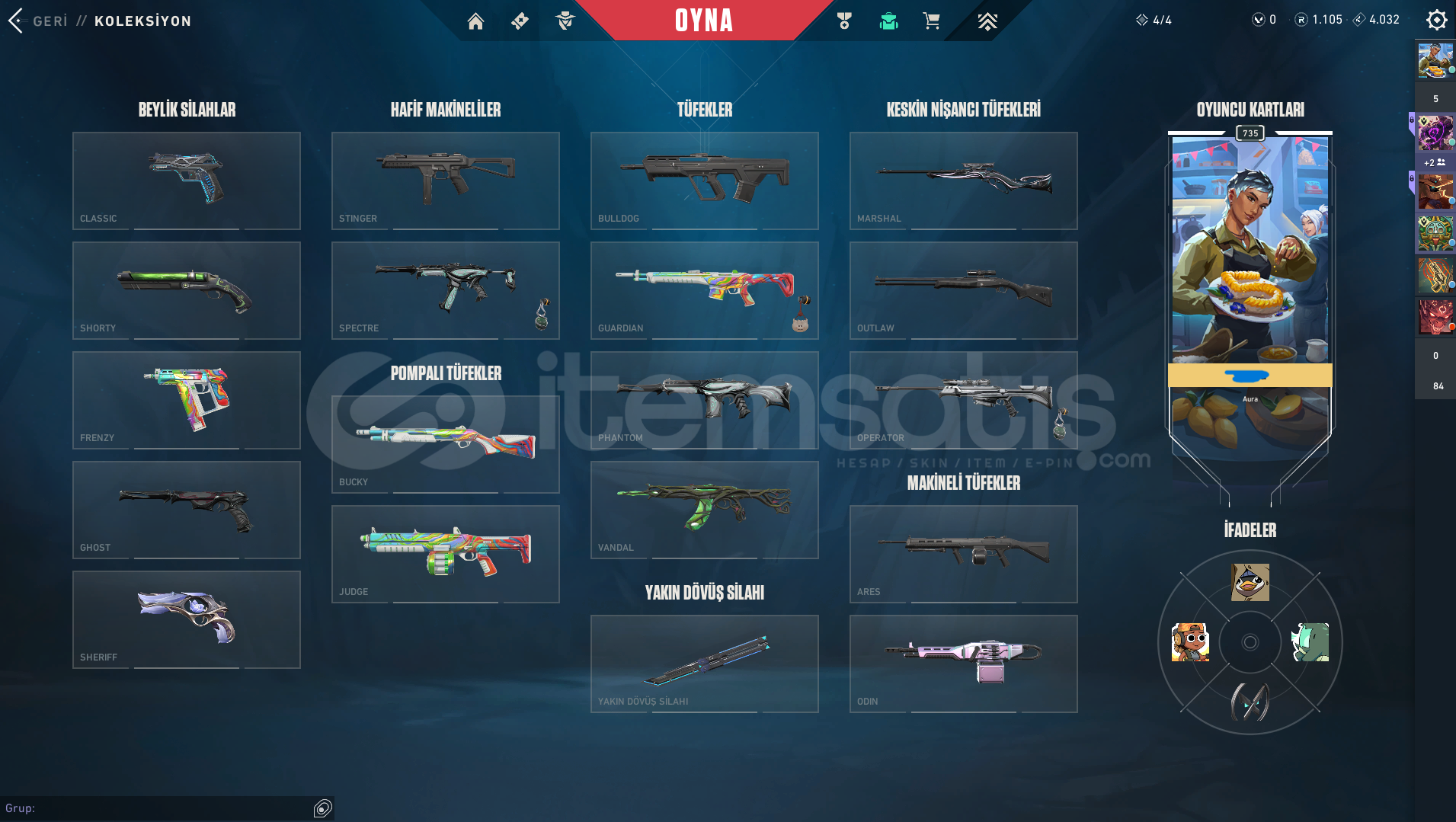 E-postayı yeni ekledim size devrederim veya değişimini yaparız.Satış sonrası yardımcı olurum. hesap şahsıma aittir.✅ Sunucu: İstanbul / Avrupa✅ Peak Rank: Immortal 1✅ Şu Anki Rank: Platinum 3✅ Hesap Level: 732✅ Kullanım Süresi: ~4 yılSayısız battlepass ürünü, Toplam 23 Ajan, 98 Kaplama, 438 Uğur, 217 Sprey, 277 Kart, 169 Unvan var.SkinlerYağmacı Va...