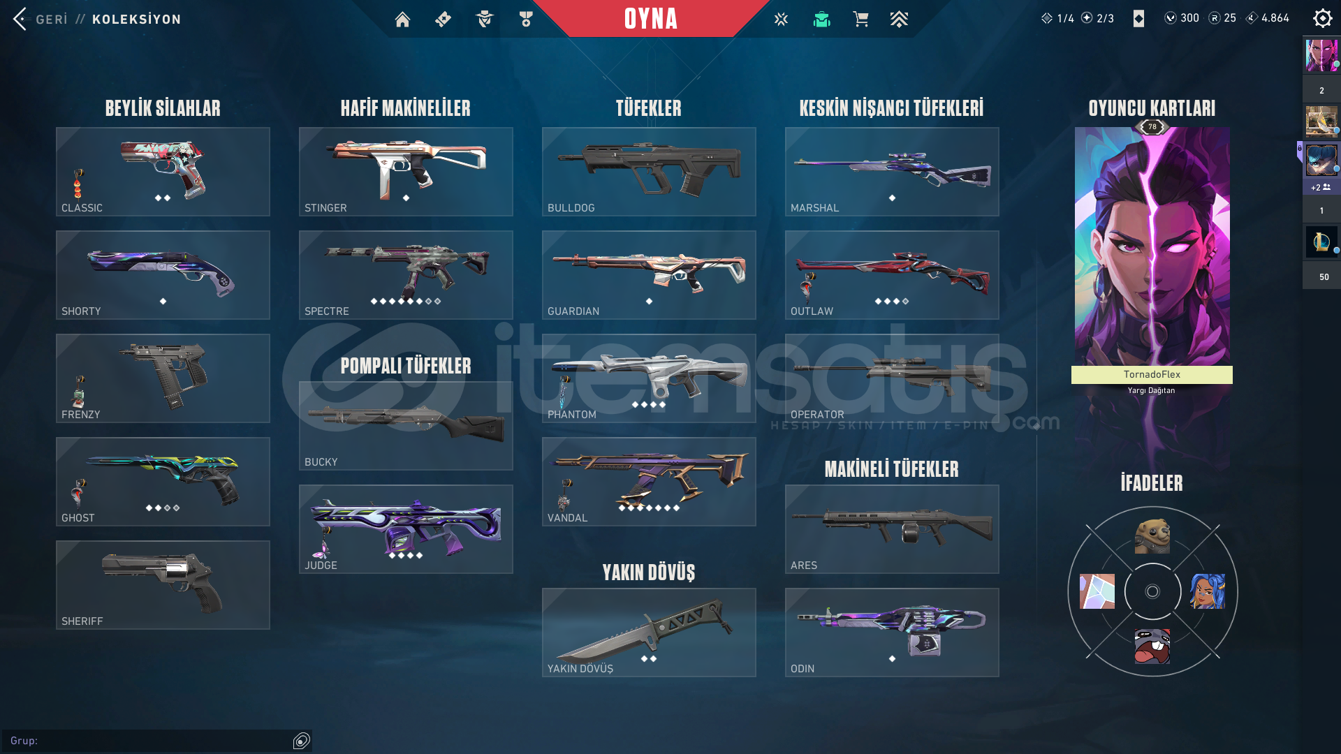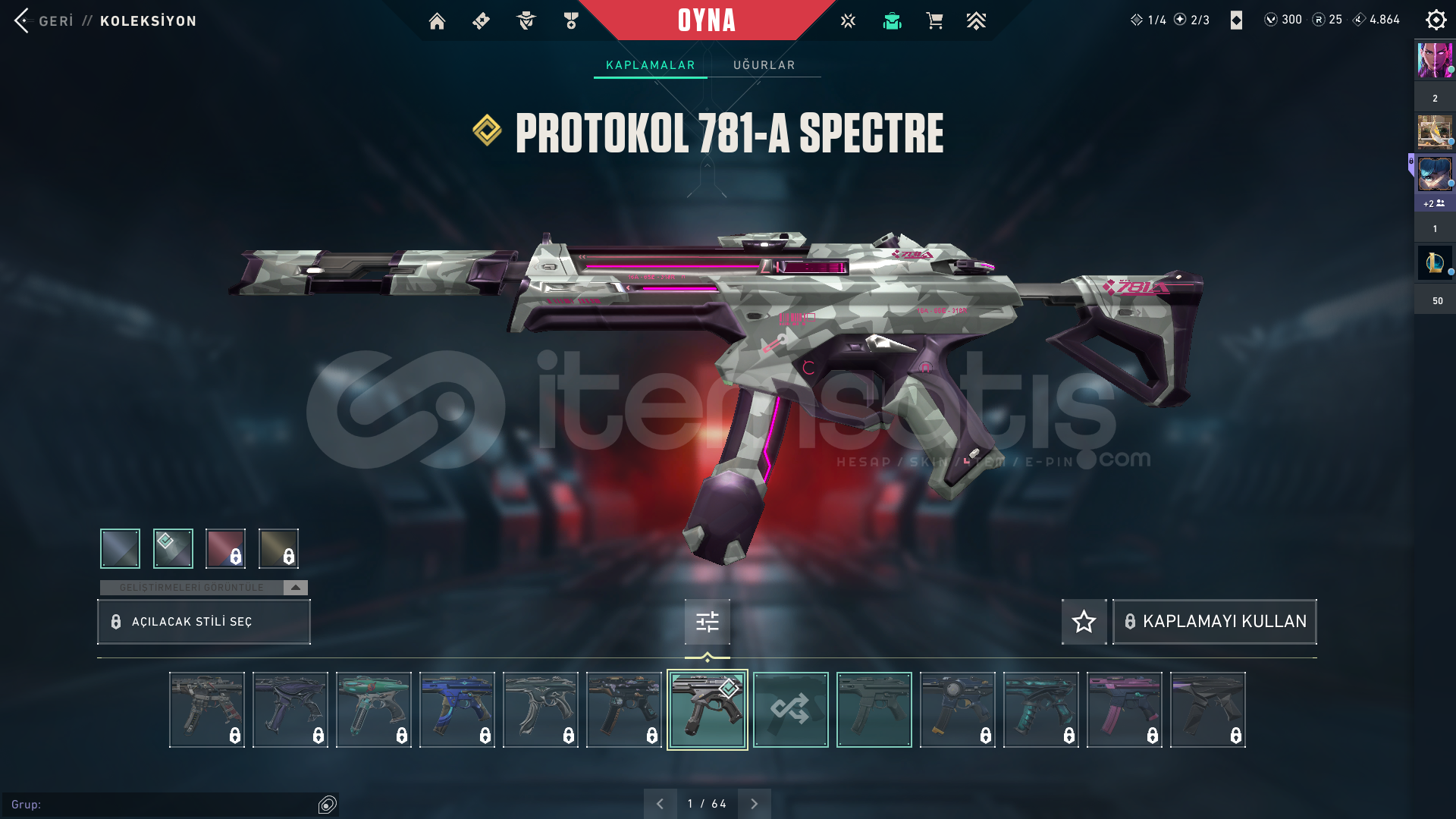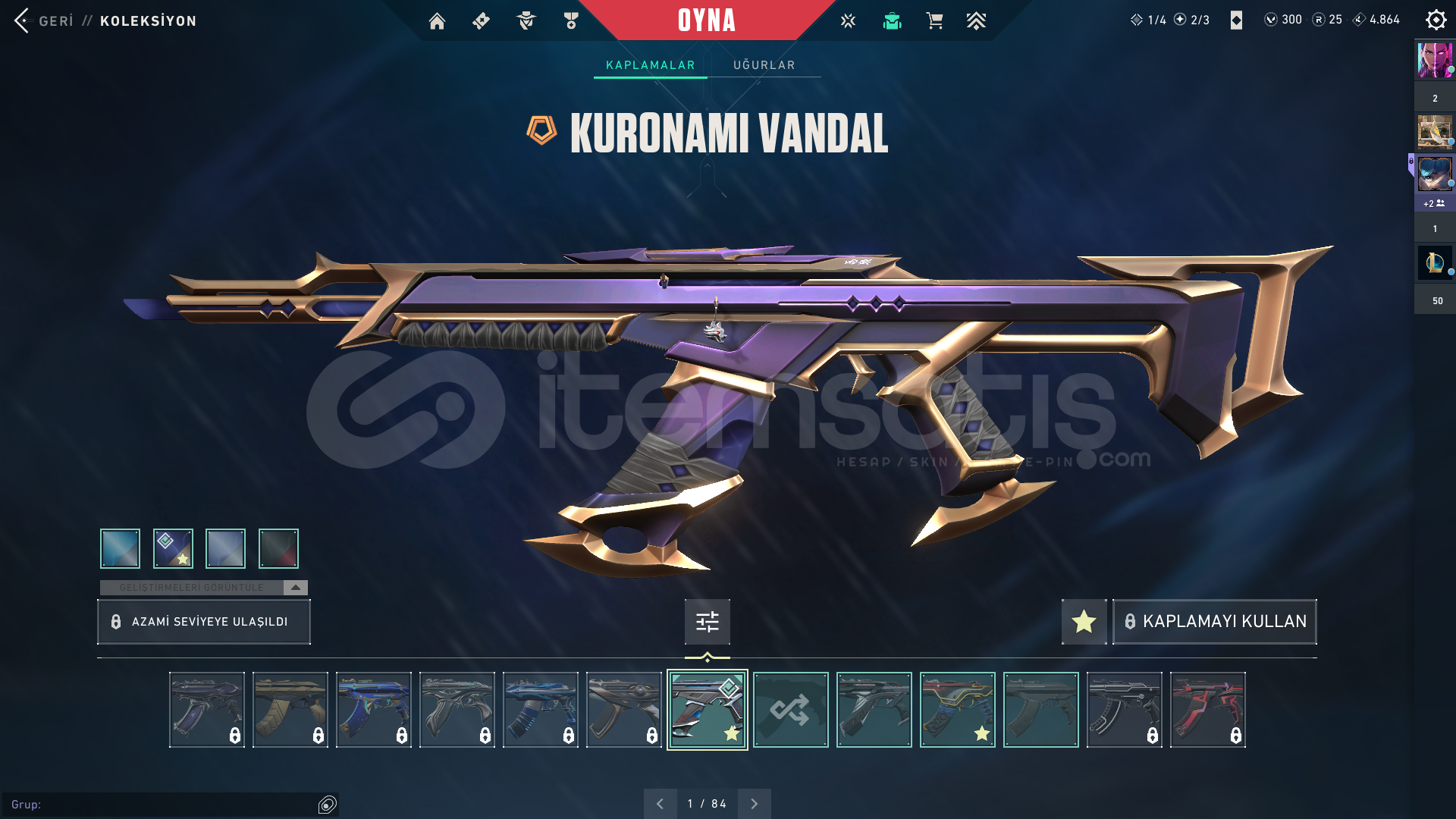 Hesap mail değişimlidir.Çevirimiçi olduğumda teslimatı yaparım.Hesaptakiler:Kuronami VandalOni vandalİyon phantomprotokol spectreUzaylı avcısı bıçakEcelin ıssırığı bitirilmiş BattlePassHesap 78 seviye