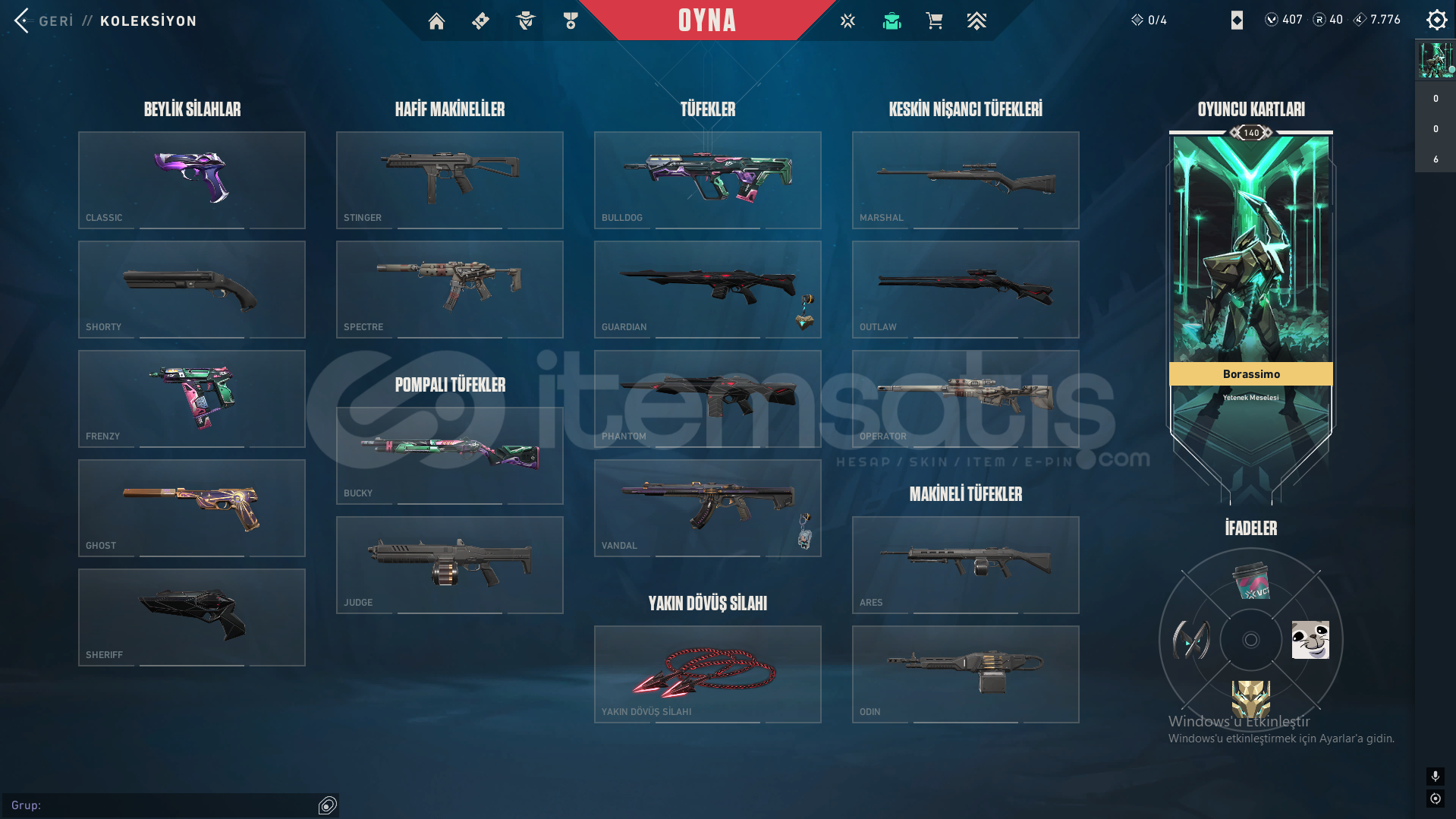 Rank: Gold 2Vandal Skinleri:🕊️ Asil Vandal⚡ Sihirpunk Vandal☣️ Kaos Vandal🌌 Yıldız Belası (Araxys) Seti🎟️ 1 Battle Pass (tamamlanmış)💼 e-posta değişimi olucak. 🔐 Hesap güvenli, şifresiyle teslim edilecek.