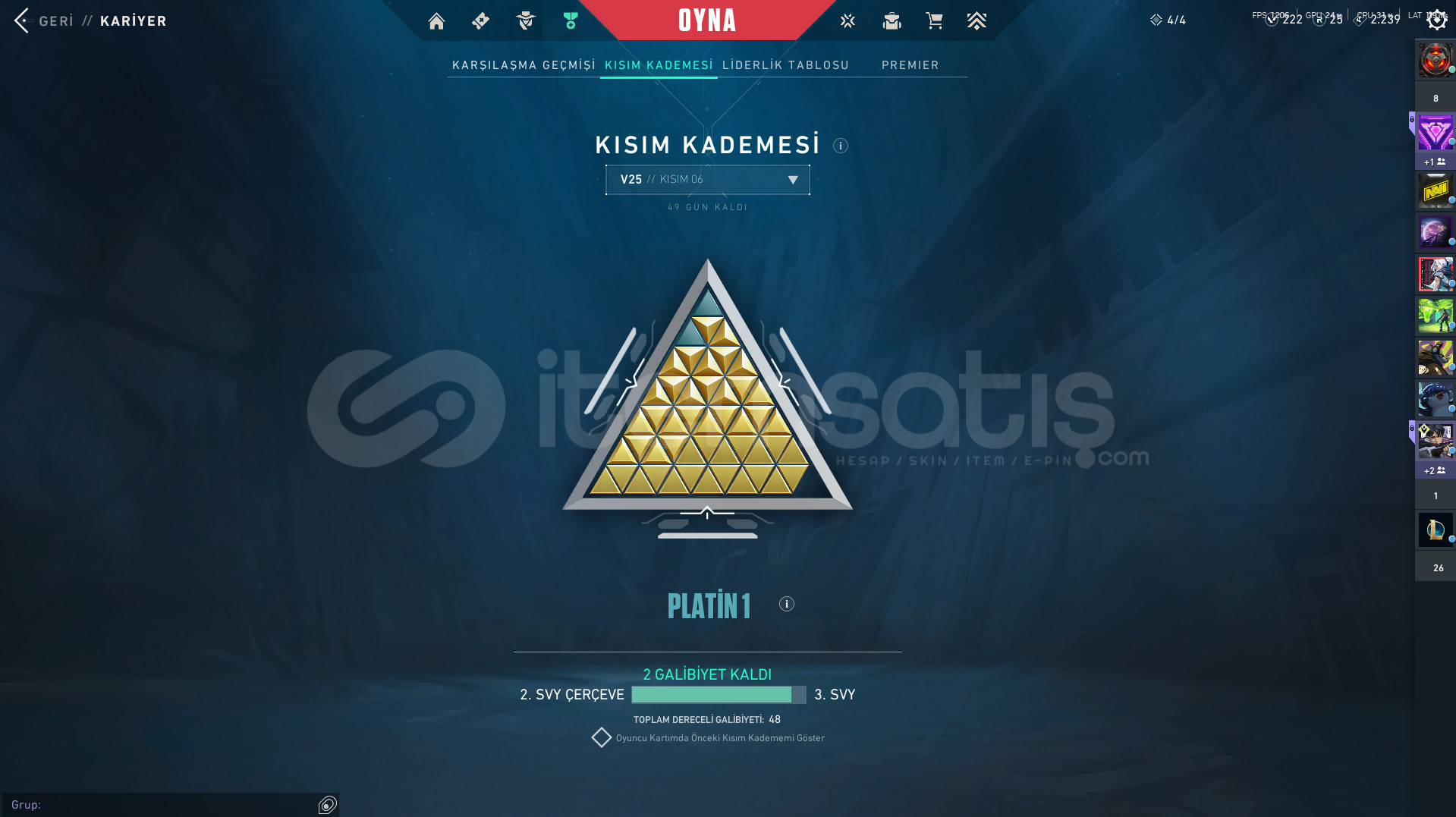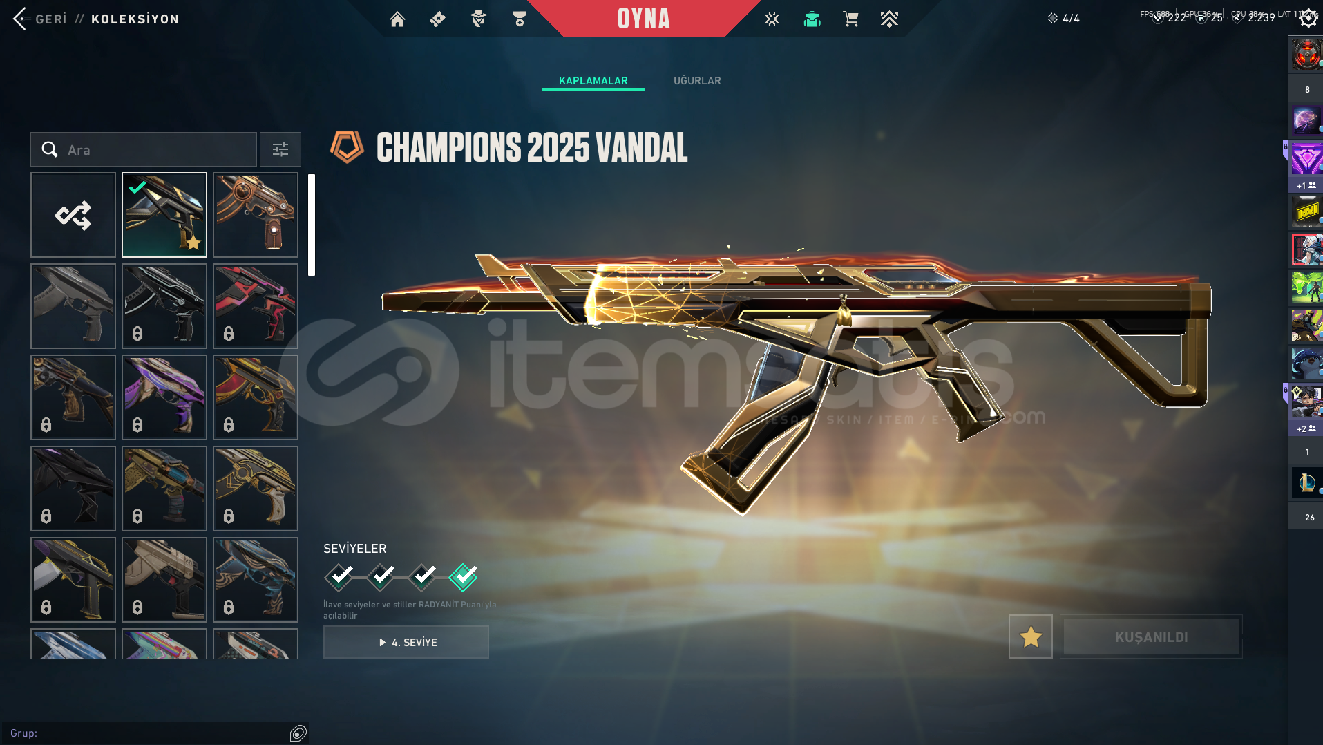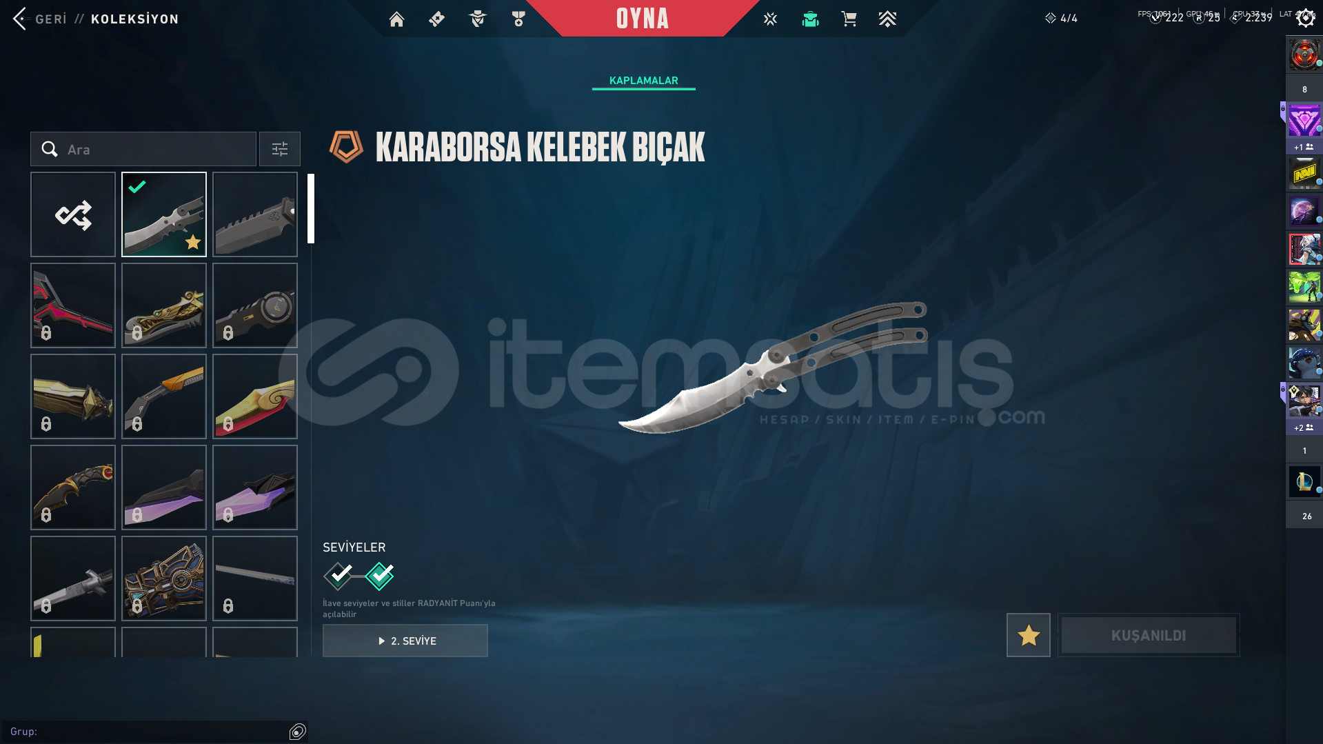 Merhaba, Valorant hesabımı oynamayı bırakacağım için satıyorum. Hesapta: Champions 2025 Vandal Sihirpunk Vandal Karaborsa Kelebek Kaos PhantomFatih Guardian Yağmacı Odin 2 tane BP Classic 1 tane Cloveun Ghostu bulunmaktadır. Hesap Platindir.PAZARLIK YAPILIR.