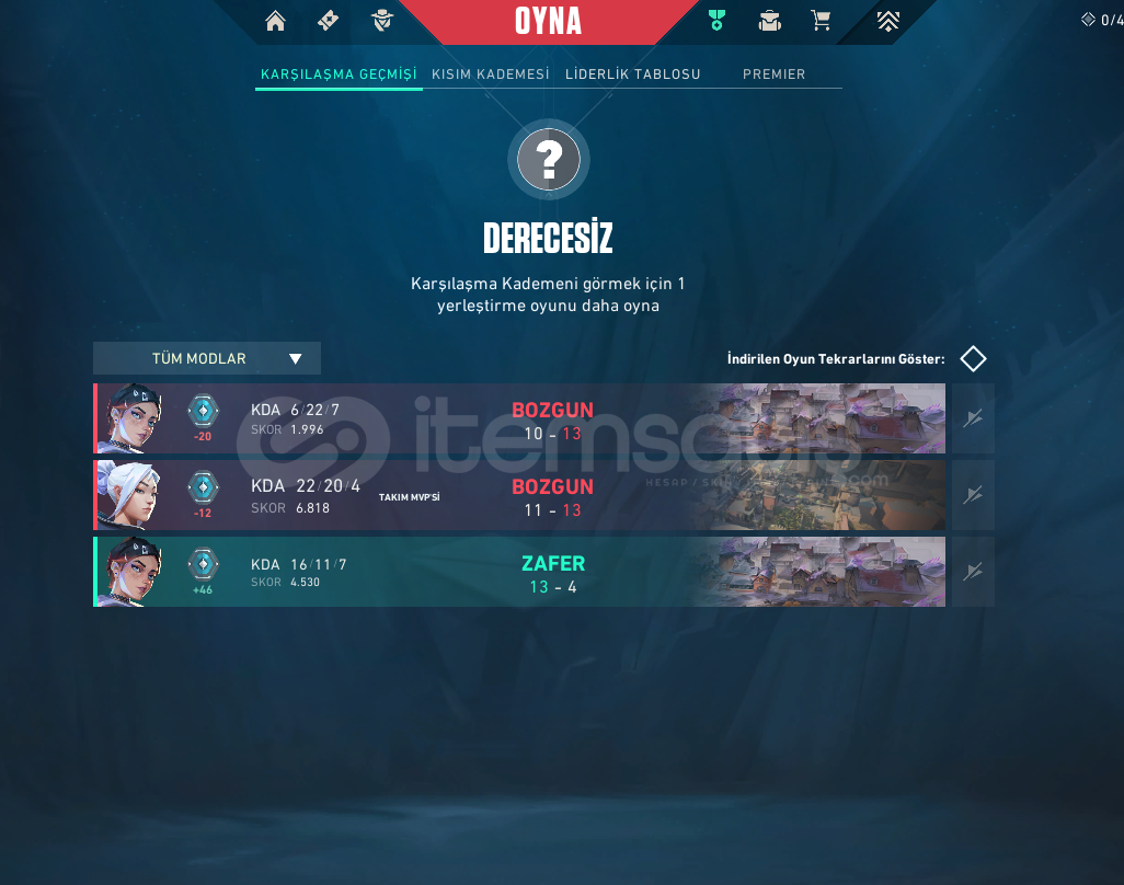• En son platin 3 olup, 1 maç sonra rankı açılır.