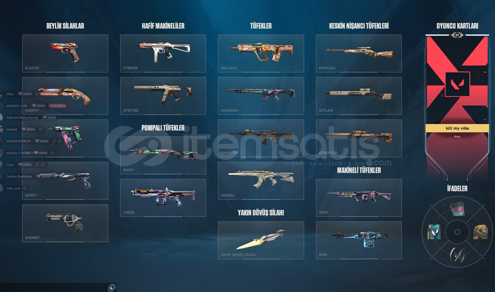 hesapta anomali set vardır kelebekli olantoplam 5 vandal 1 phantom vardır fotografta gordugunuz gibi bissurude savaş bileti vardır BİLGİ İÇİN SOHBETTEN YAZINIZ ANLASILIRİLK MAİLİ YOK!!