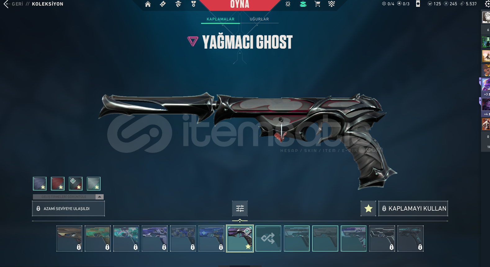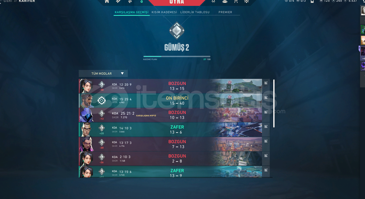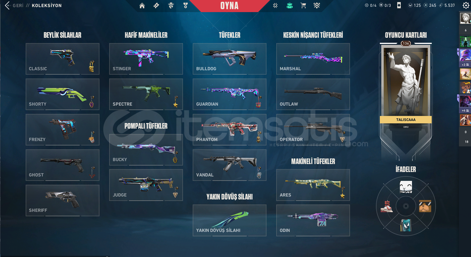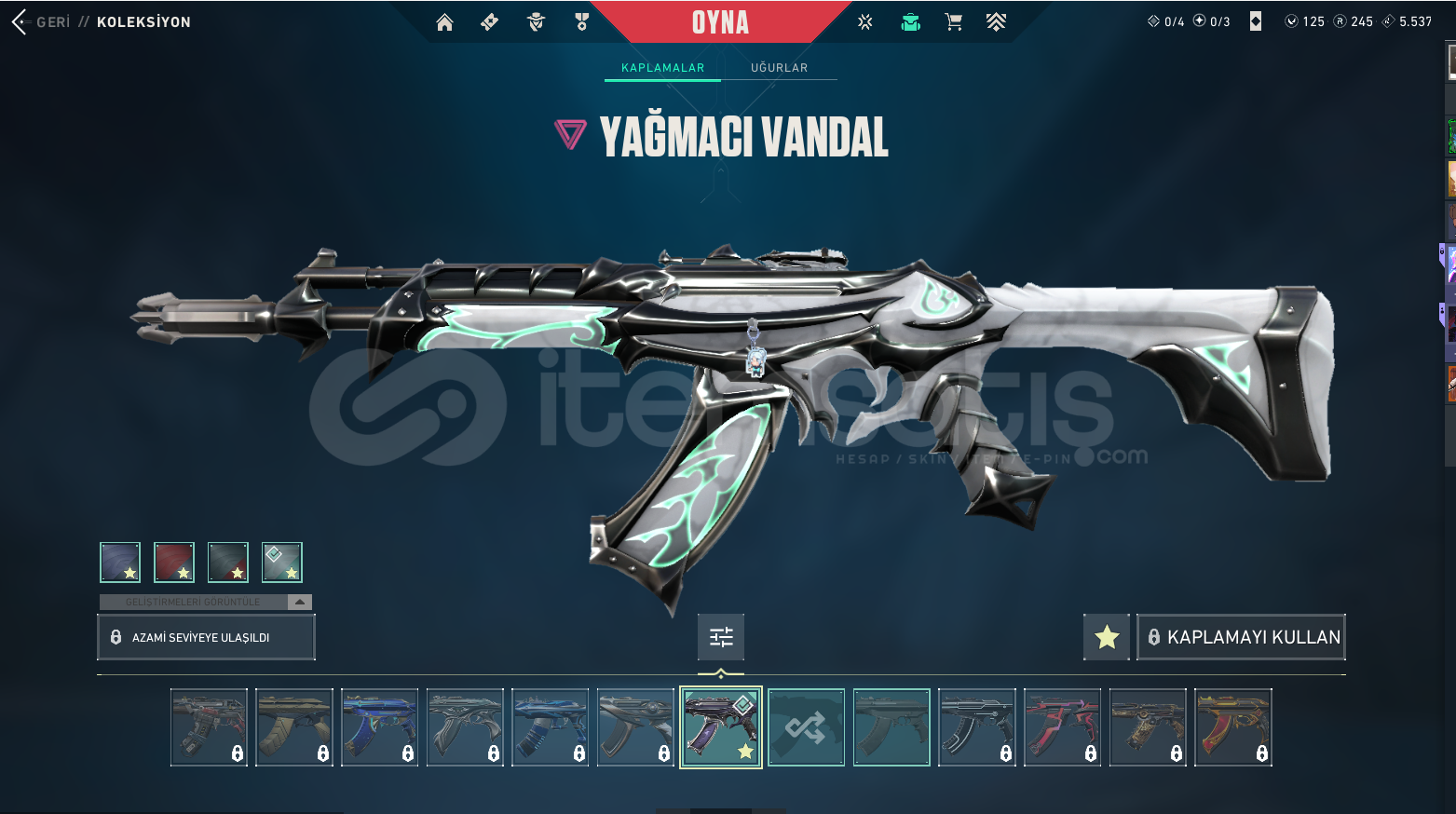 Hesabın İçindekilerVandalYağmacı VandalPhantomDelipop PhantomSpectreAsil SpectreSheriffProtokol SheriffGhostYağmacı GhostHesapta 1 Tane BattlePass Alınmıştır125 VP Vardır