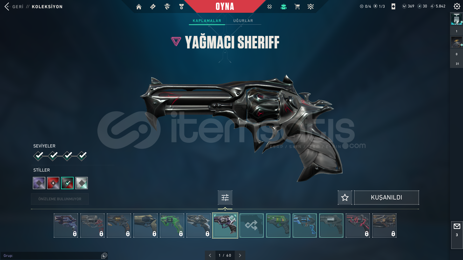 CLASSİC -- VCT25 FUTGHOST-- GAİASHERIFF--YAĞMACIMARSHAL--SİHİRPUNKOPERATÖR--RGXVANDAL--YAĞMACI, KURONOMİ, ULUPENÇE, EJDERİN BUYRUĞU, ONİ, IŞIK MUHAFIZLARIPHANTOM--ZİFİRİBIÇAK--ANOMALİ KELEBEK,ASİL KARAMBİT5-6 TANE BATTLEPASS VARDIR FİYATA DAHİL DEĞİLDİR.TÜM AJANLAR AÇIKTIR.DİA 3 GÖRMÜŞ HESAPTIRMMR YÜKSEKTİR.